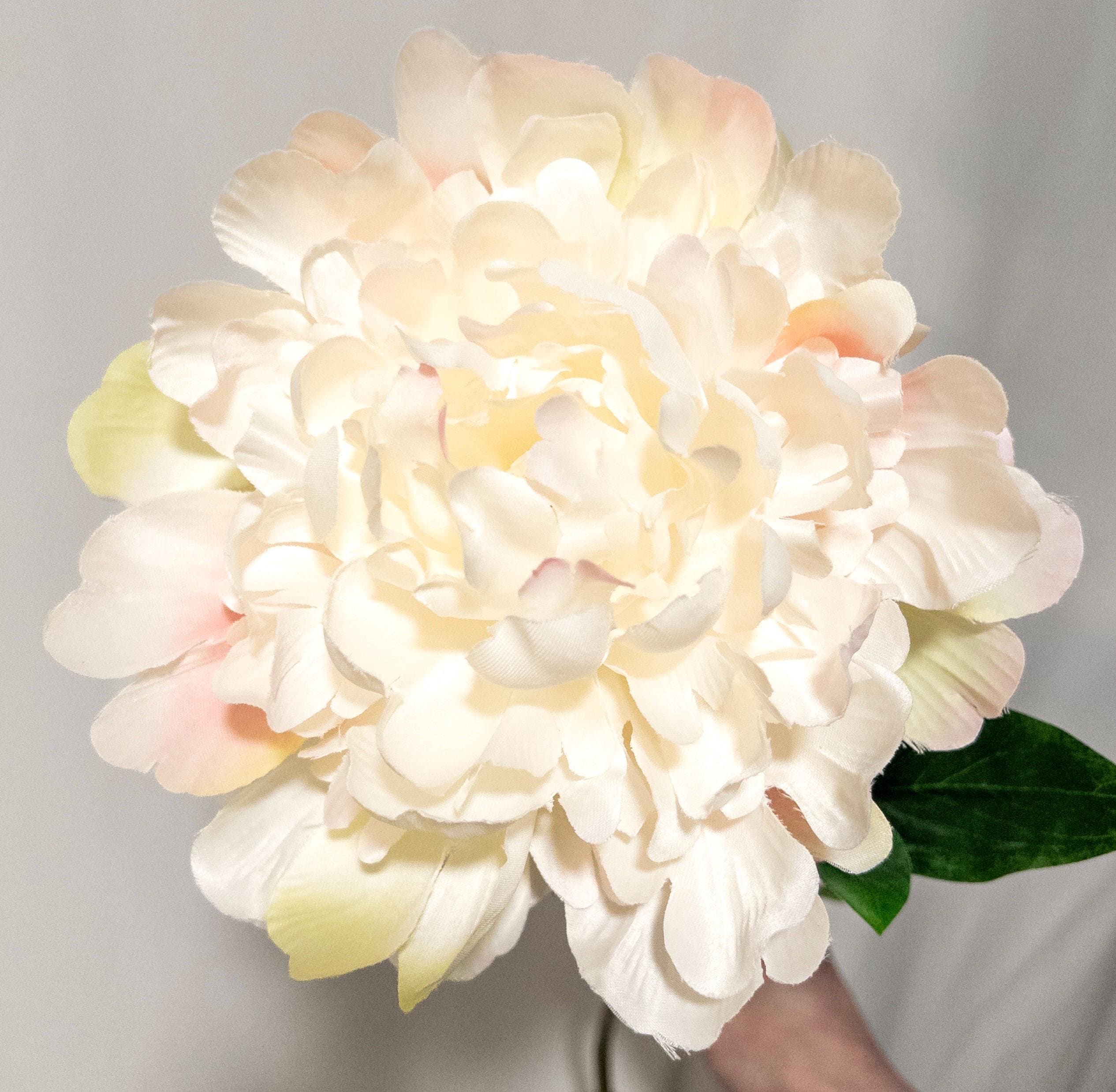 Details: ❀࿐ Total length: approx. 29.5 inches ❀࿐ Bloom diameter: approx. 7 inches ❀࿐ Color: Creamy white with hints of pink and pale yellow/green ❀࿐ Material: High-quality faux fabric ❀࿐ Bendable stem for custom shaping ❀࿐ Sold individually, vase not included.
