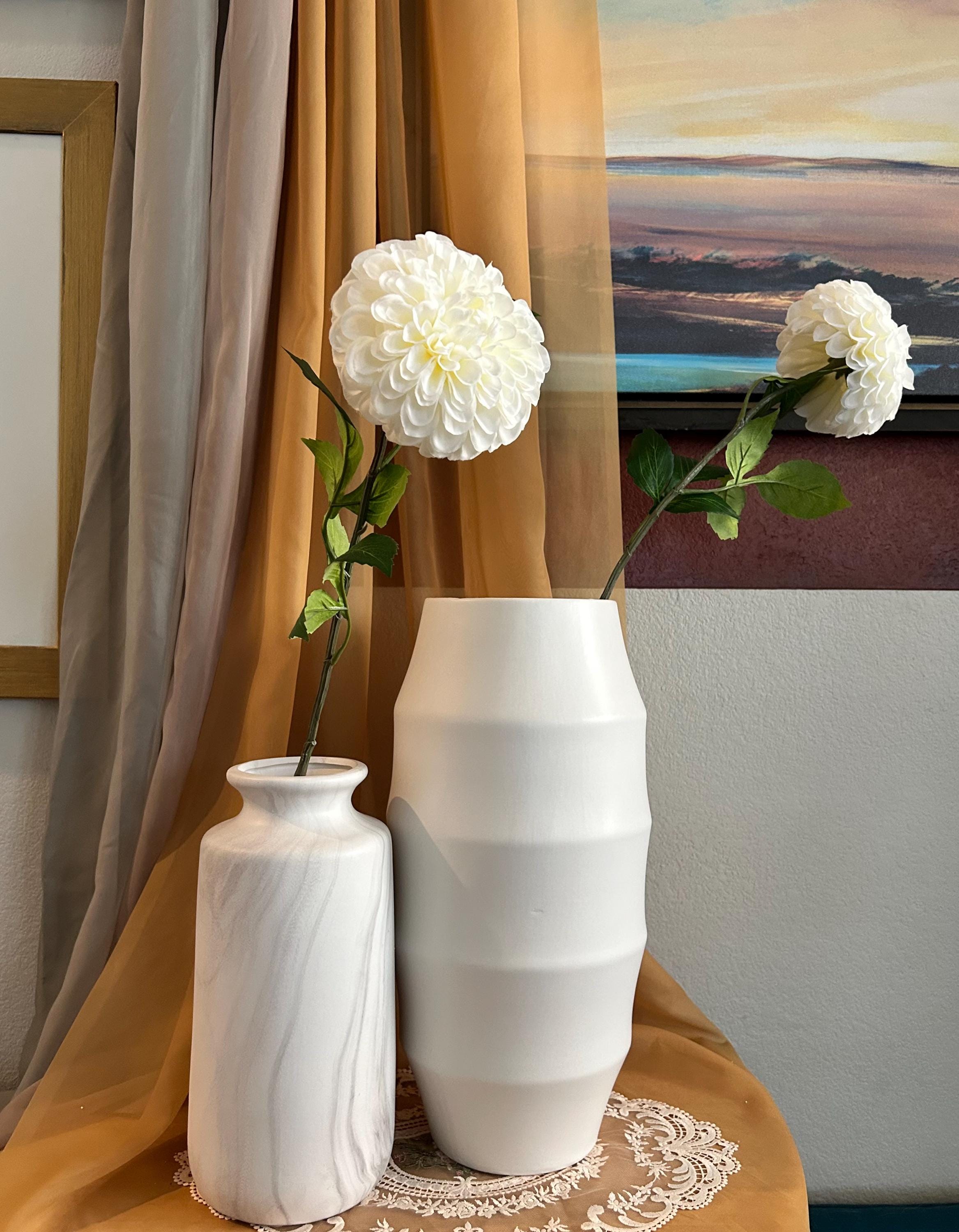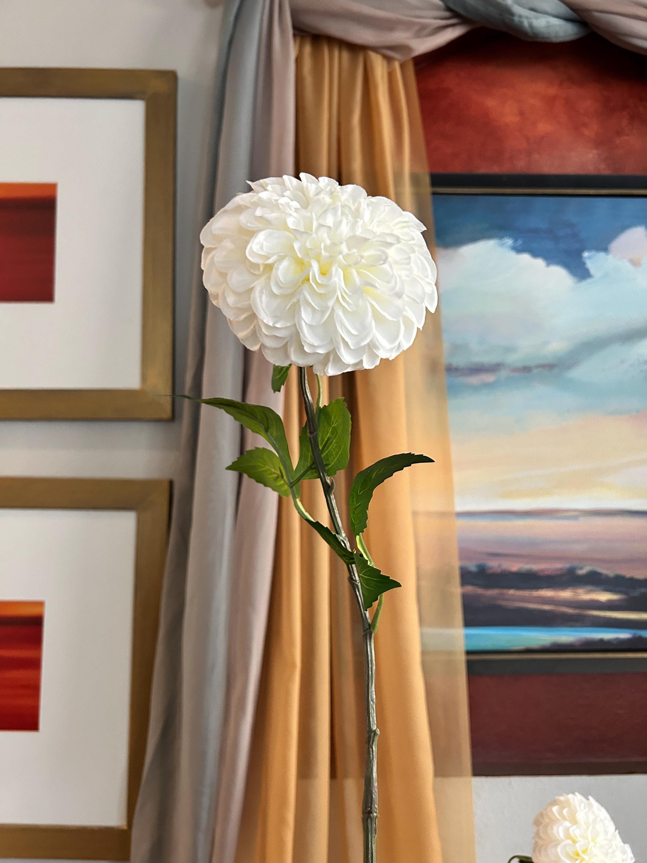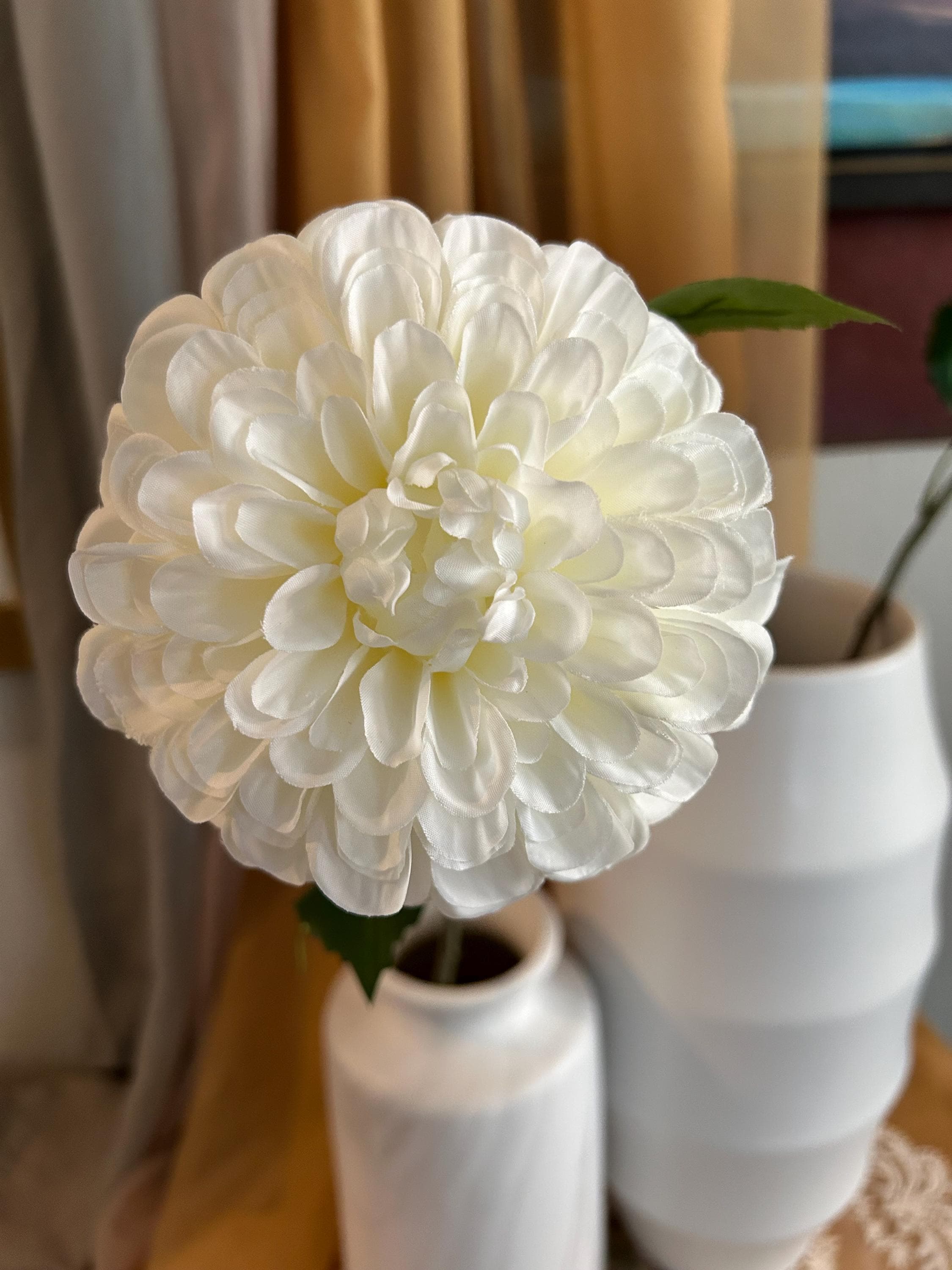 These elegant artificial dahlias are ideal for wedding bouquets, modern centerpieces, or seasonal home décor. The soft cream tone blends seamlessly with a wide range of palettes, offering volume and sophistication to any floral design.