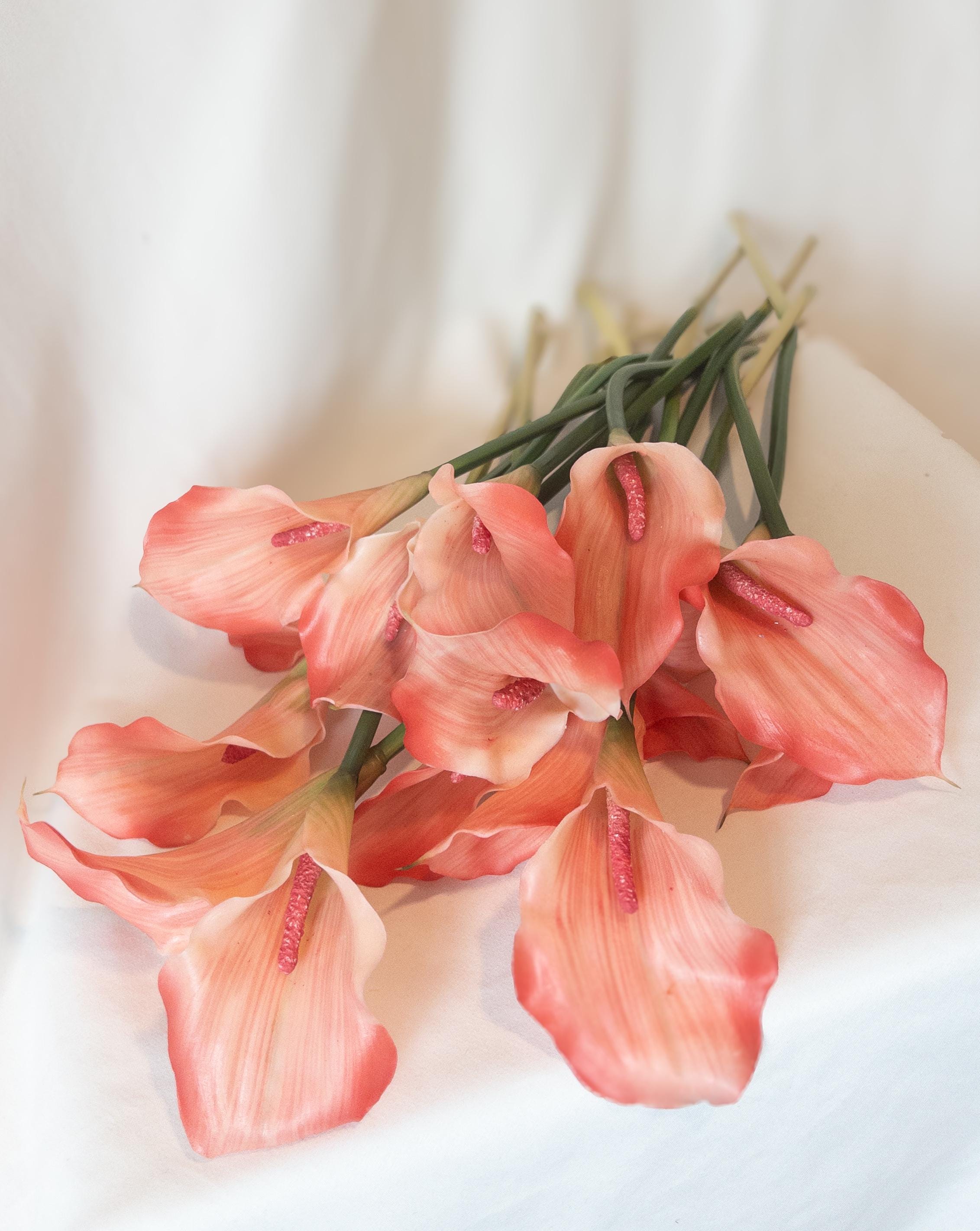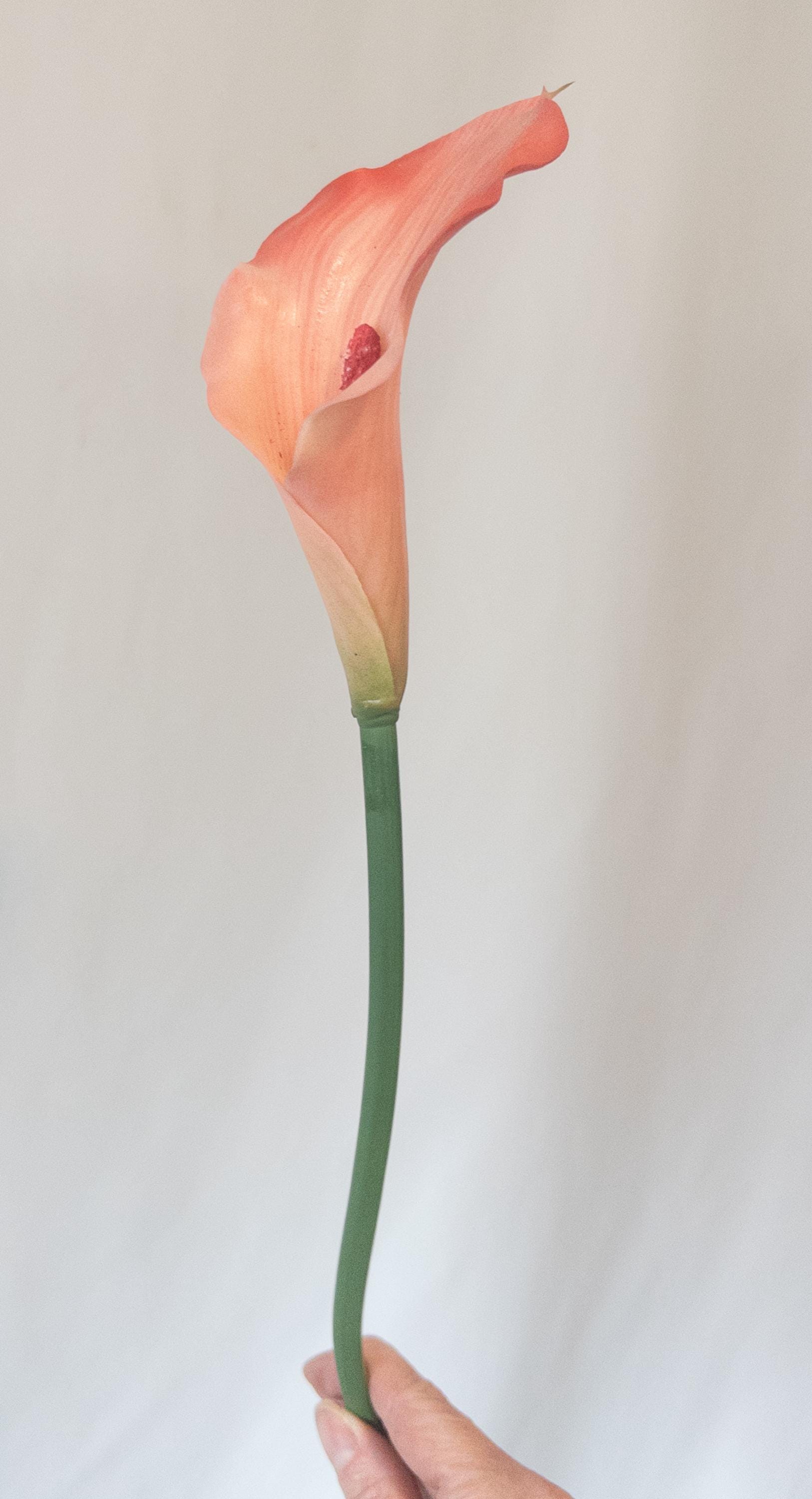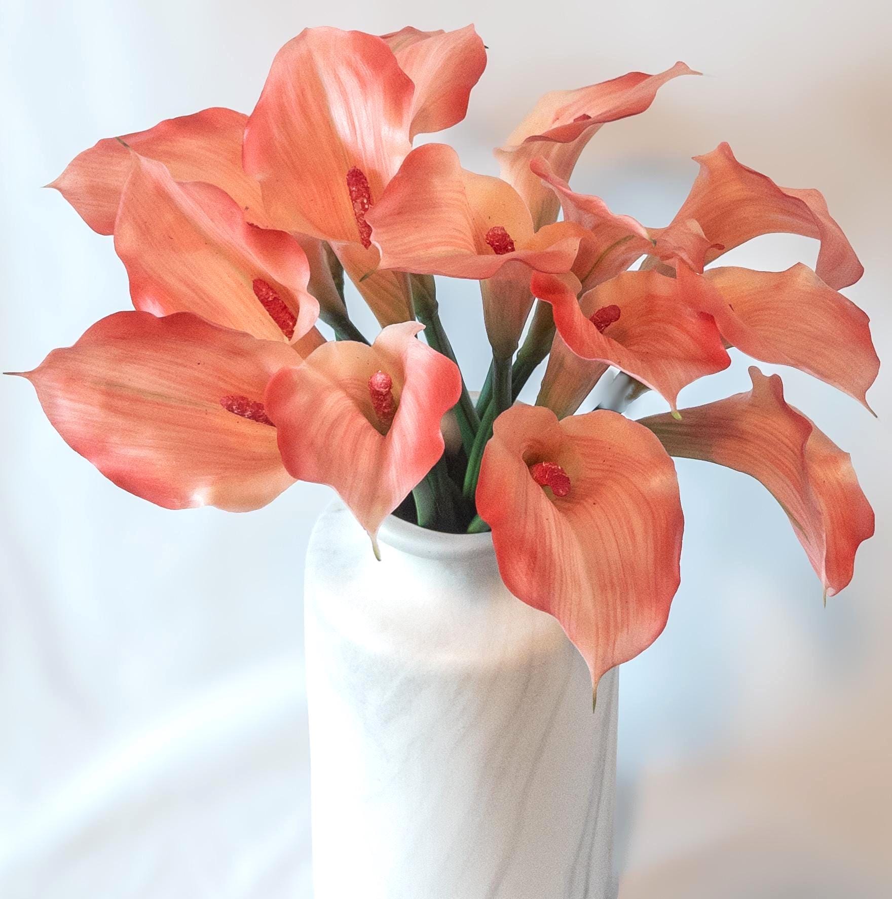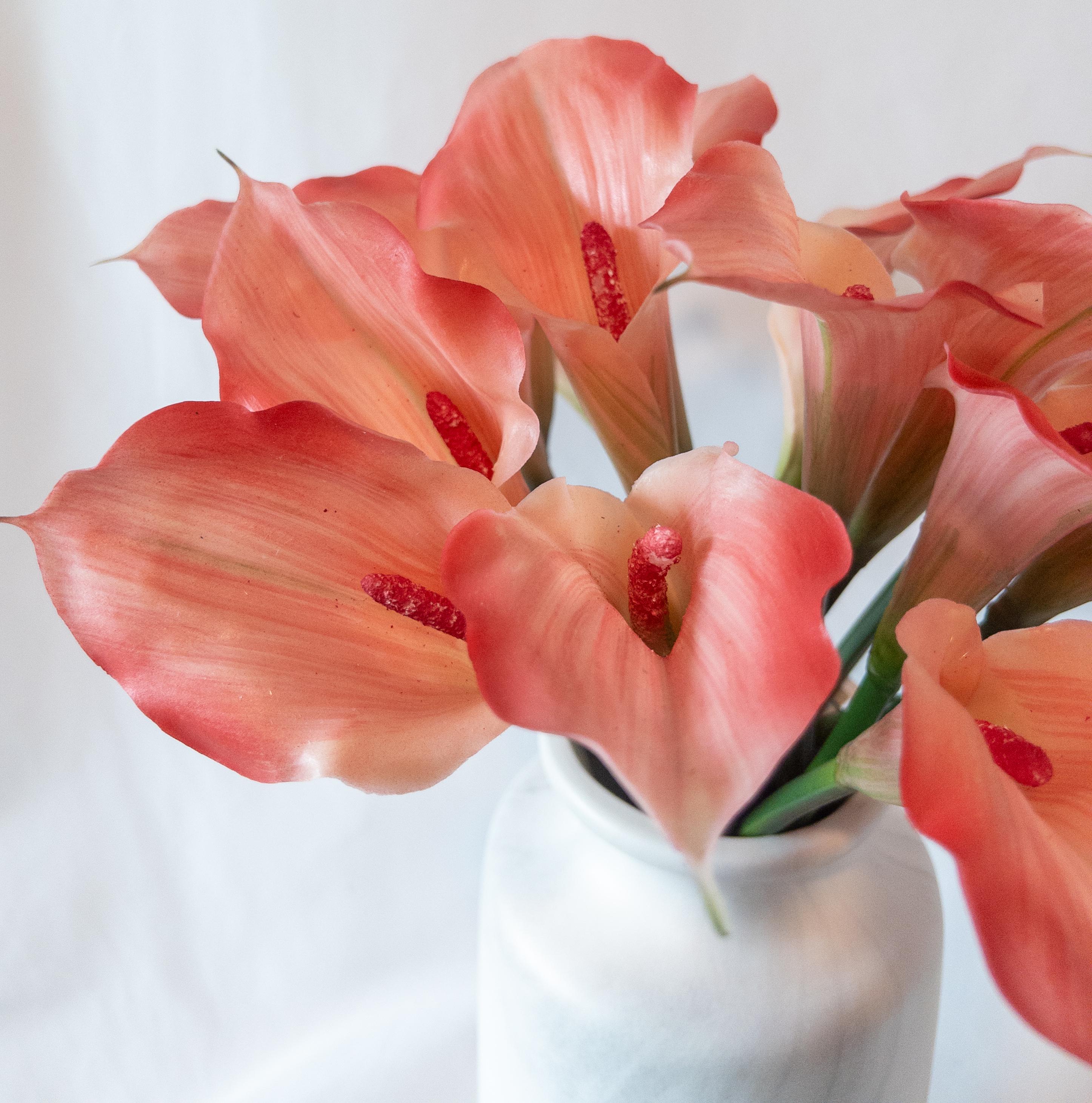 These lifelike calla lilies are sold individually, perfect for creating modern centerpieces, wedding arrangements, or adding a single sculptural bloom to a narrow vase. The bloom’s natural curve and gradient coloring make it an elegant choice for both minimal and maximalist decor.