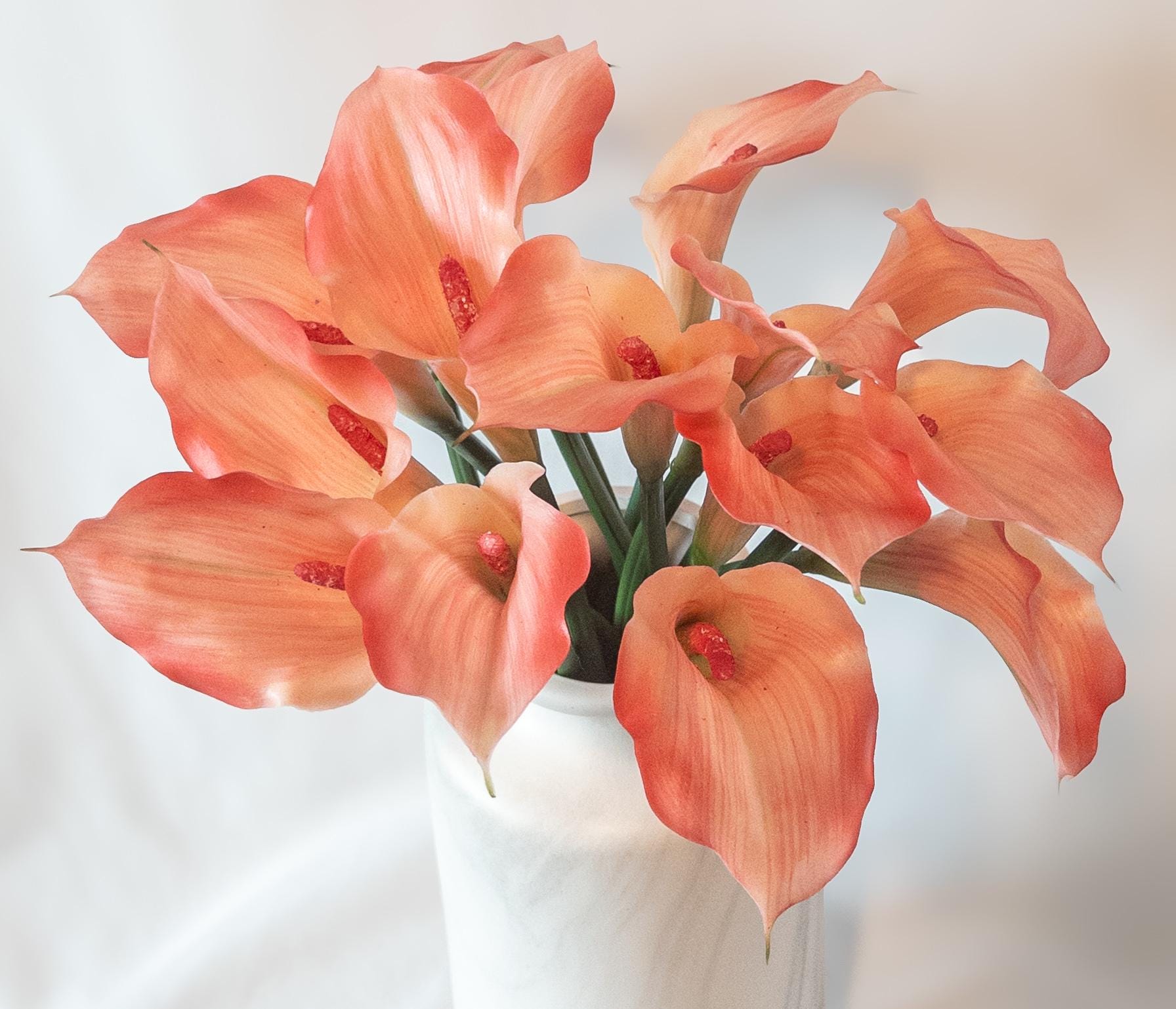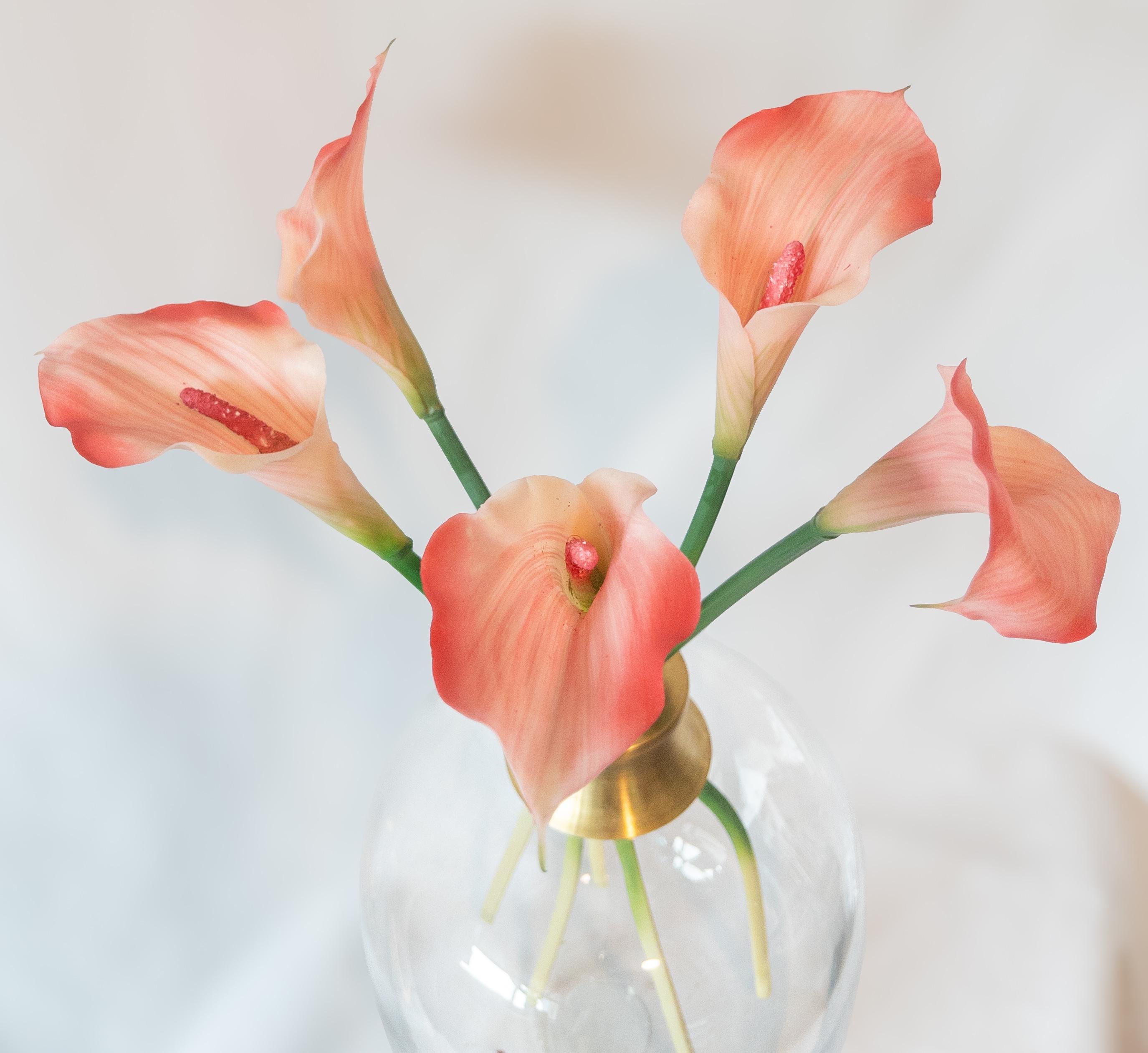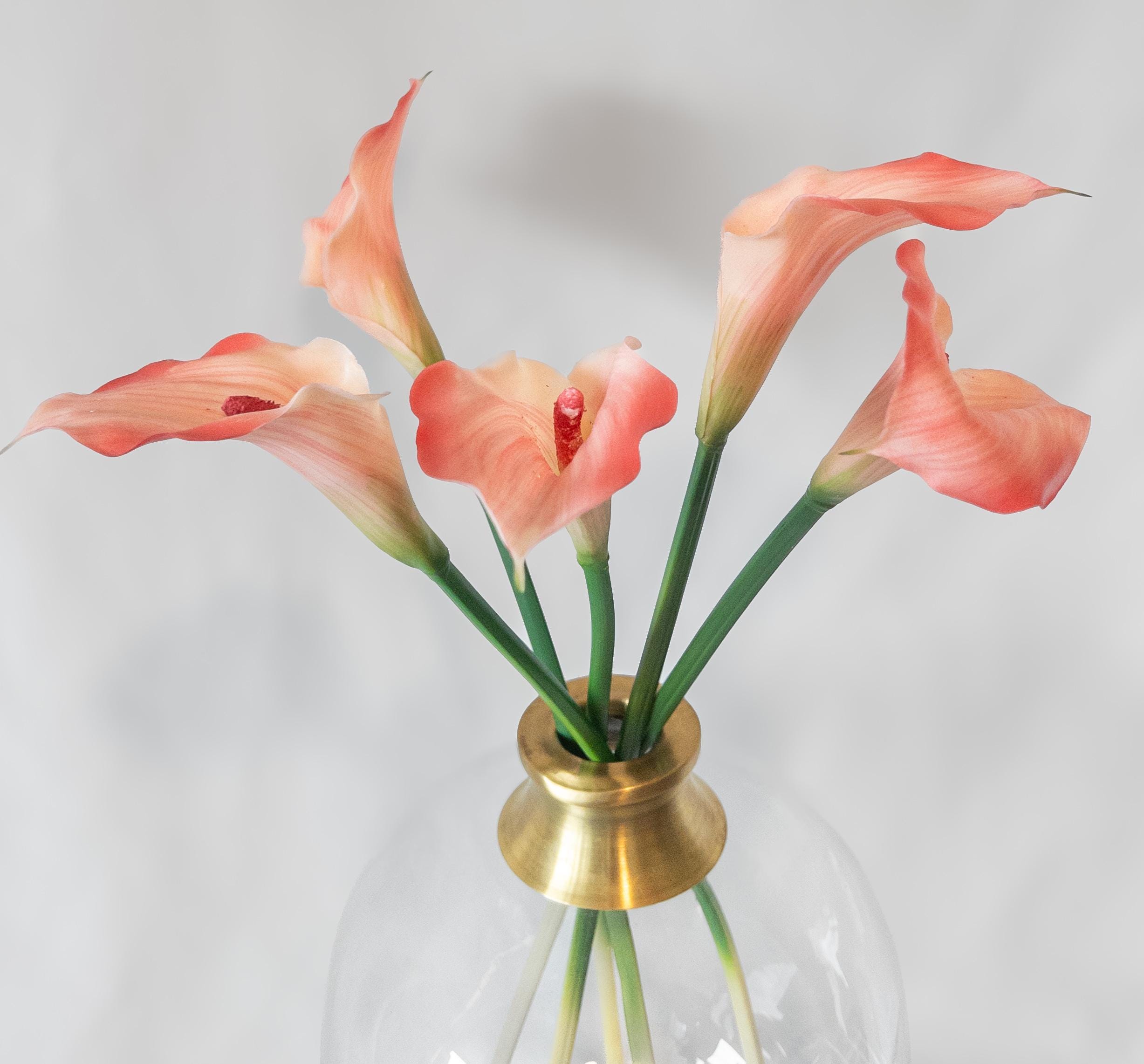 These lifelike calla lilies are sold individually, perfect for creating modern centerpieces, wedding arrangements, or adding a single sculptural bloom to a narrow vase. The bloom’s natural curve and gradient coloring make it an elegant choice for both minimal and maximalist decor.