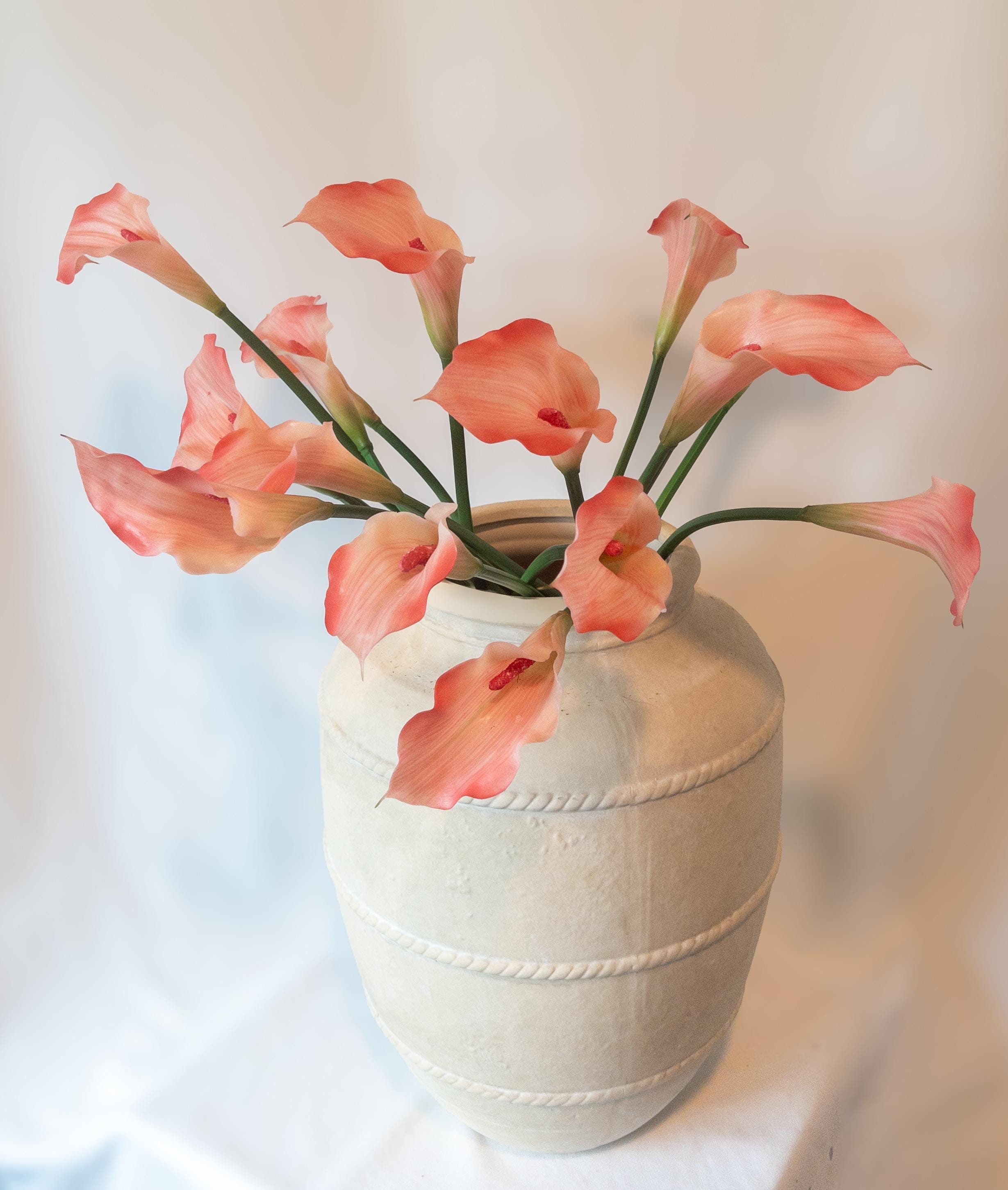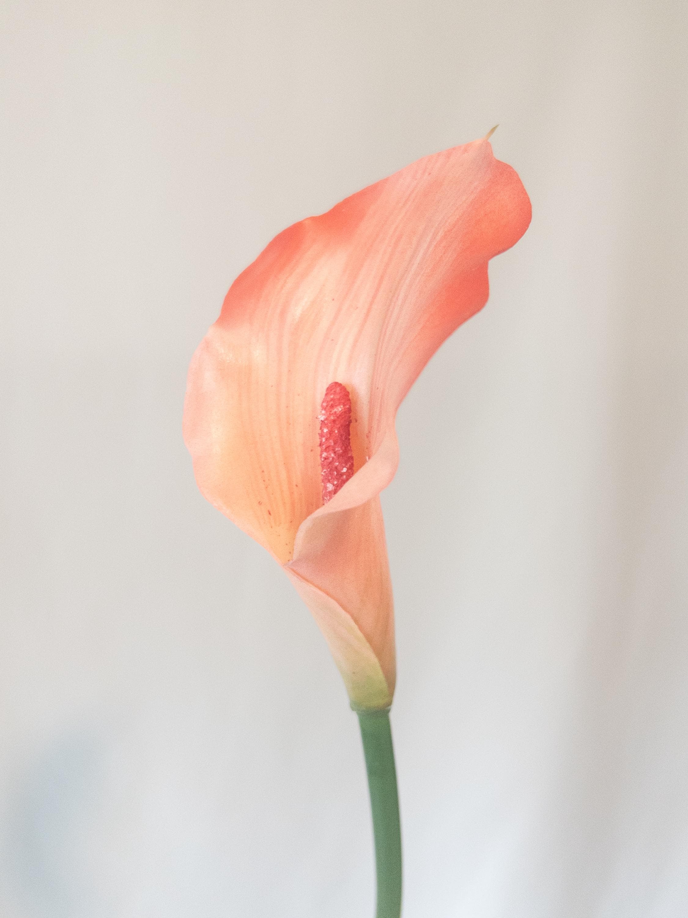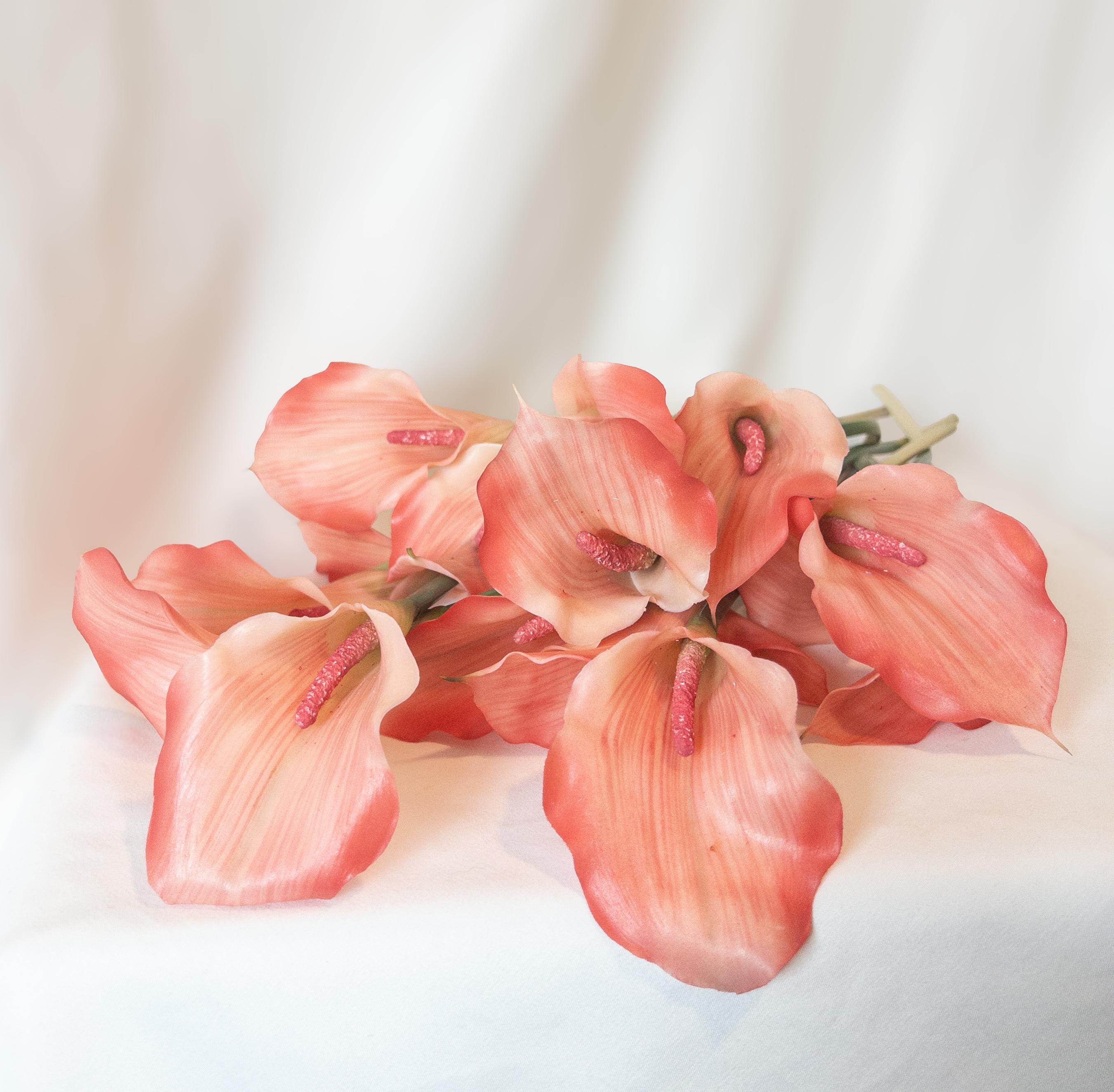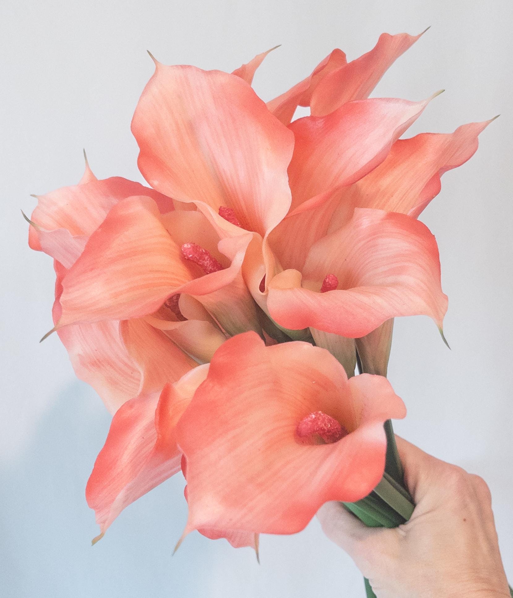 These lifelike calla lilies are sold individually, perfect for creating modern centerpieces, wedding arrangements, or adding a single sculptural bloom to a narrow vase. The bloom’s natural curve and gradient coloring make it an elegant choice for both minimal and maximalist decor.