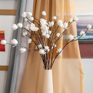 Details: • Overall length: 27 inches • Bloom size: approx. 3–4 inches across • Soft white petals with realistic yellow and orange centers • Natural-looking branching stem with airy greenery • Sold individually