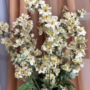 • Sold individually • Stem length: Approx. 20 inches • Bloom length: Approx. 2.5 inches • Creamy white flowers with rich green stems and leaves • Light, sculptural movement adds softness to arrangements • Perfect for vases, centerpieces, or layering into bouquets