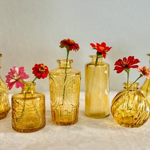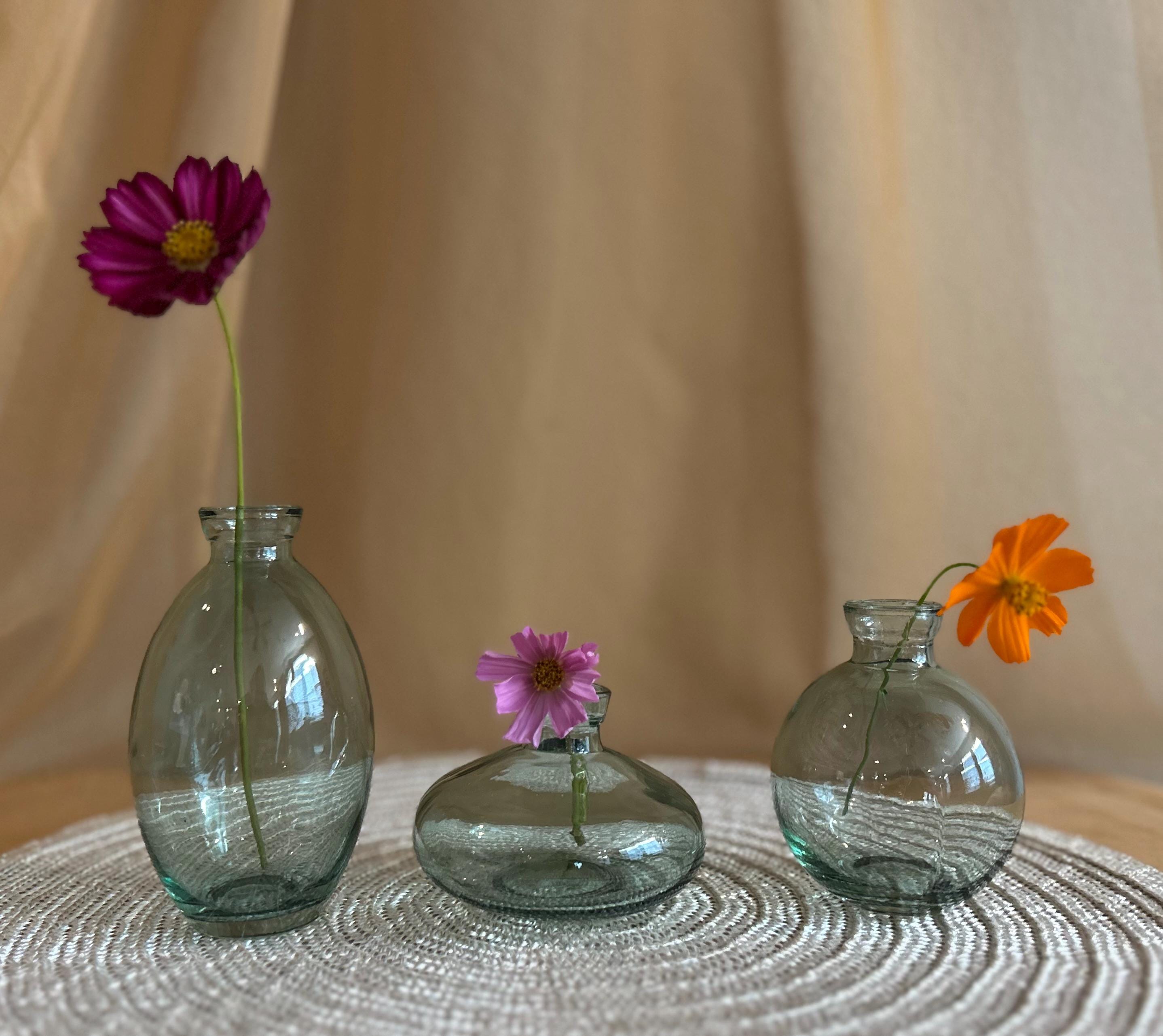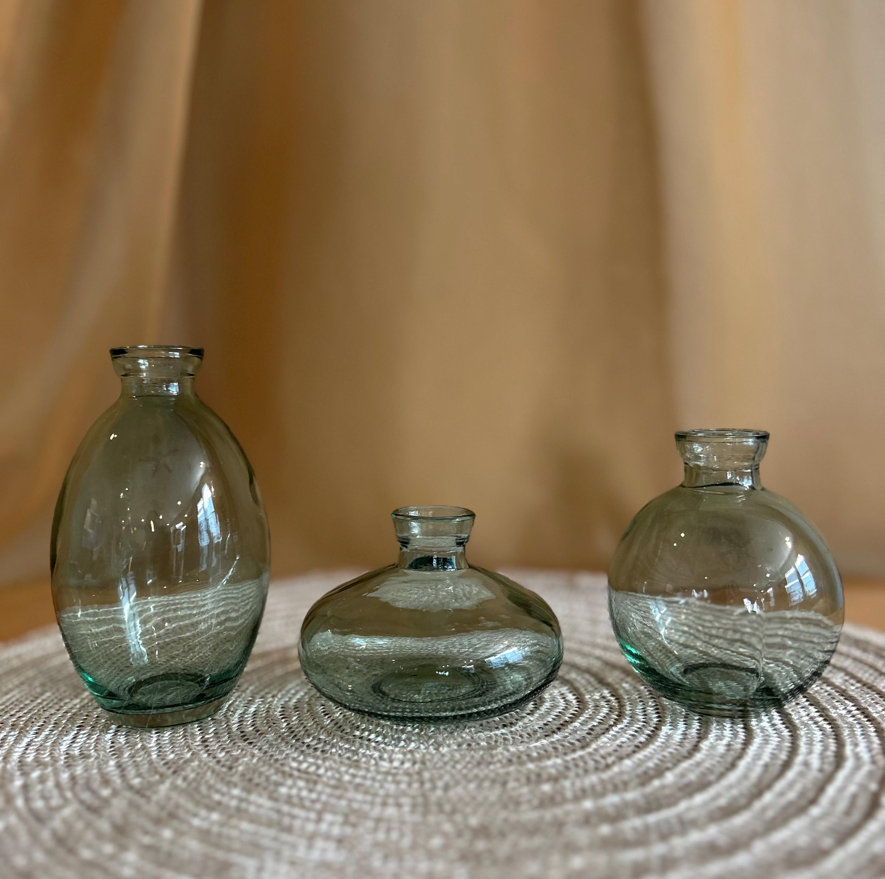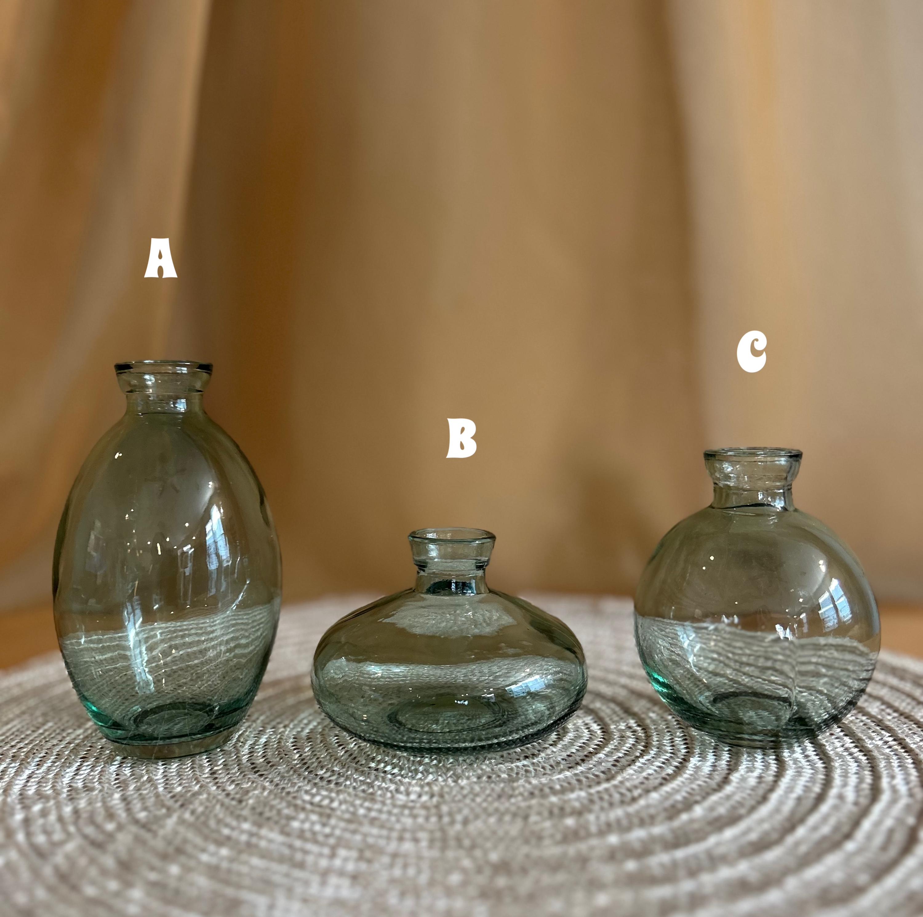 Bring a touch of timeless charm to your space with these vintage-inspired glass bud vases. Their soft green tint and unique shapes make them perfect for showing off a single bloom or a petite bouquet.