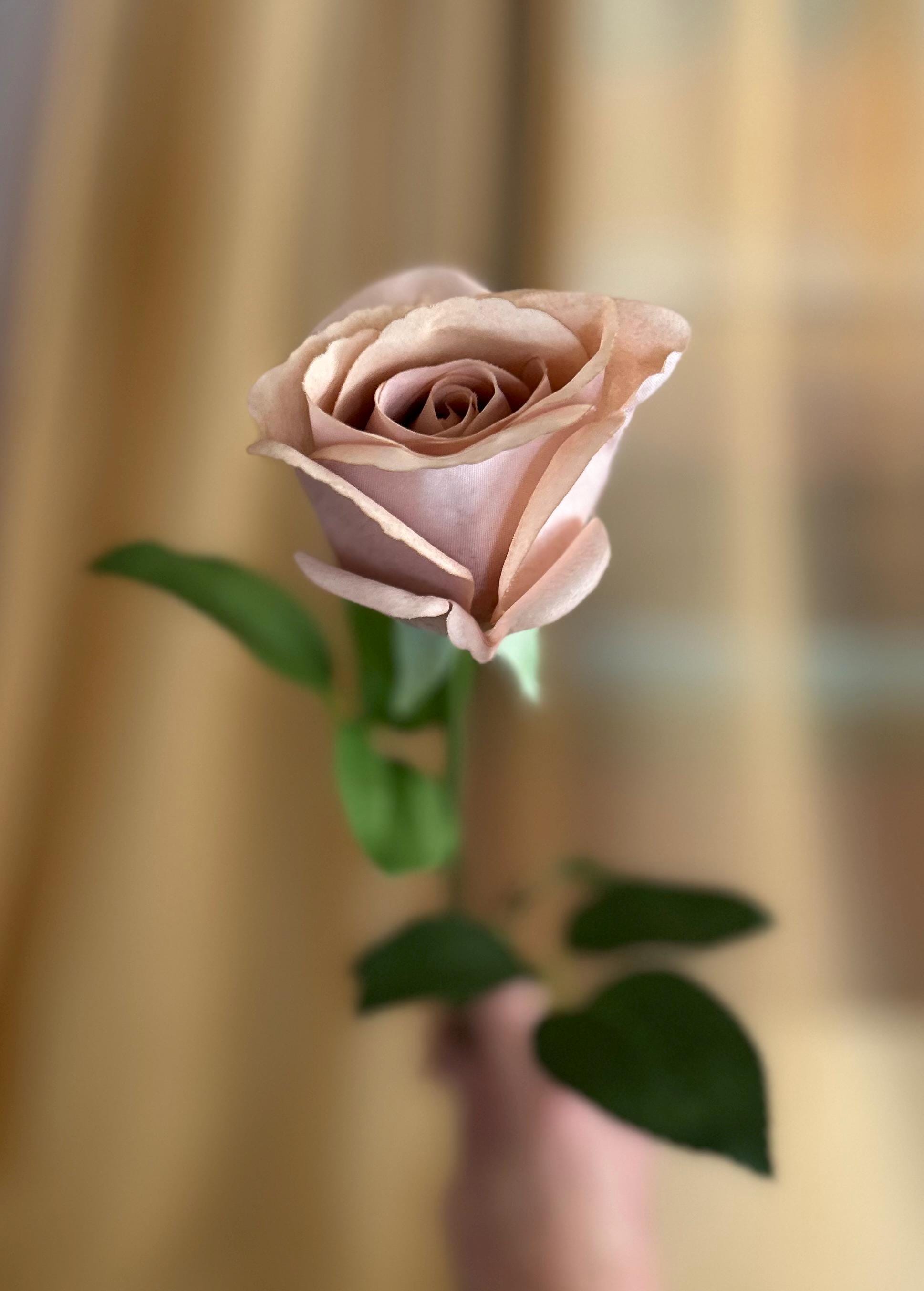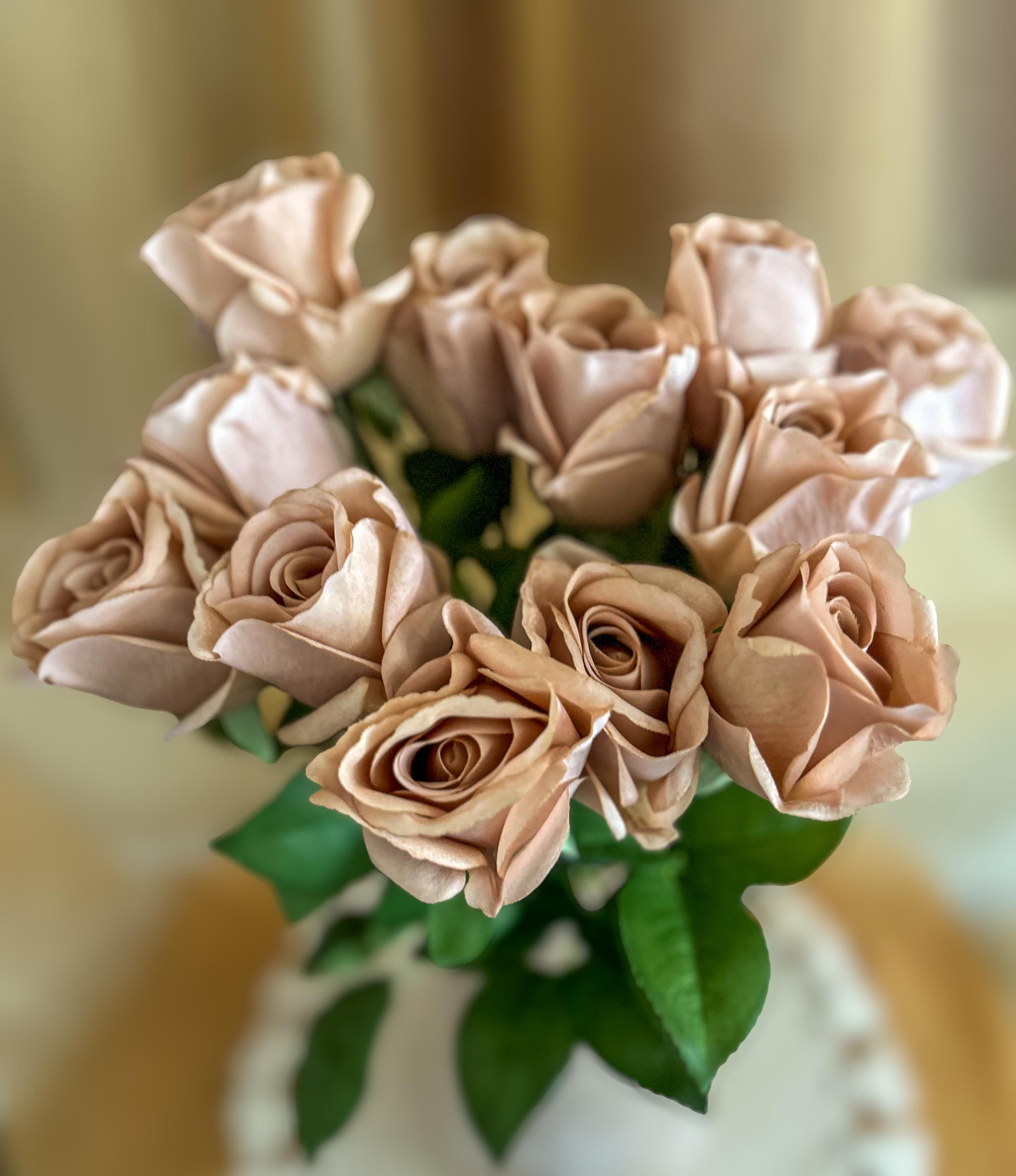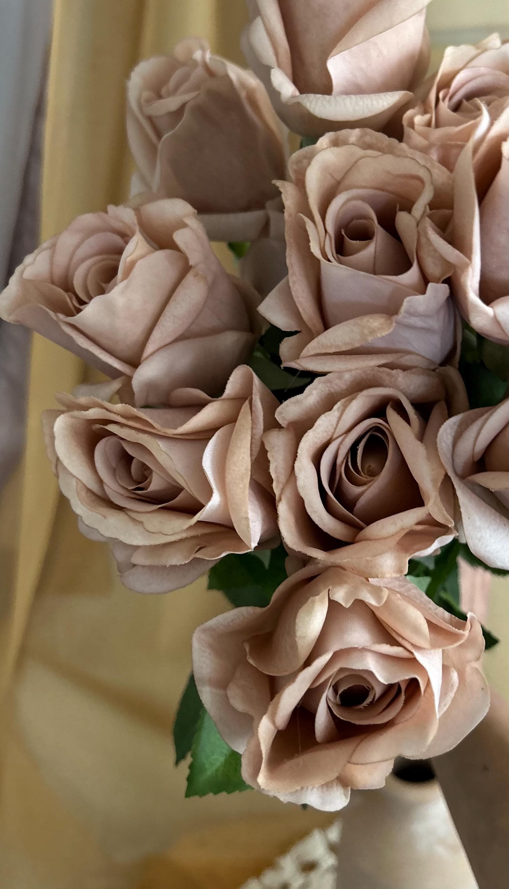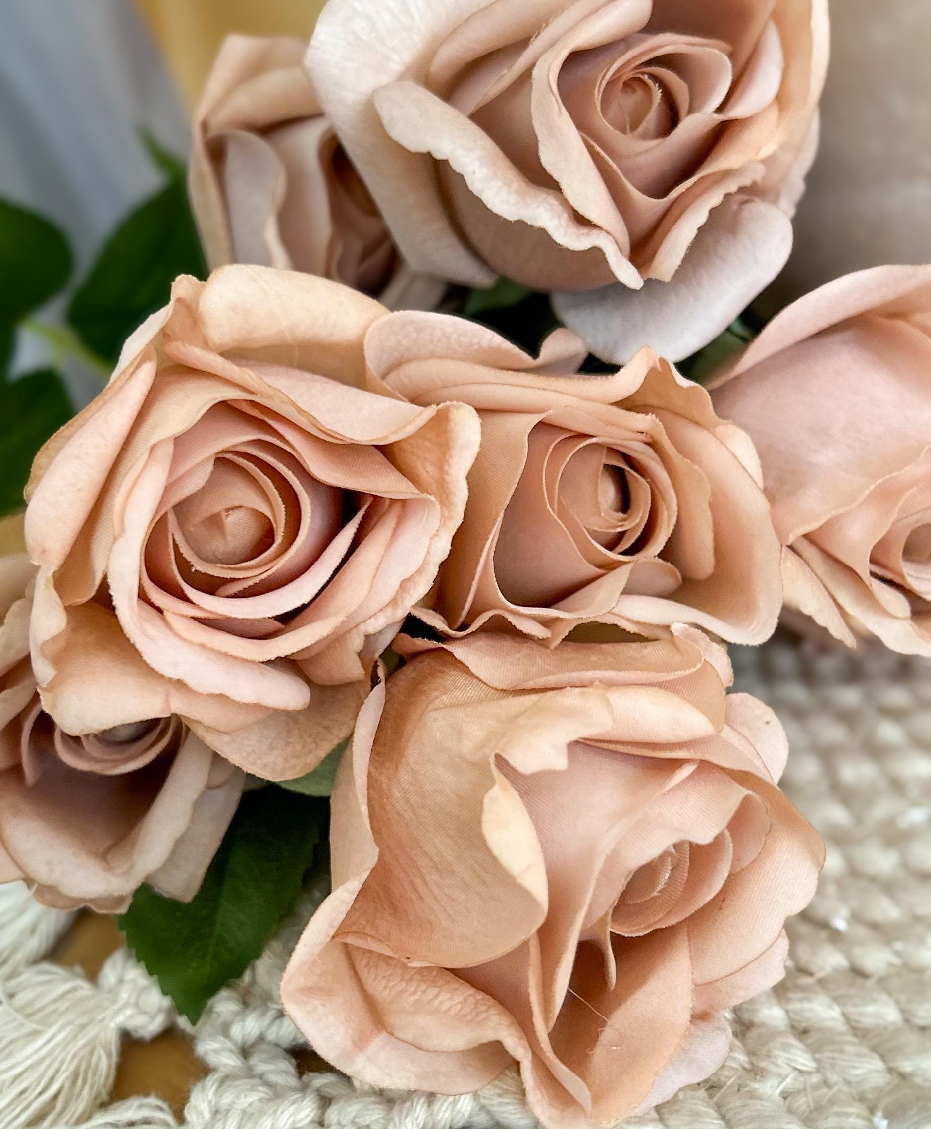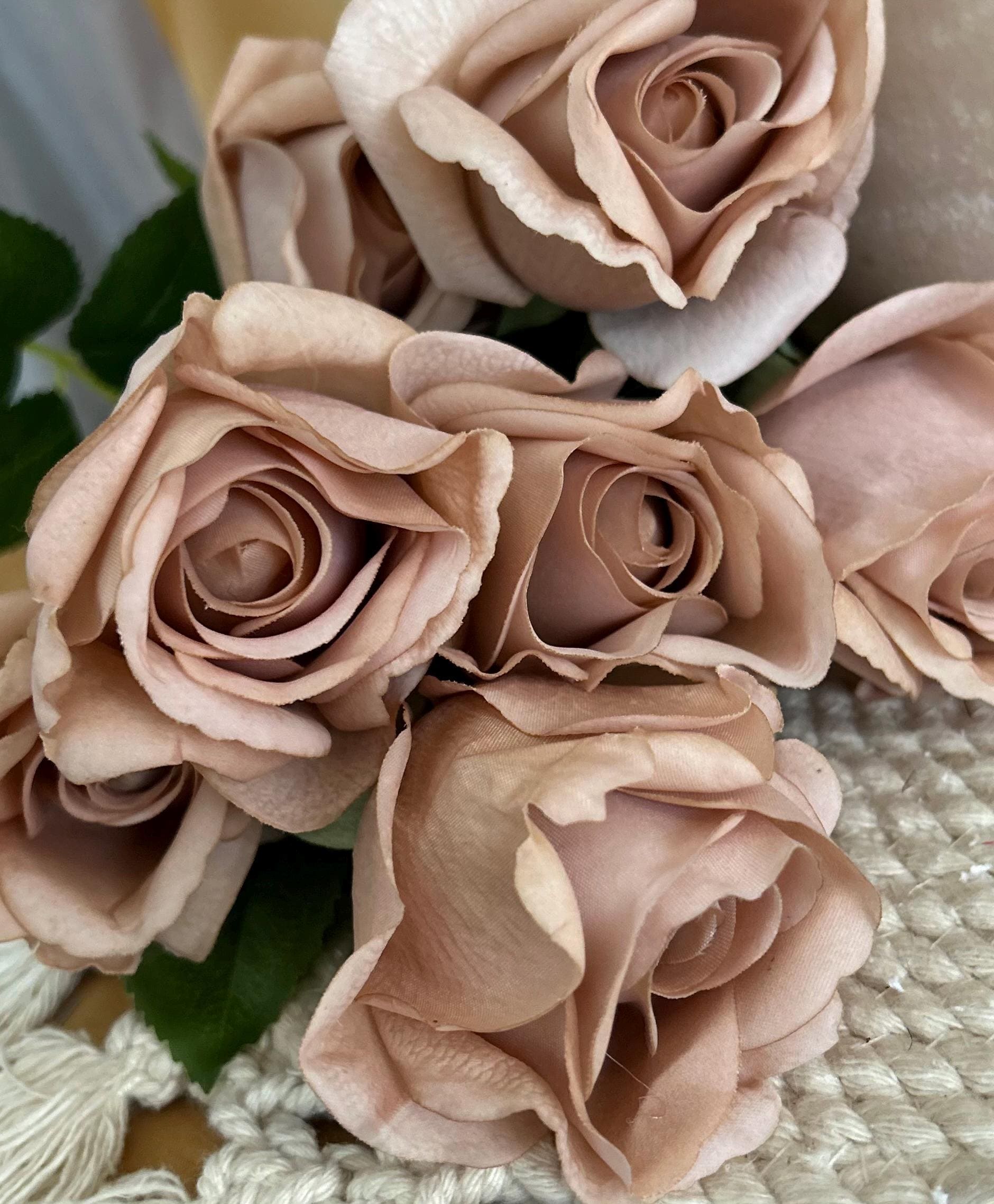 Add a touch of rich sophistication to your floral collection with this light mocha rose stem. Measuring approximately 21 ½ inches long, this realistic faux rose features a moisturized touch velvety bloom about 3 inches wide, offering a gorgeous light mocha hue with blush pink undertones. The lush green leaves and sturdy stem bring lifelike detail, making it perfect for both modern and vintage-inspired arrangements.