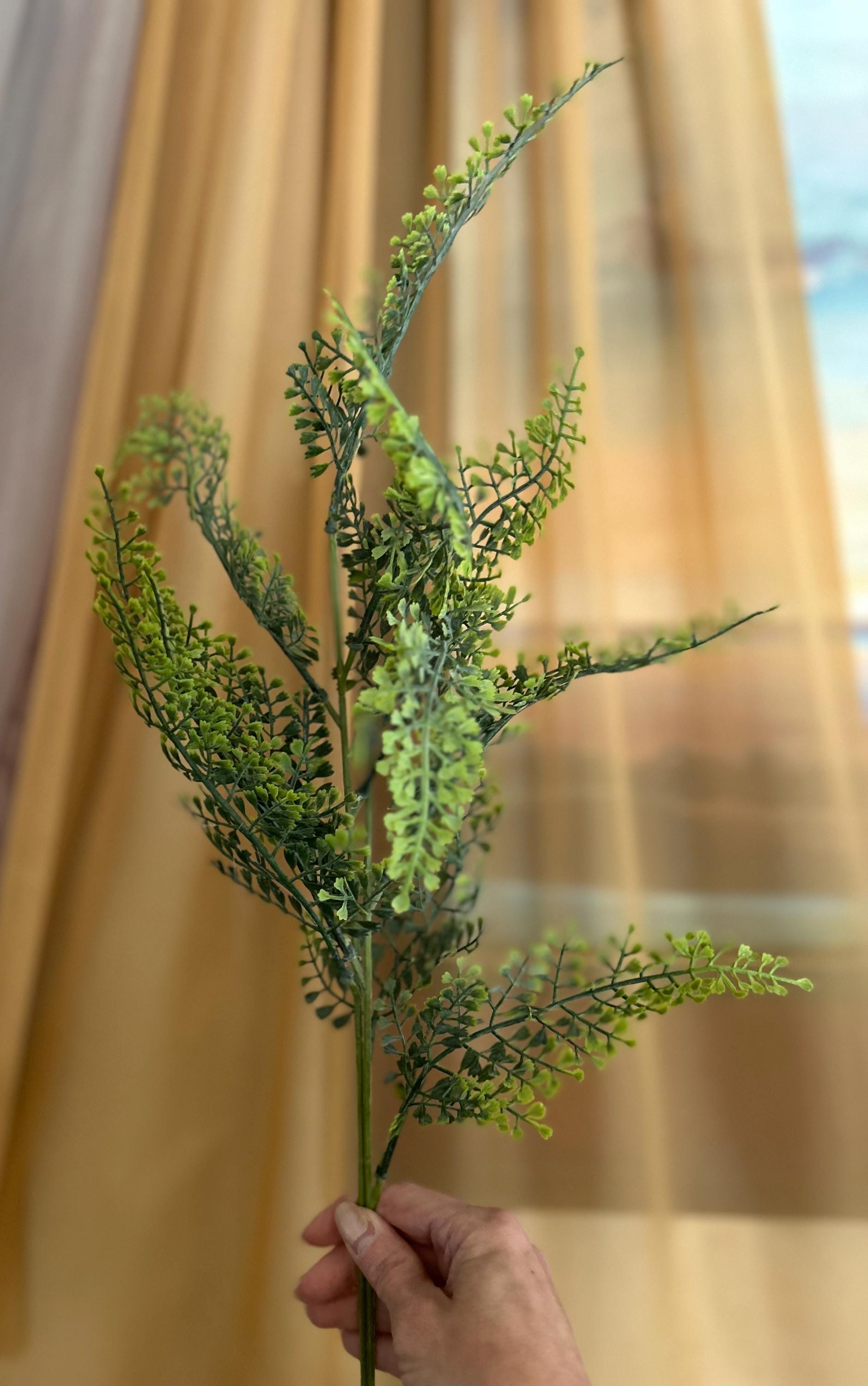 Add lush texture and natural movement to your arrangements with this artificial fern spray. Measuring approximately 31 inches long and 7 inches wide, this faux greenery stem features delicate, lacy leaves in layered shades of green for a realistic, fresh-from-the-garden look.