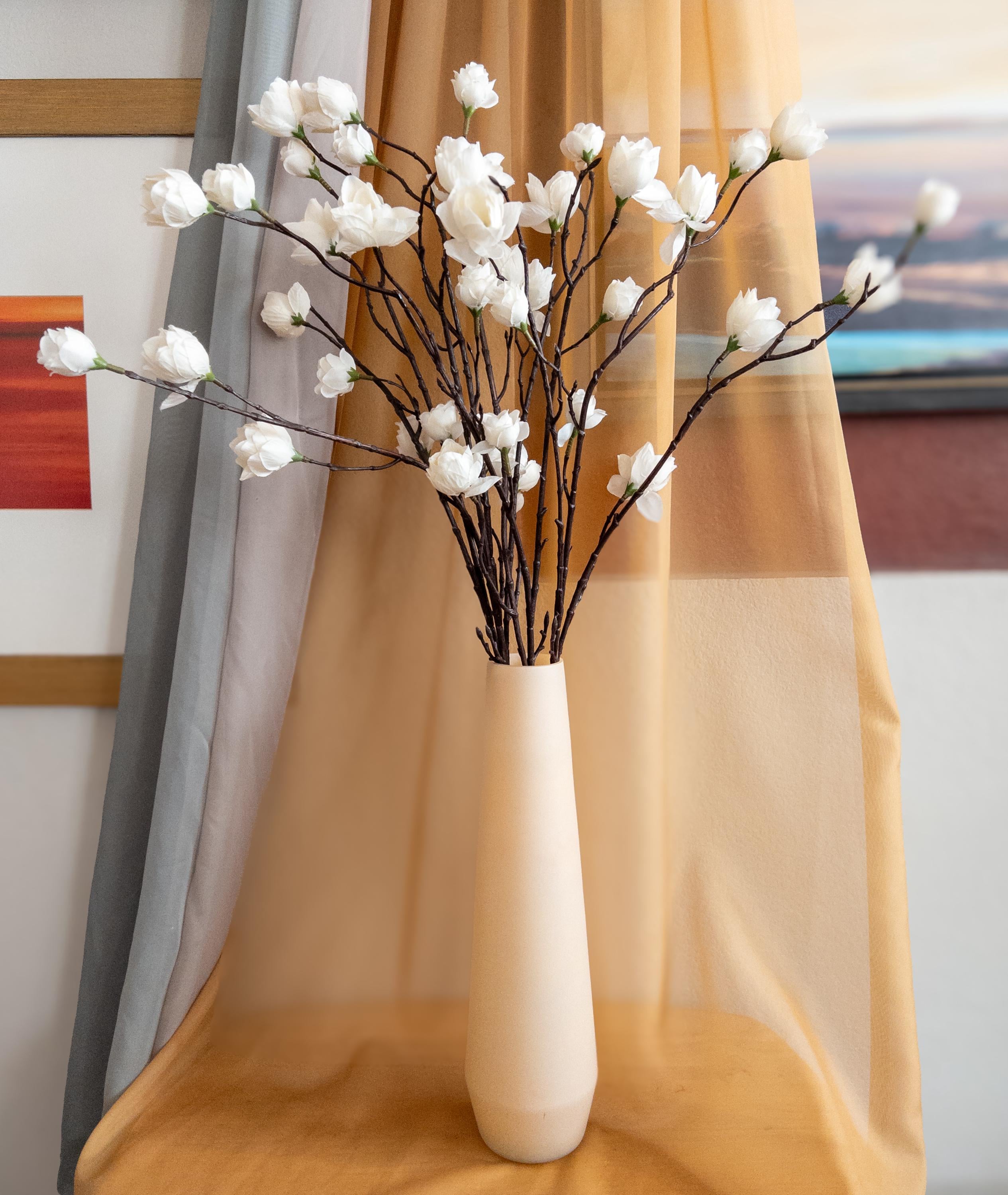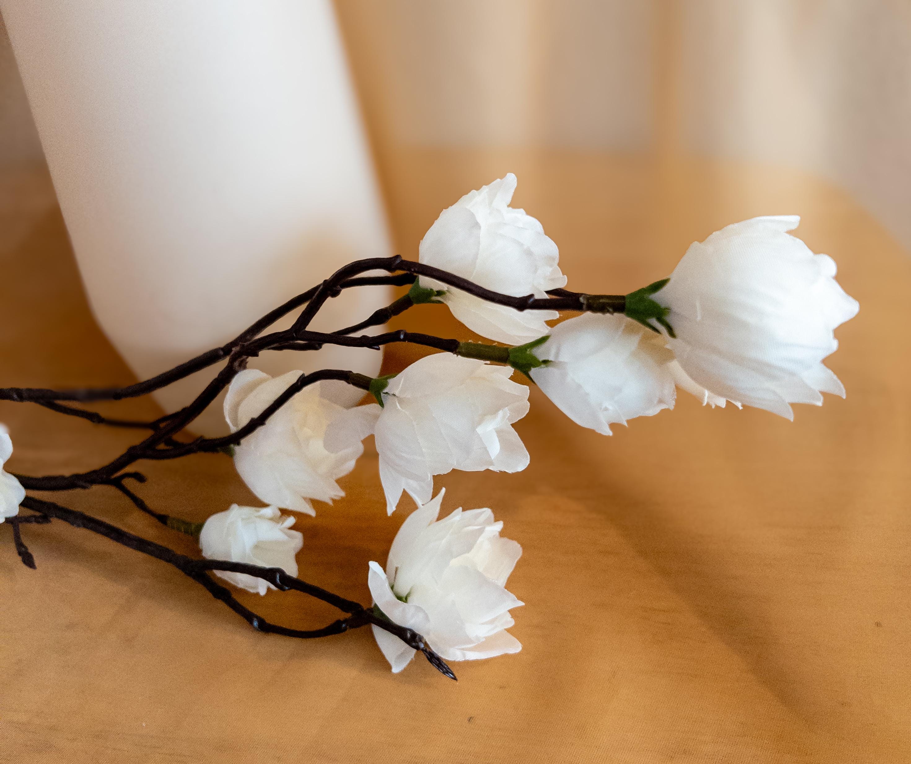 Bring timeless simplicity into your home with these elegant white hops stems — a classic choice for airy, sculptural arrangements. Each lifelike stem features clusters of creamy white blooms perched along dark brown branches, creating soft movement and natural contrast.