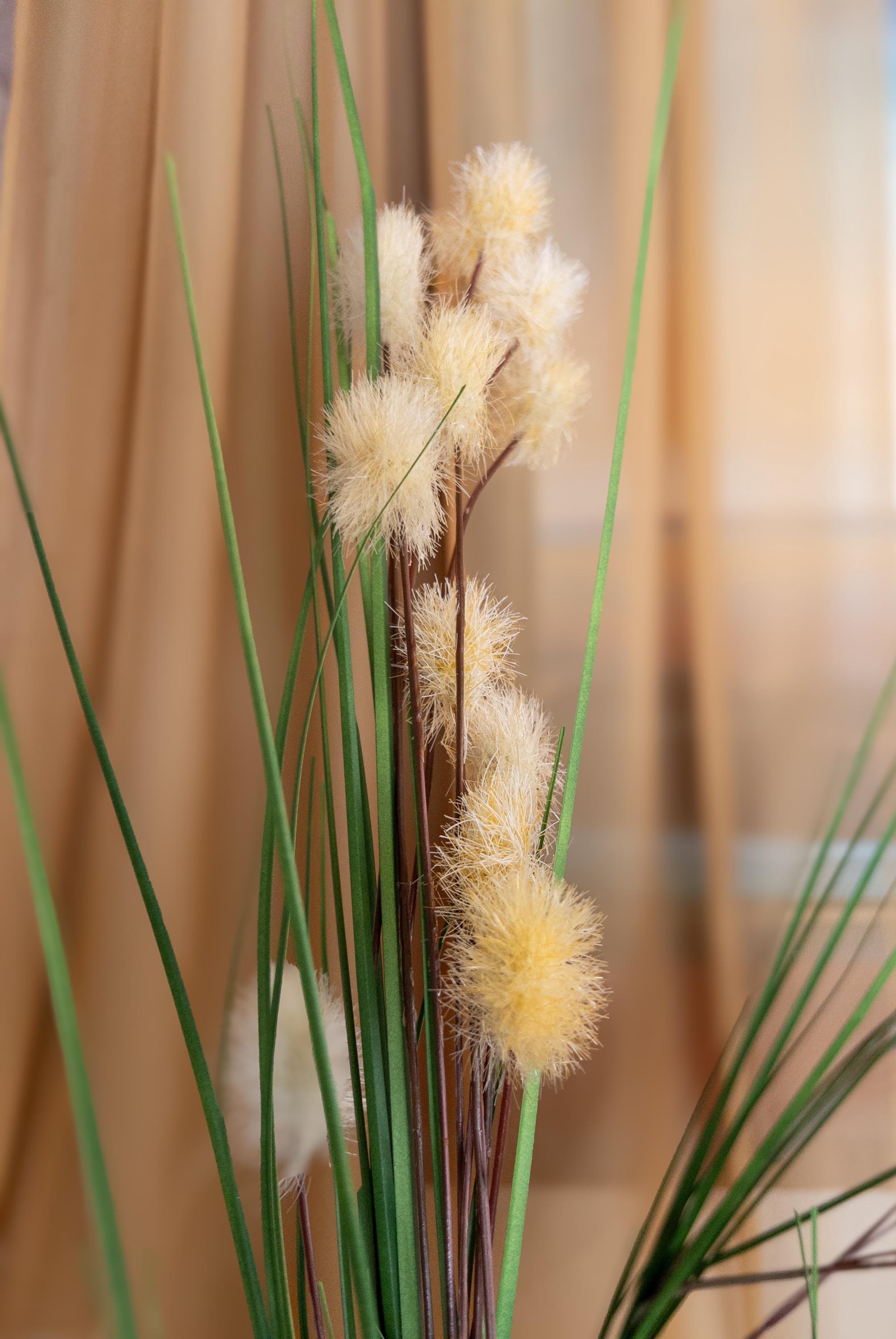 Add height, texture, and soft movement to your arrangements with this tall faux foxtail reed grass stem, featuring wispy neutral plumes and slender grass blades. At 42 inches tall, it’s perfect for statement styling in floor vases, entryways, or boho-inspired corner arrangements.