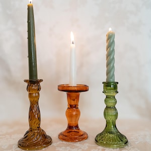 Bring a soft, romantic glow to your tablescape with these sage green glass candle holders. Their ribbed glass texture catches the light beautifully, adding an elegant yet modern vintage touch to mantels, dinner parties, weddings, and cozy everyday décor.