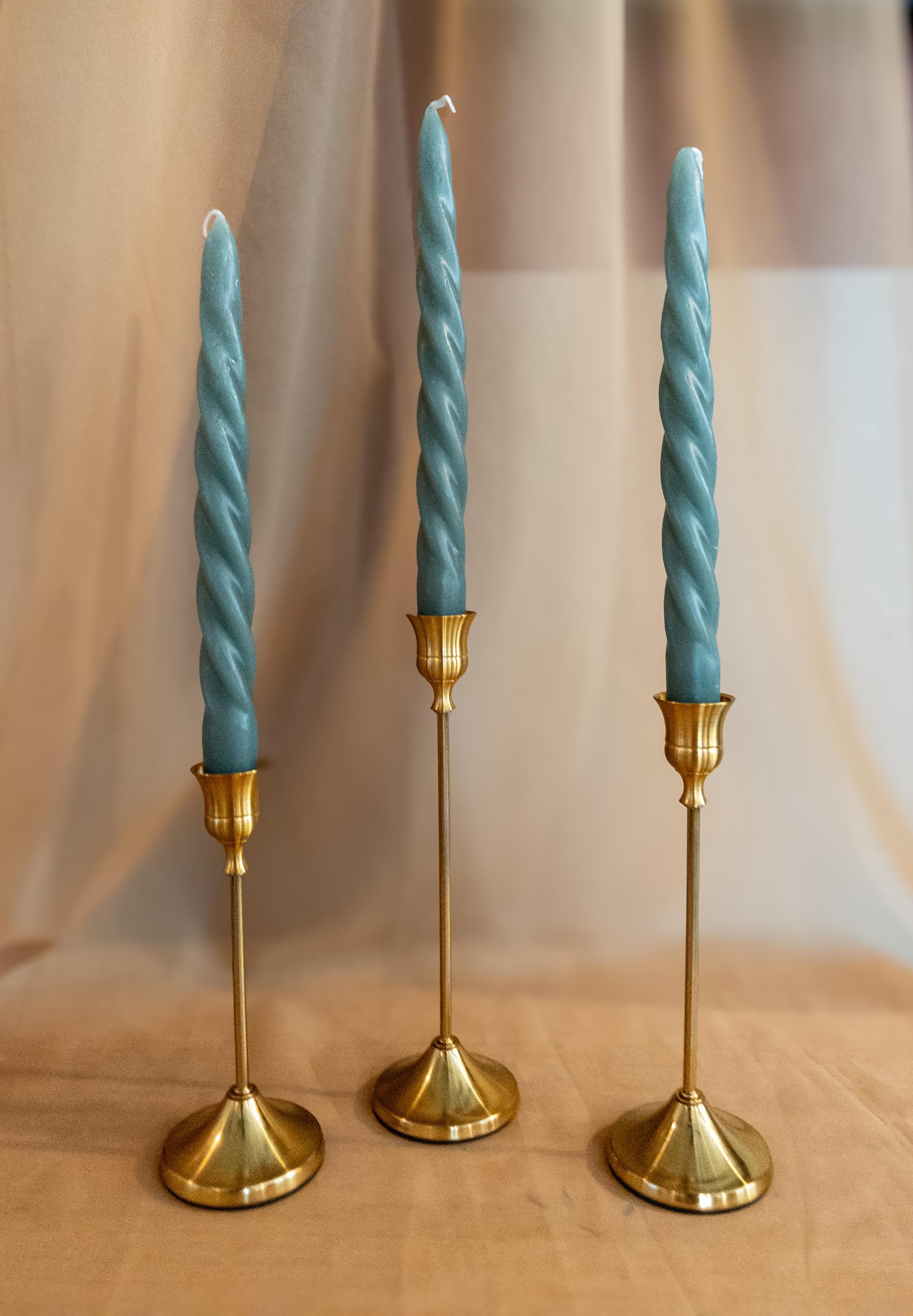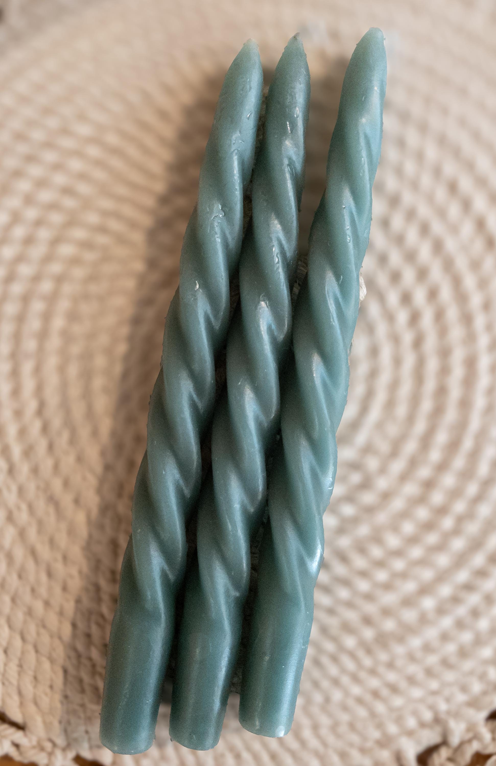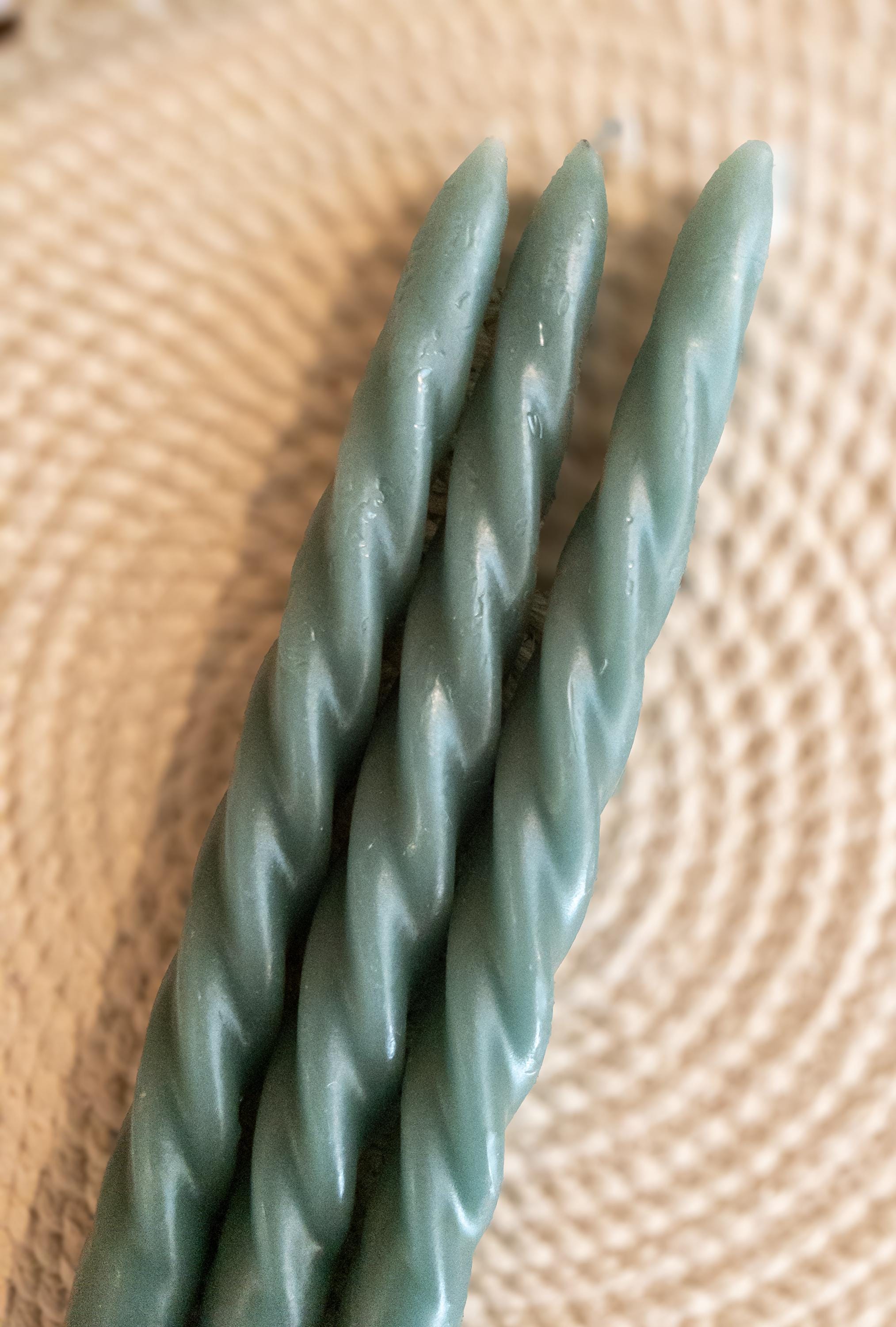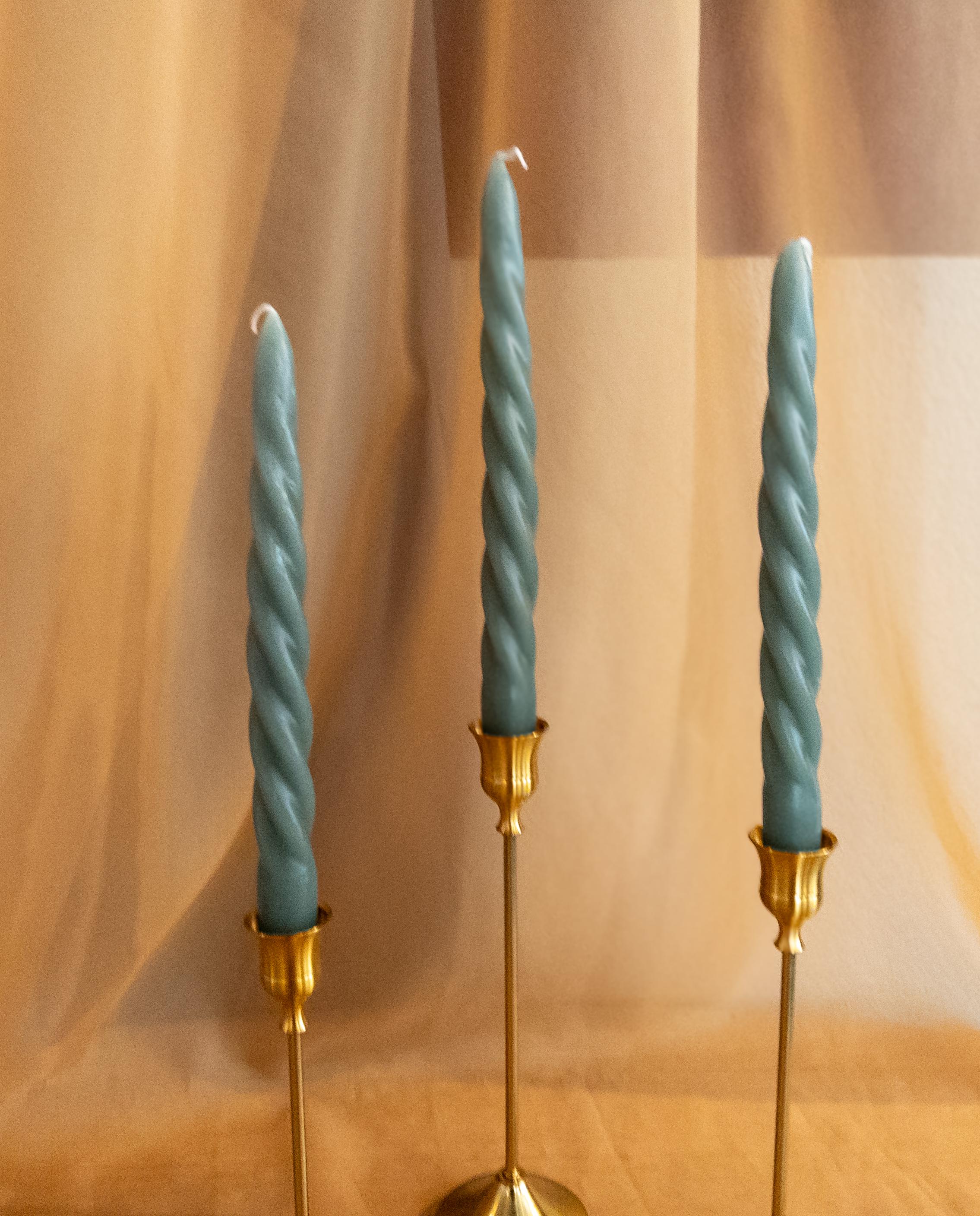 Add a romantic and refined touch to your tablescape with these 10-inch dusty teal twist taper candles, sold as a set of two. The soft spiral design brings sculptural movement and charm, while the vintage green-blue tone pairs beautifully with brass, glass, and natural textures.
