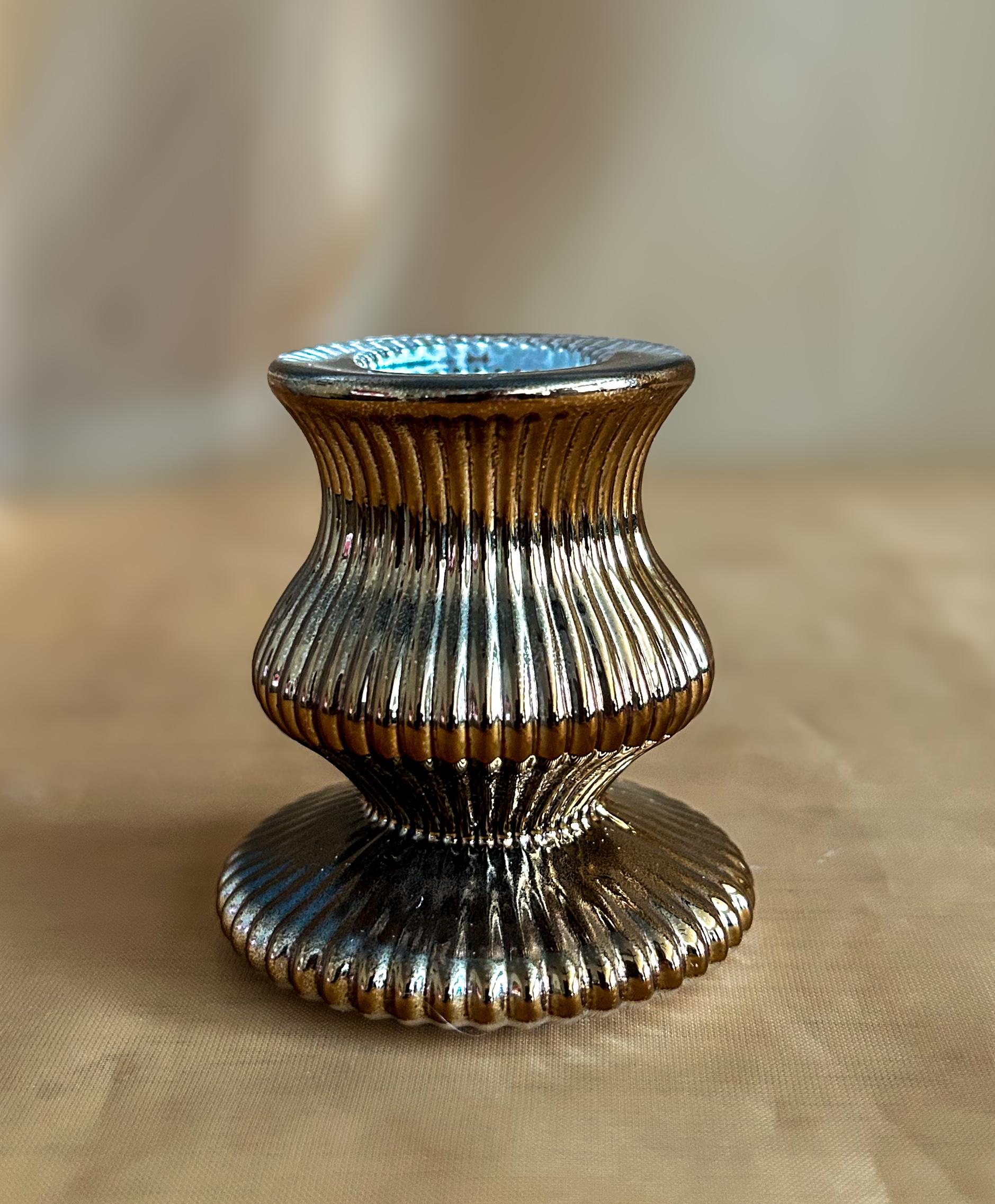 Style D: Metallic gold ribbed glass — approximately 2¼” high x 2¼” wide