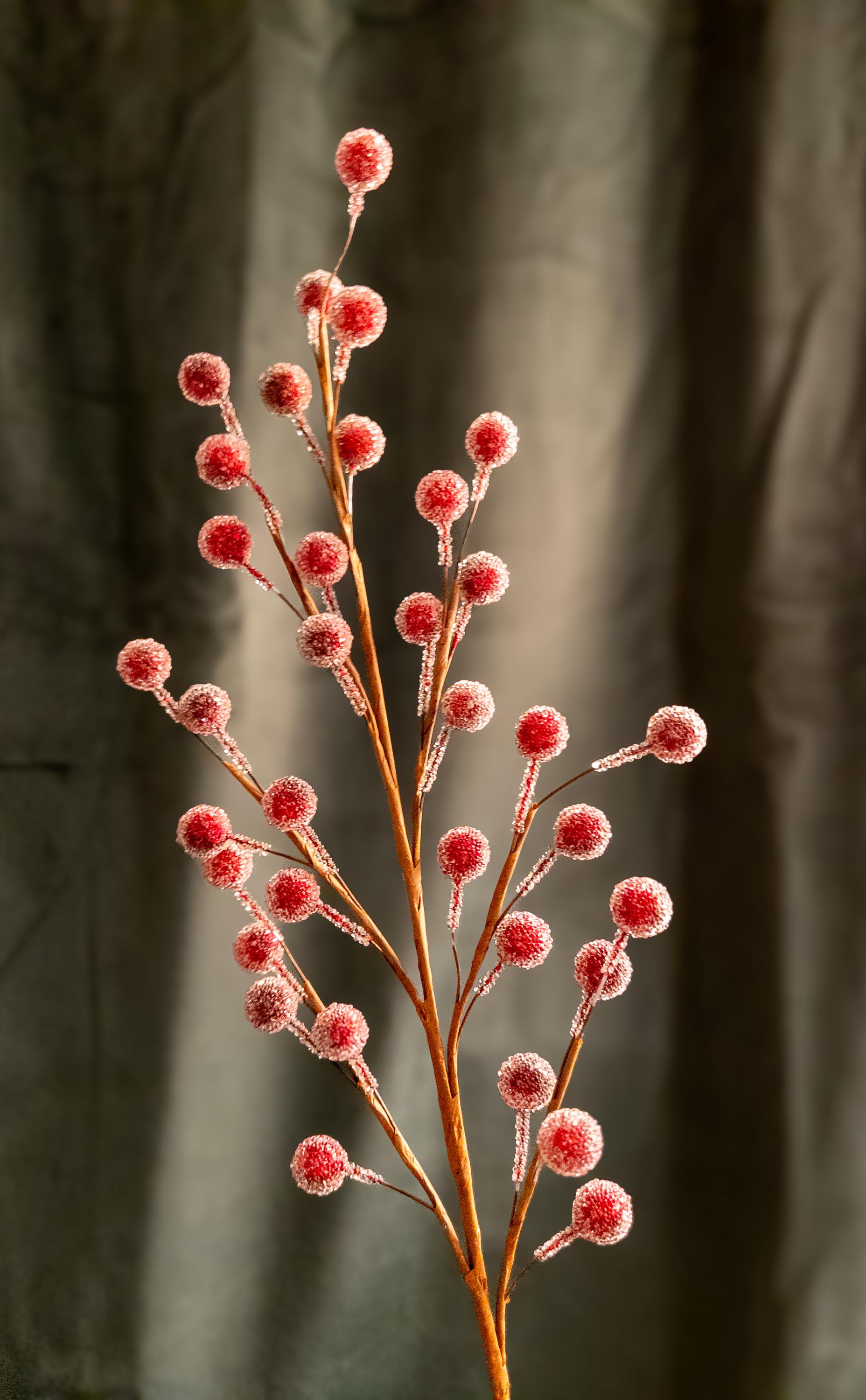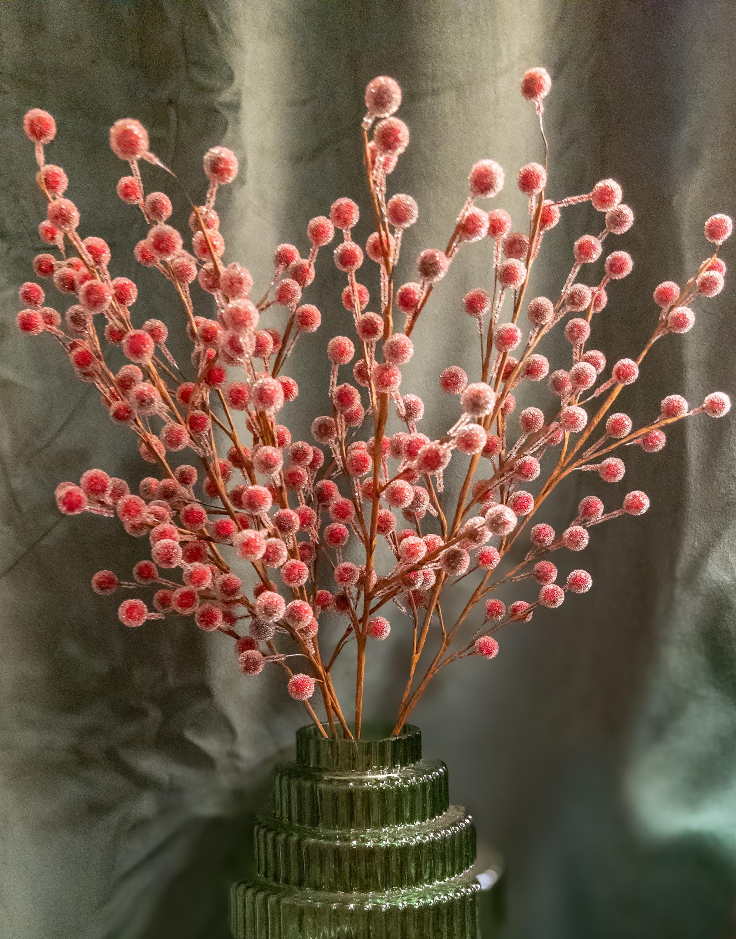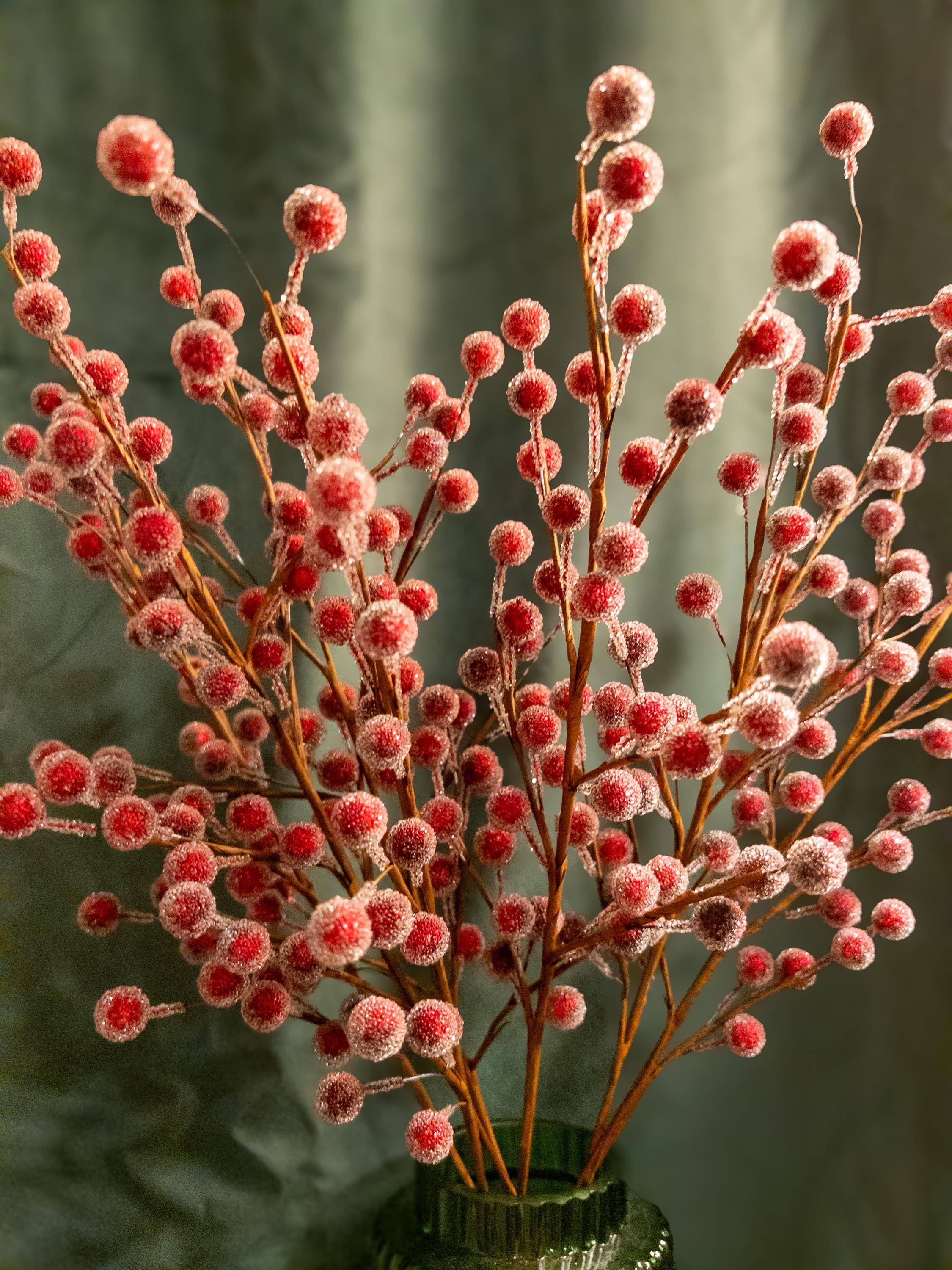 • Realistic frosted red berries on flexible brown stems