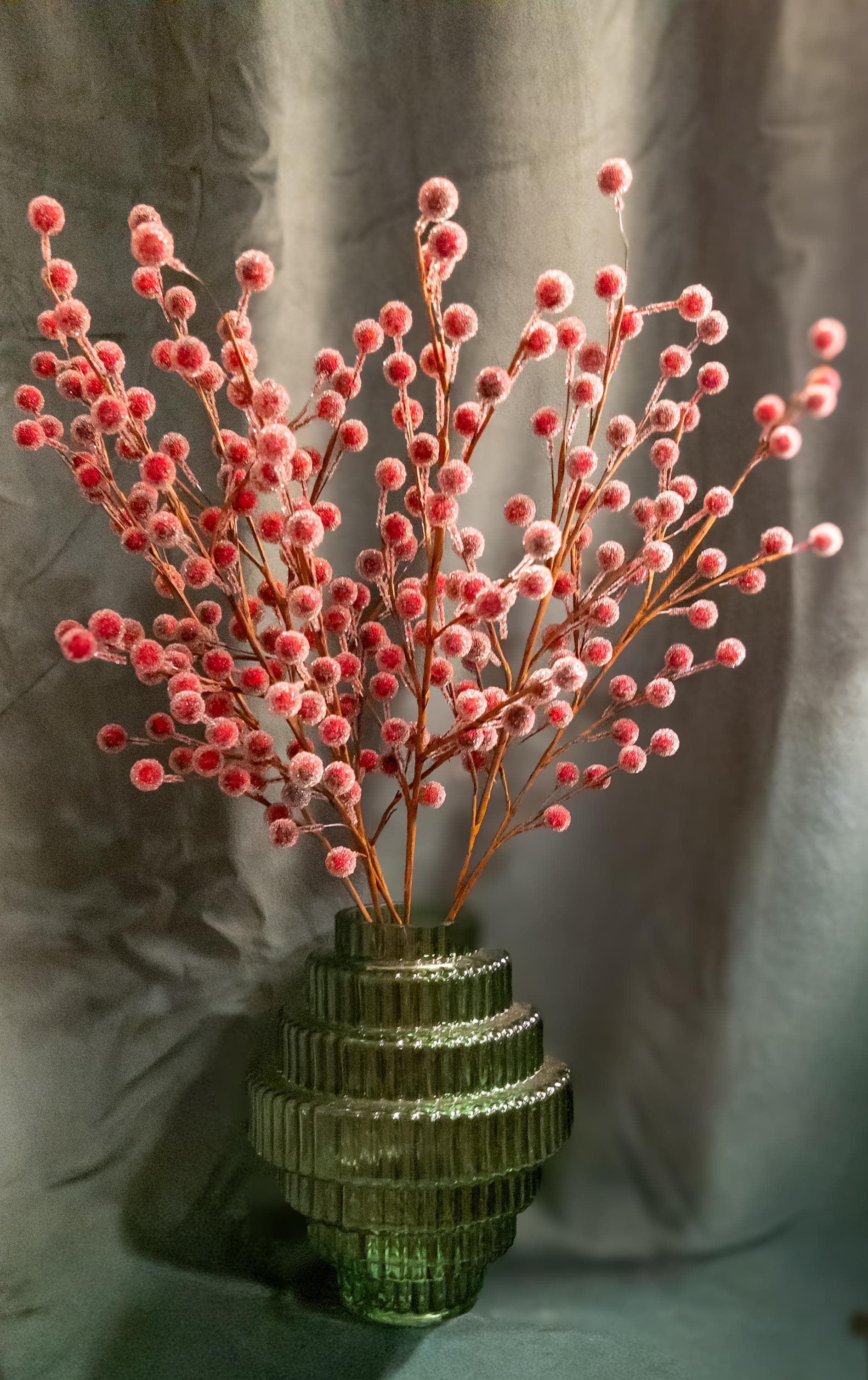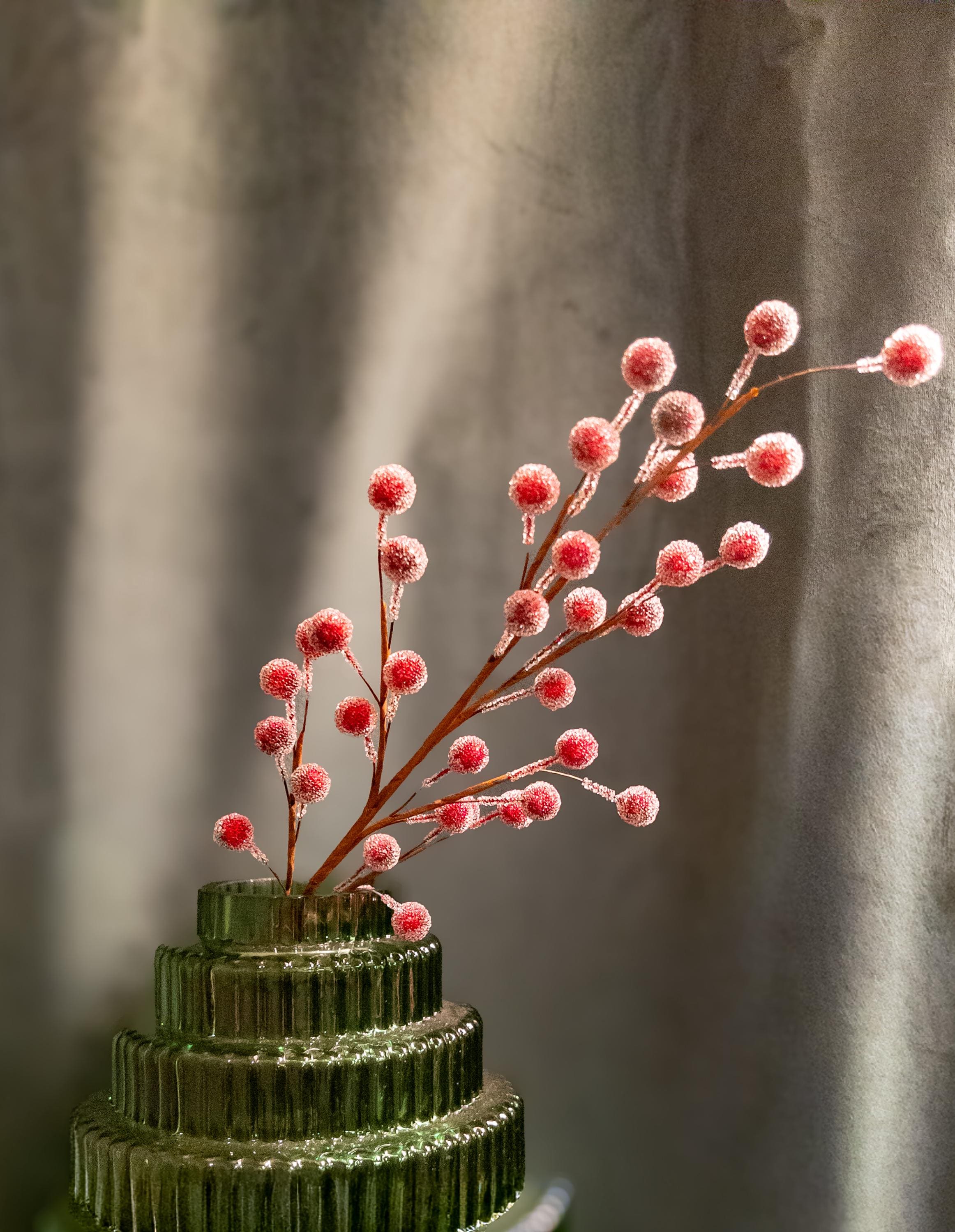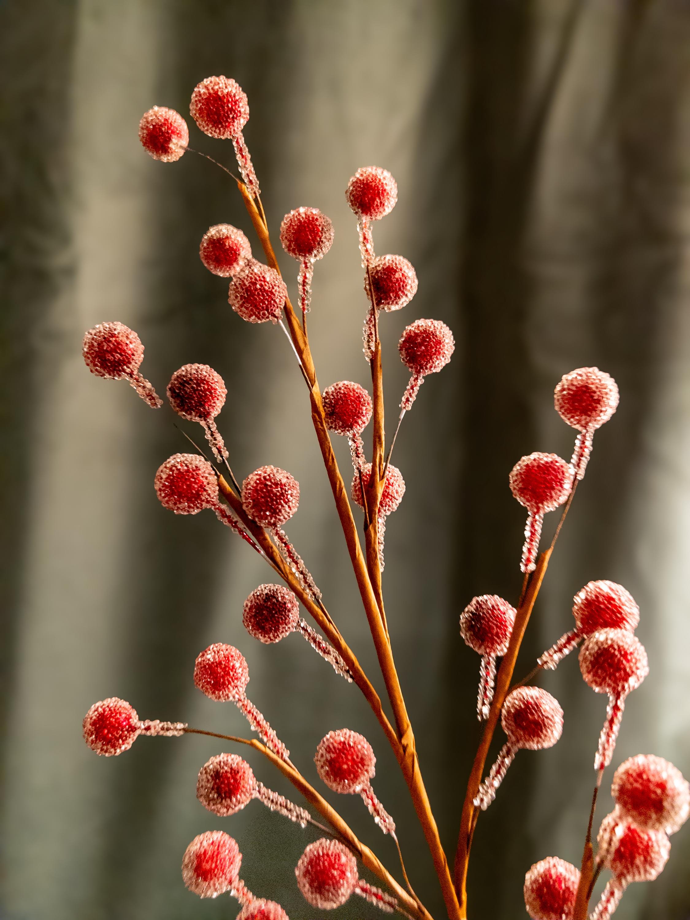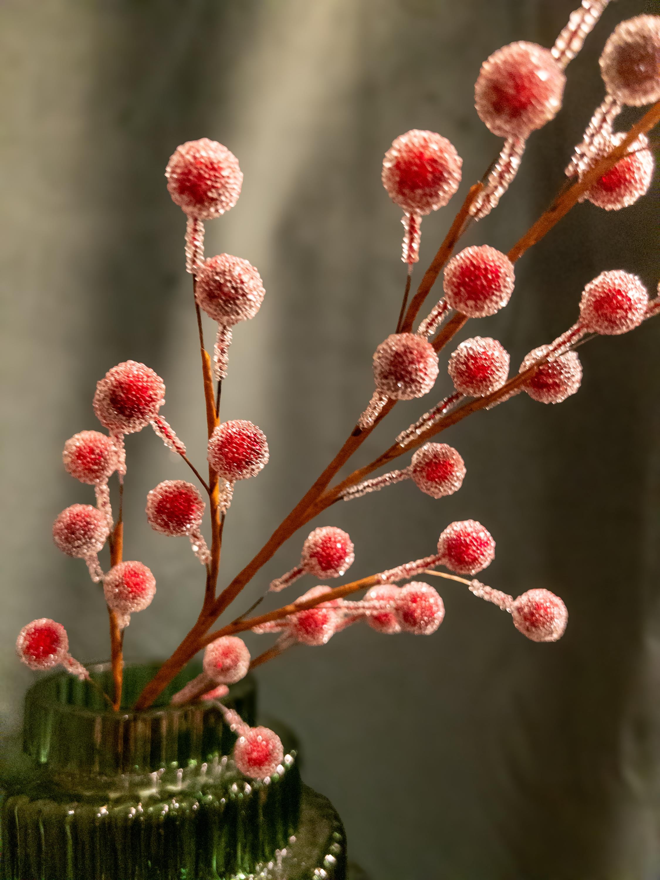 • Realistic frosted red berries on flexible brown stems