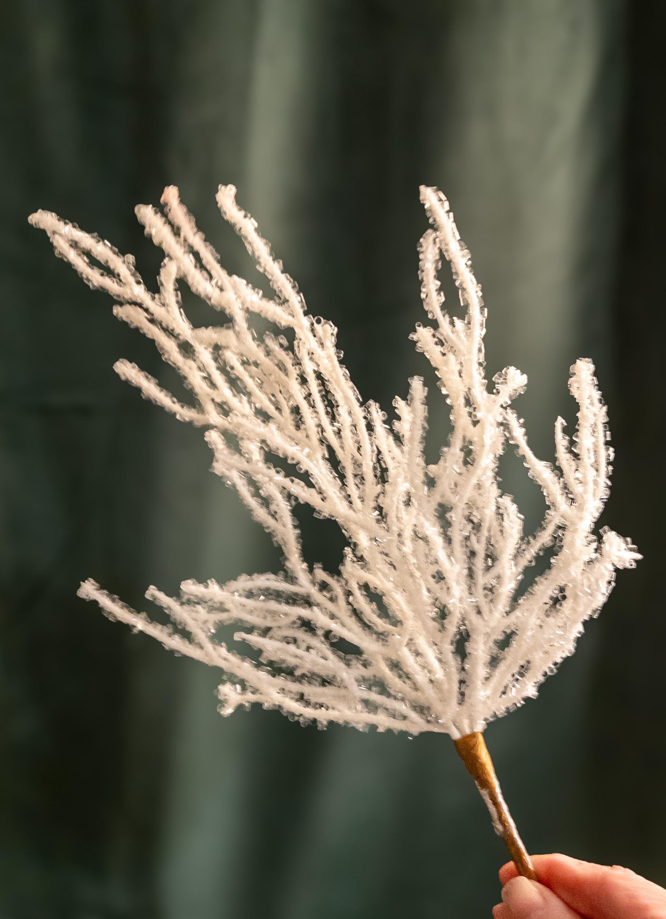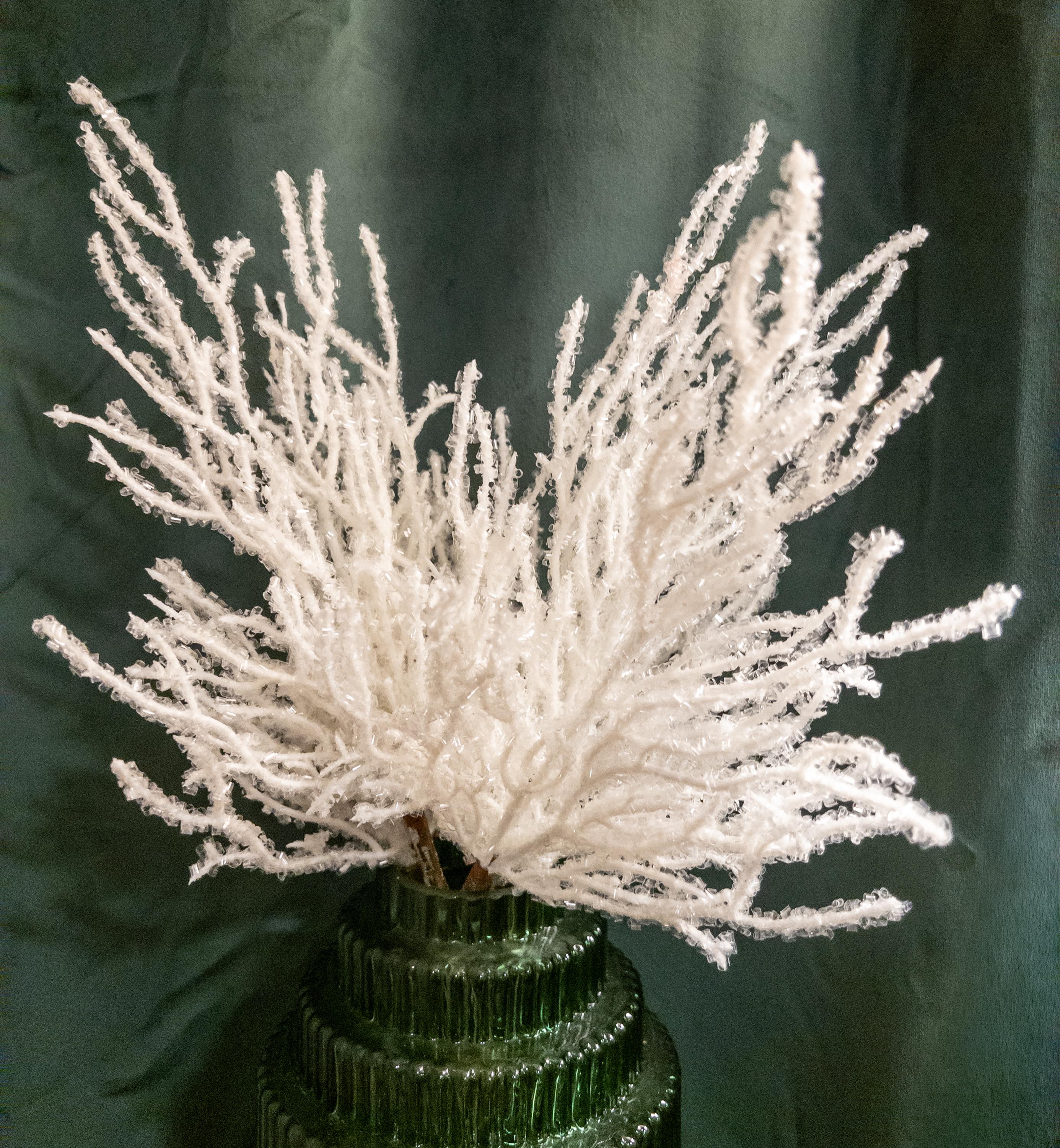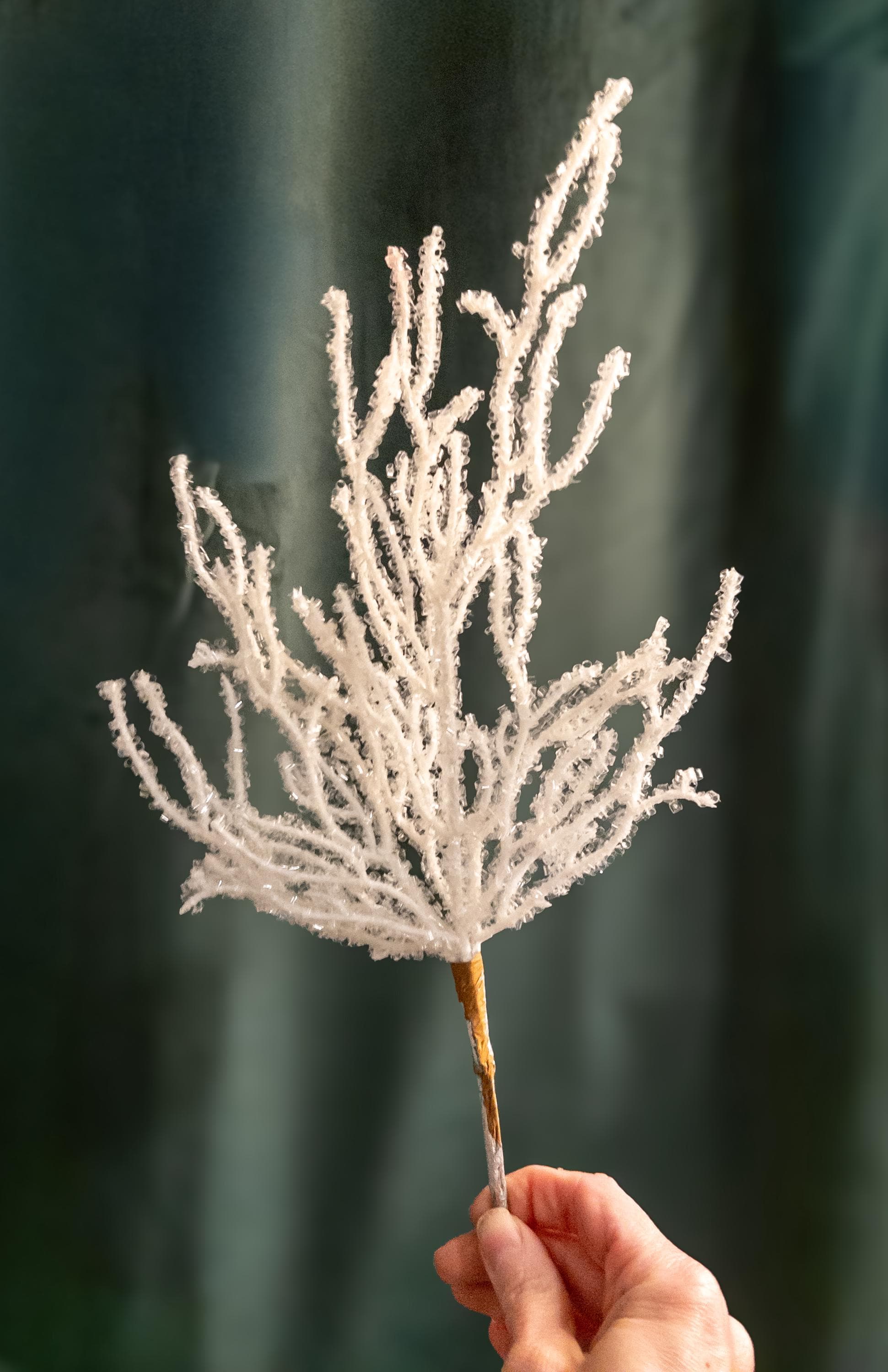 Bring a touch of winter magic to your home with this Iced Snowflake Coral Branch Pick — a stunning faux branch shimmering with frosted crystal-like detail. Measuring approximately 16½ inches long by 9 inches wide, each branch mimics the delicate, branching shape of coral dusted in ice, creating a glistening, snow-covered effect perfect for holiday decor.
