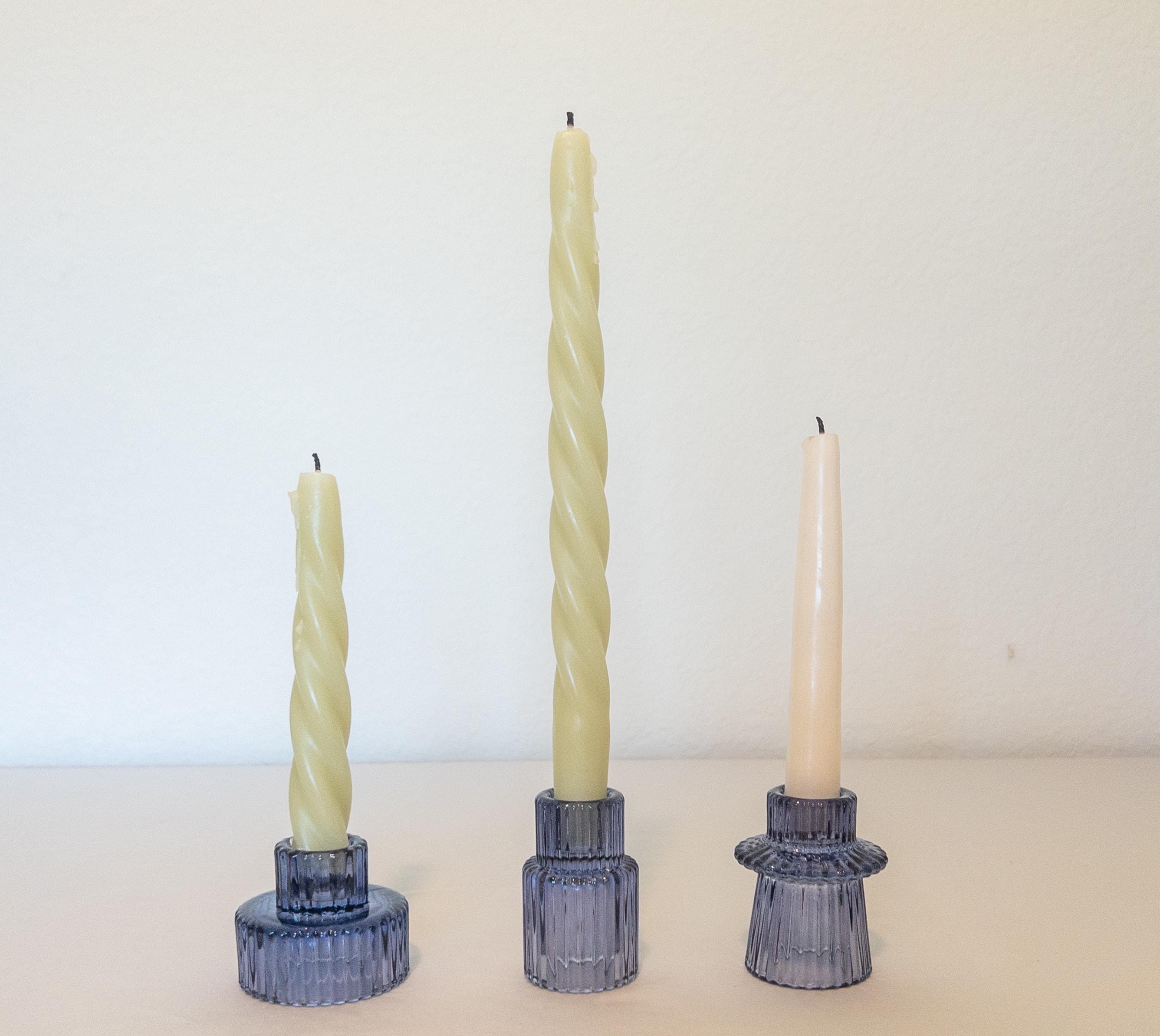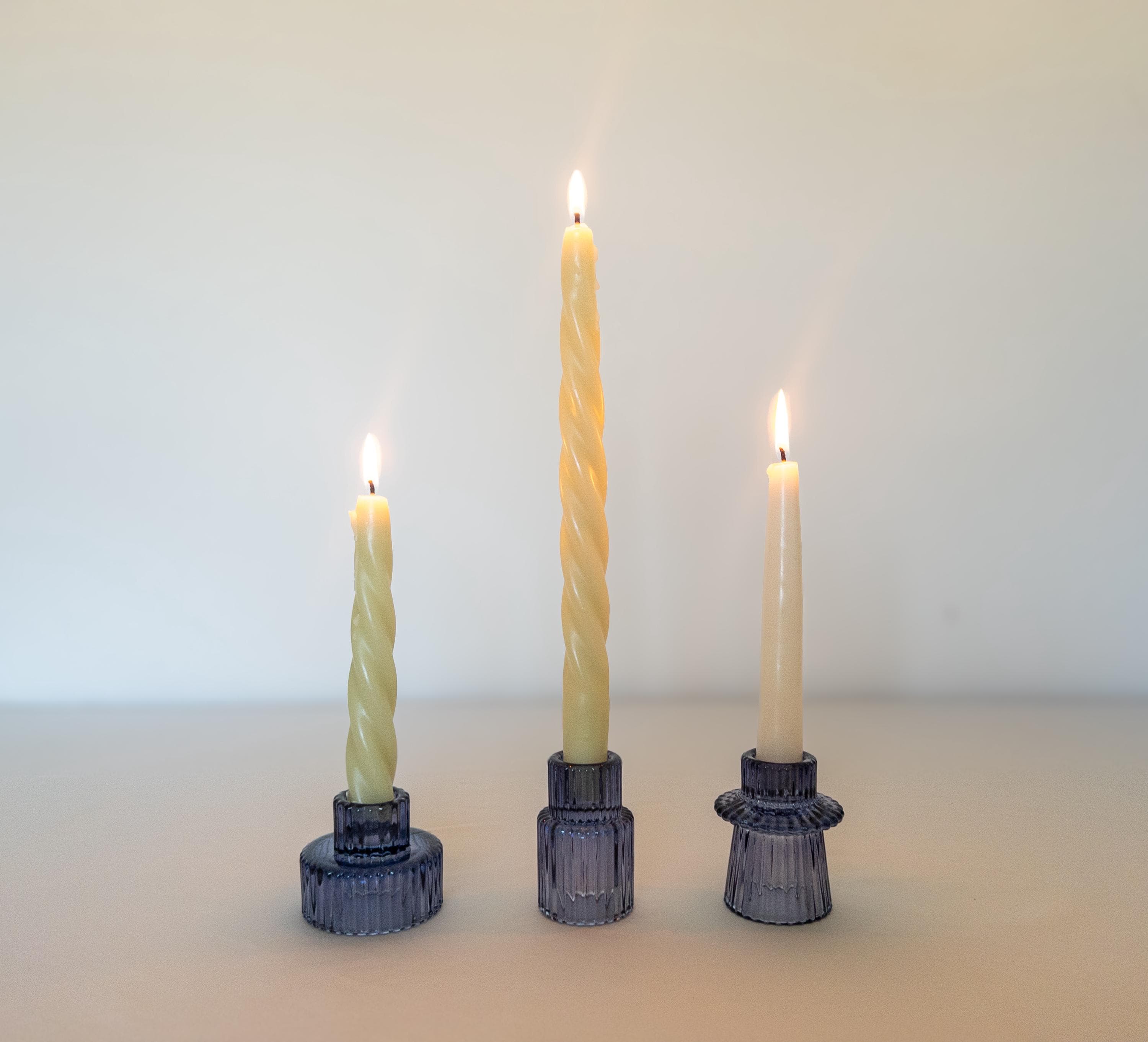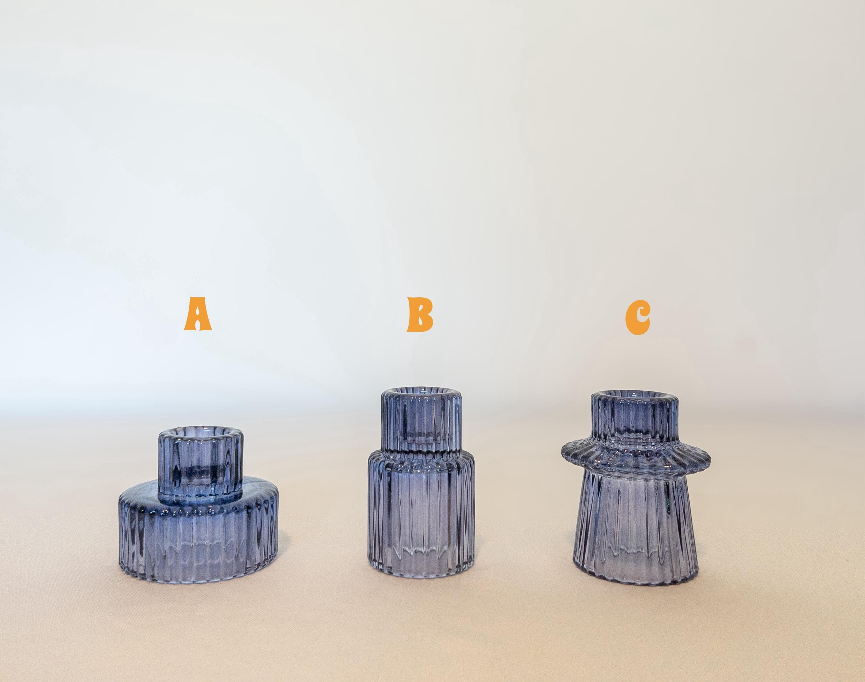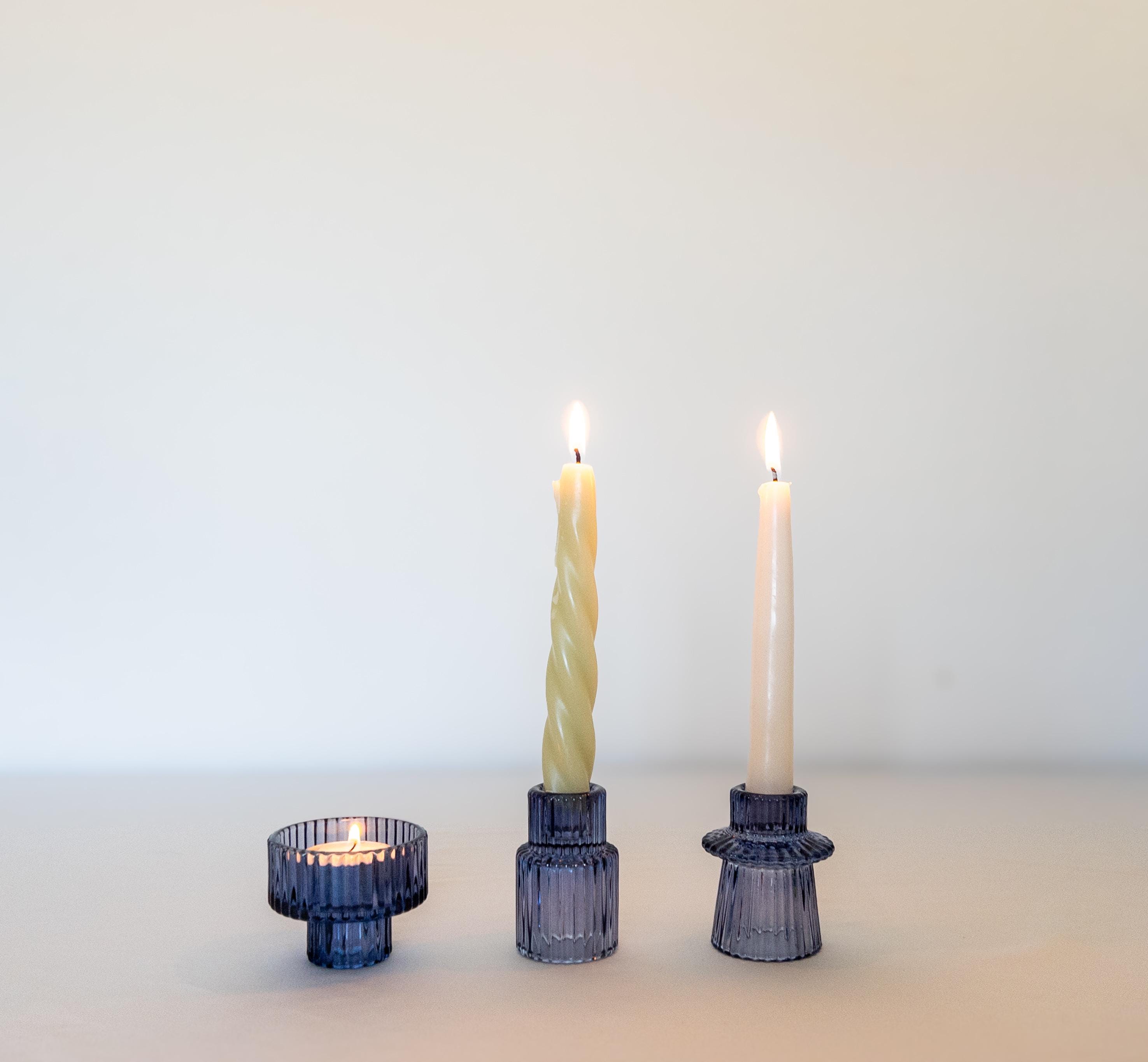 Deep Blue Glass Candlestick Holders: Vintage-Inspired Ribbed Glass