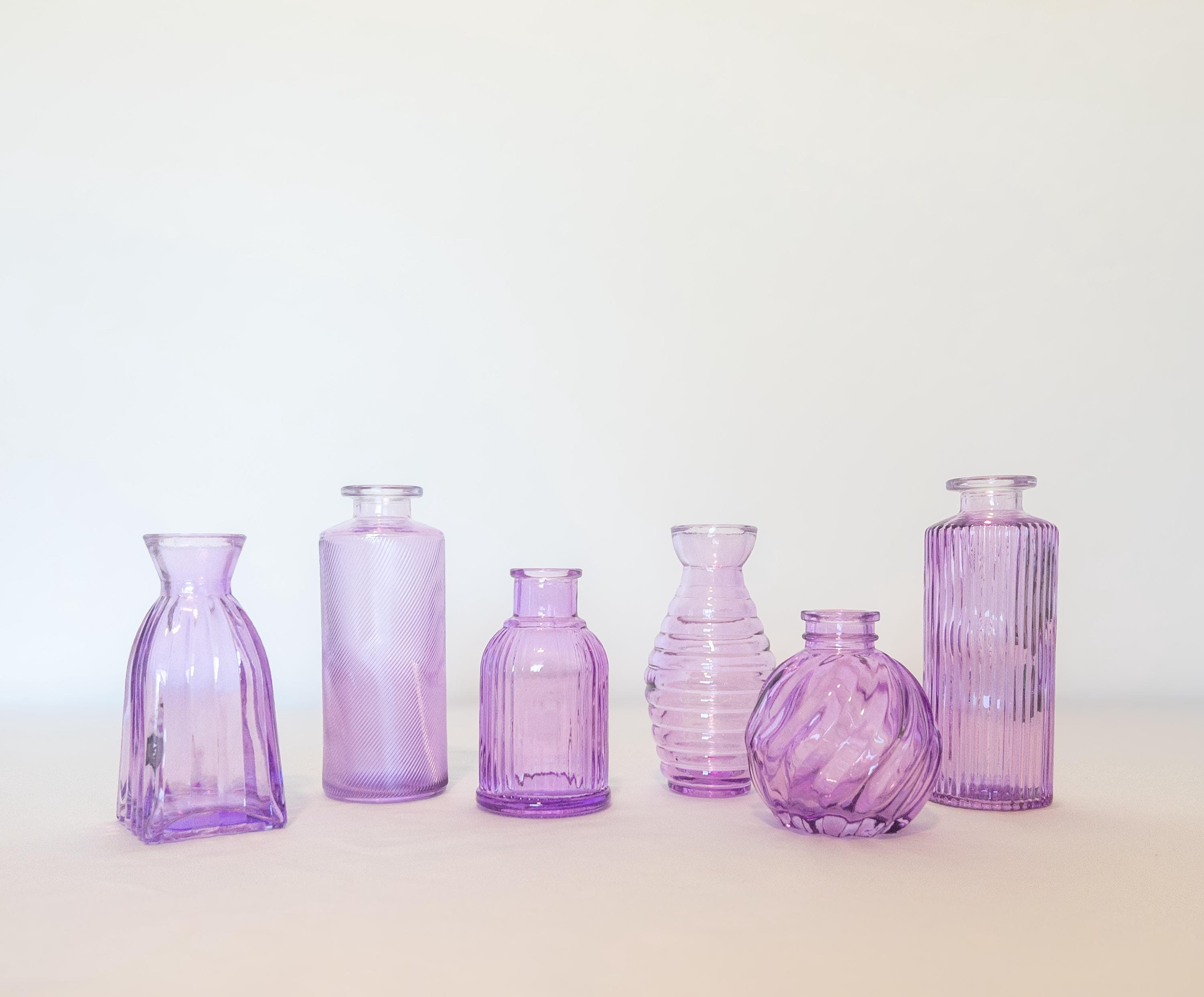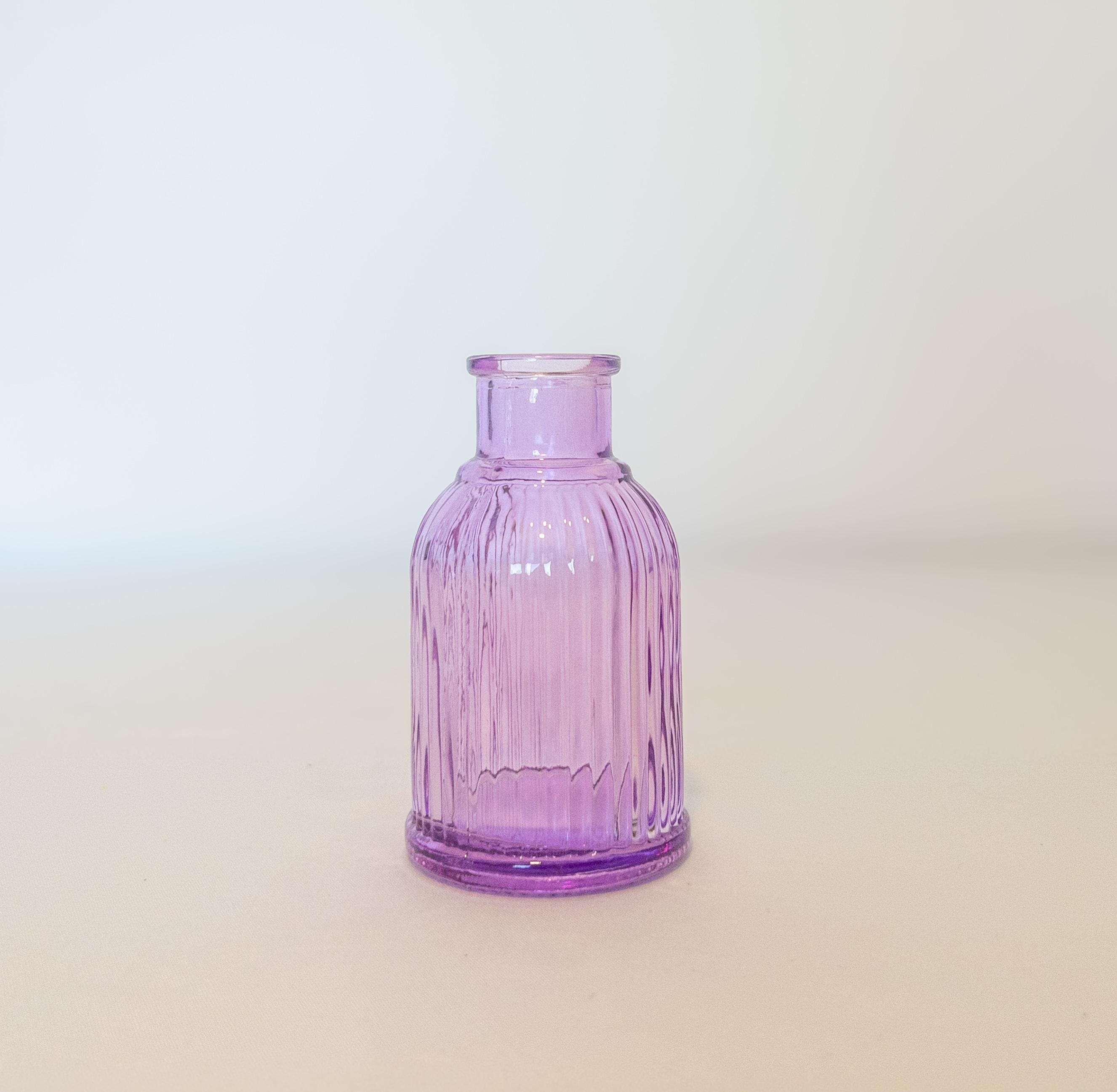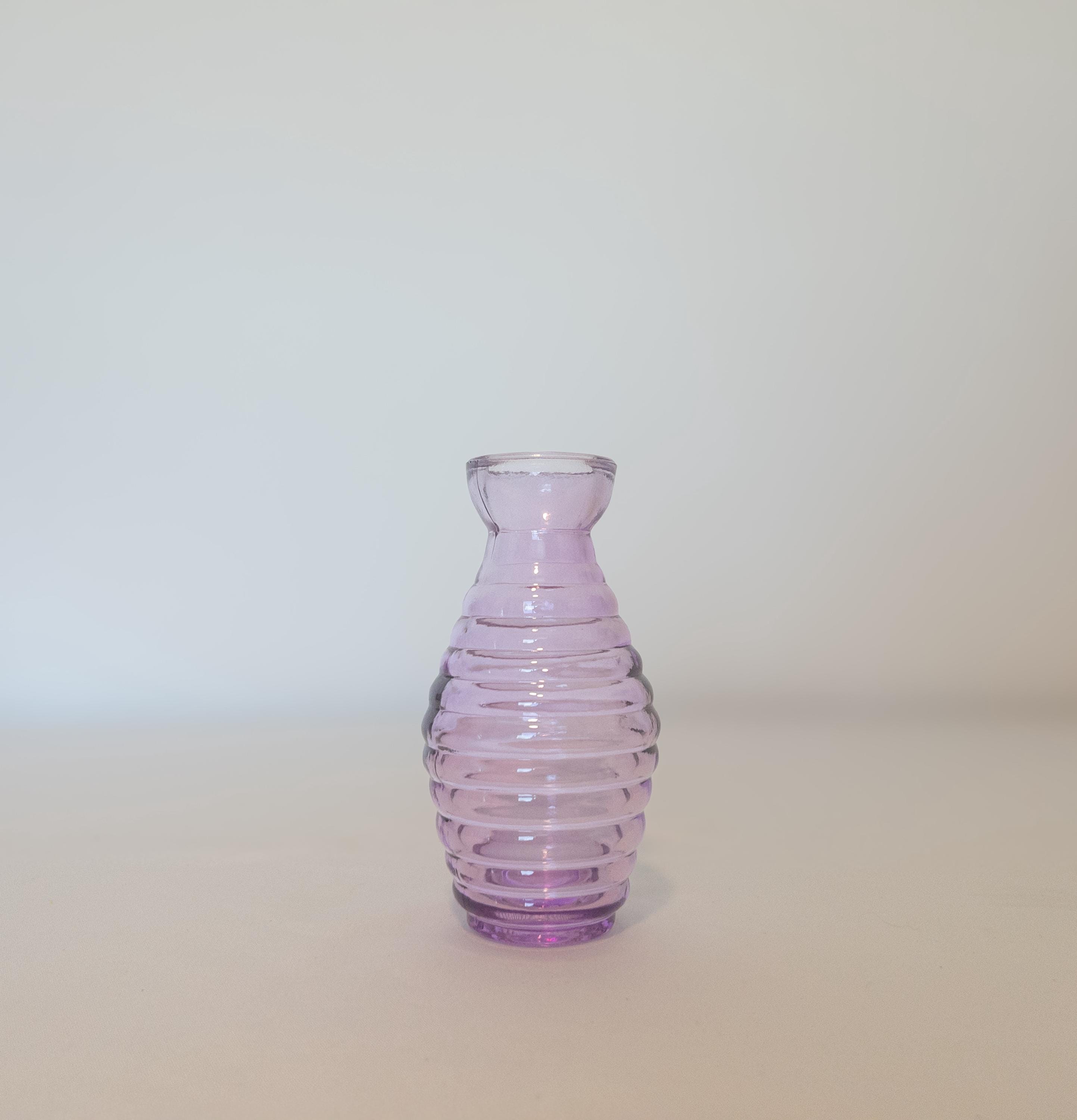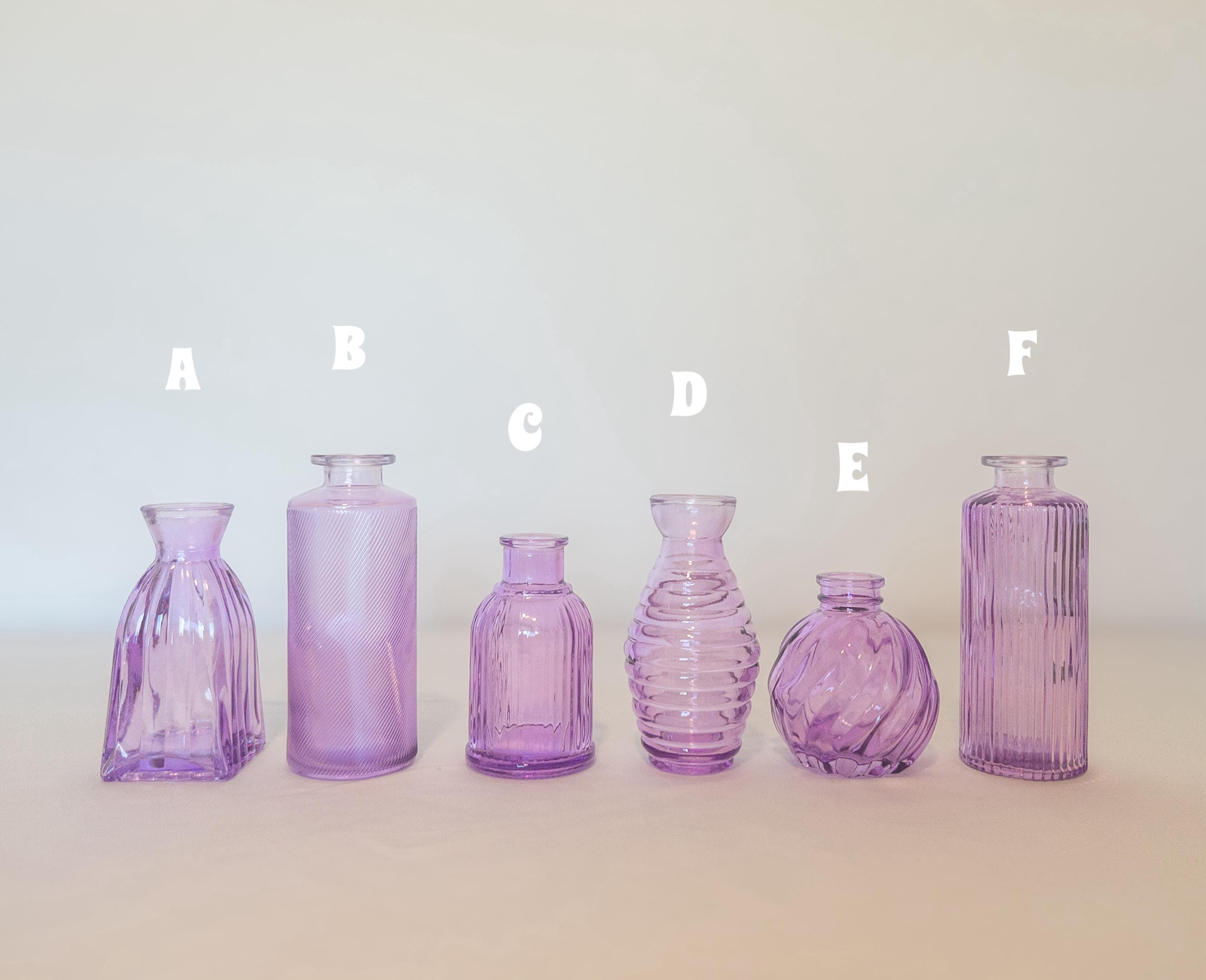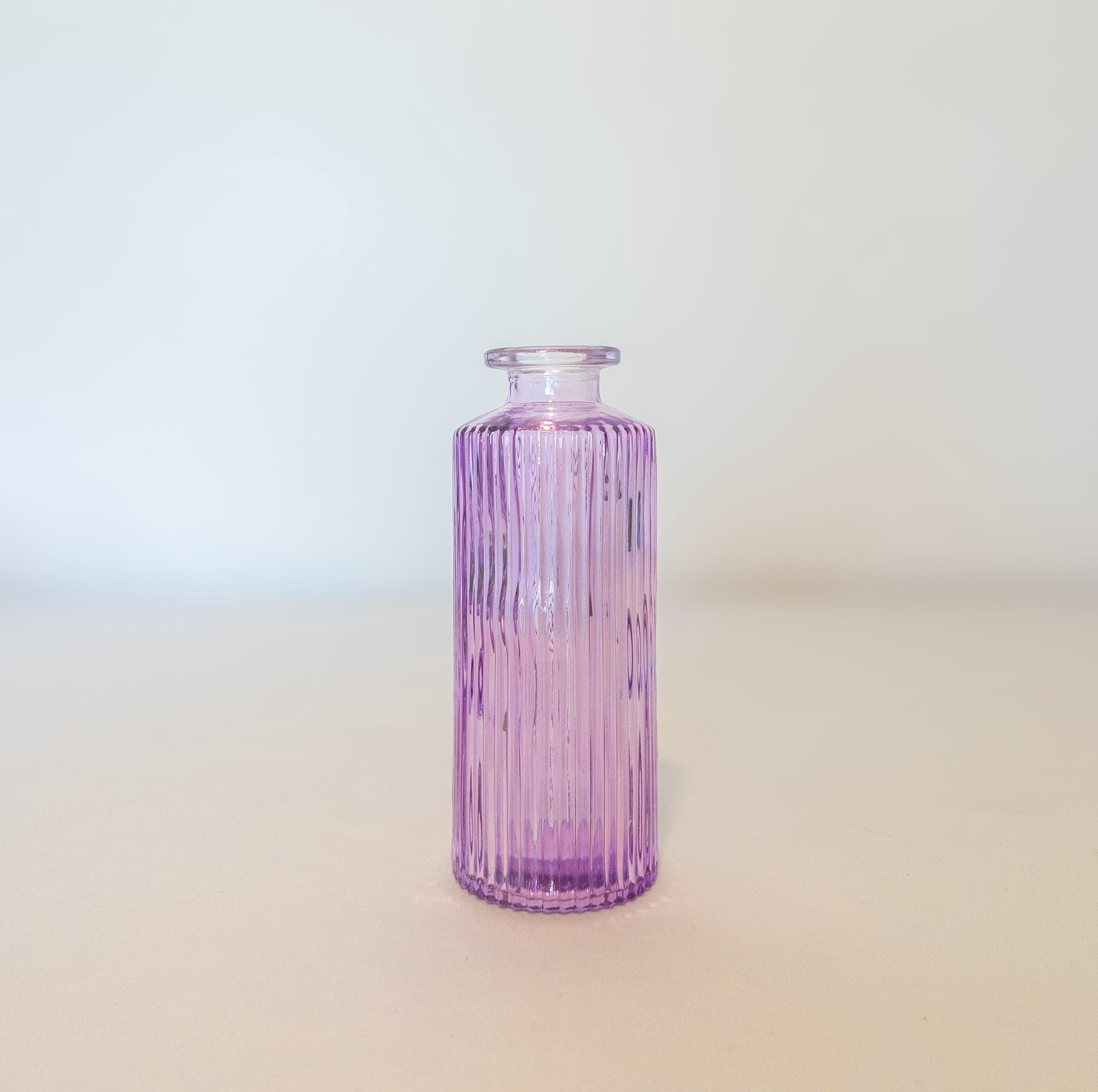 Lavender Purple Glass Bud Vases: Vintage-Inspired, Ribbed & Sculptural