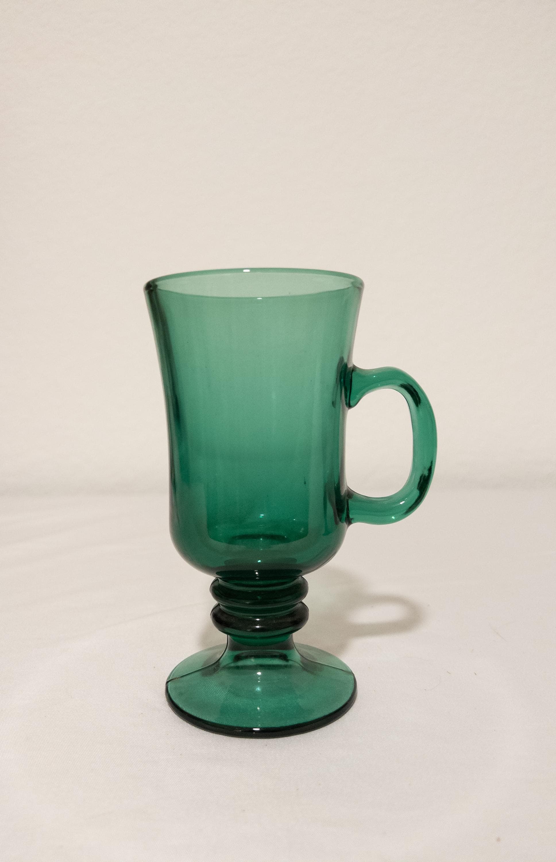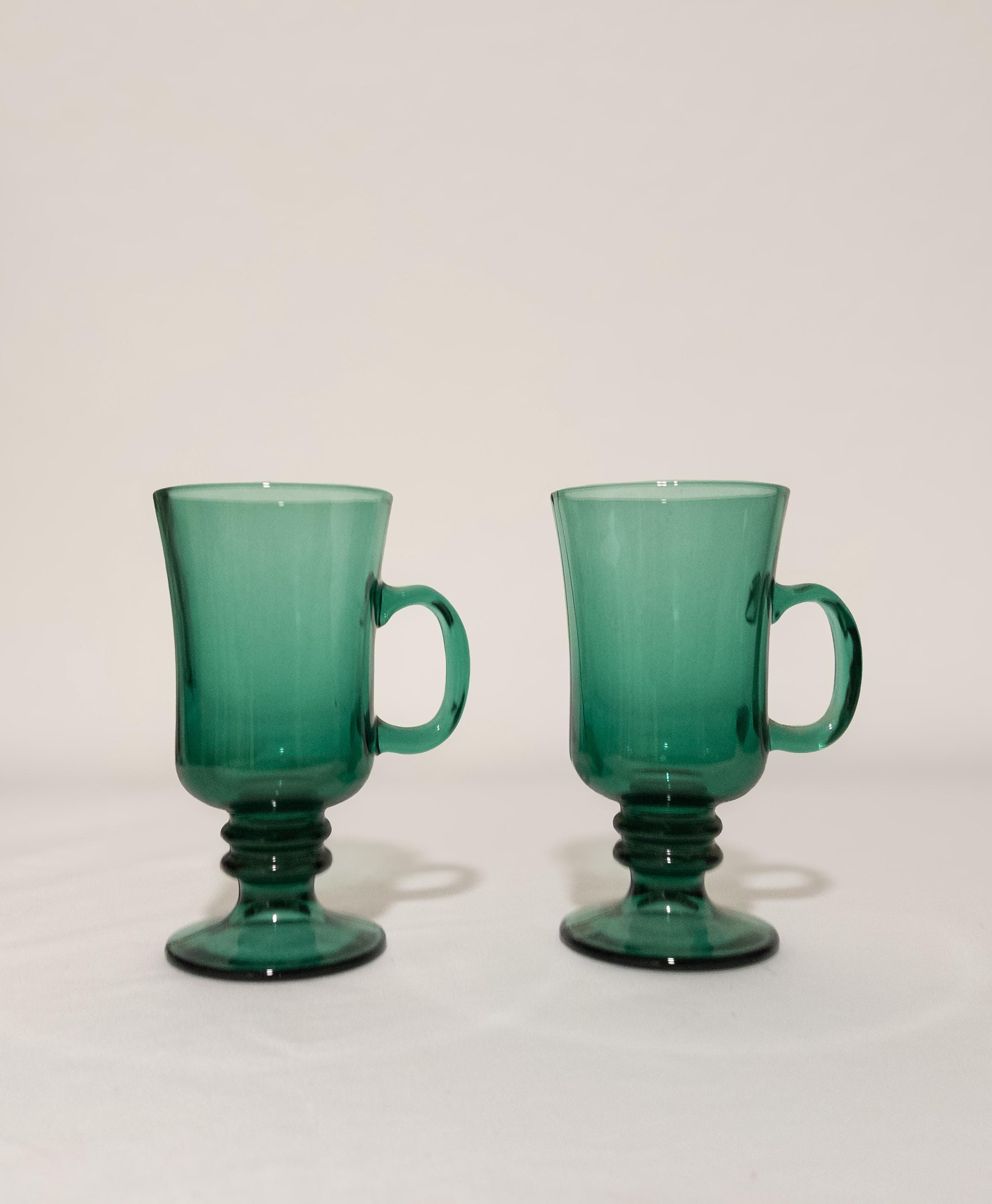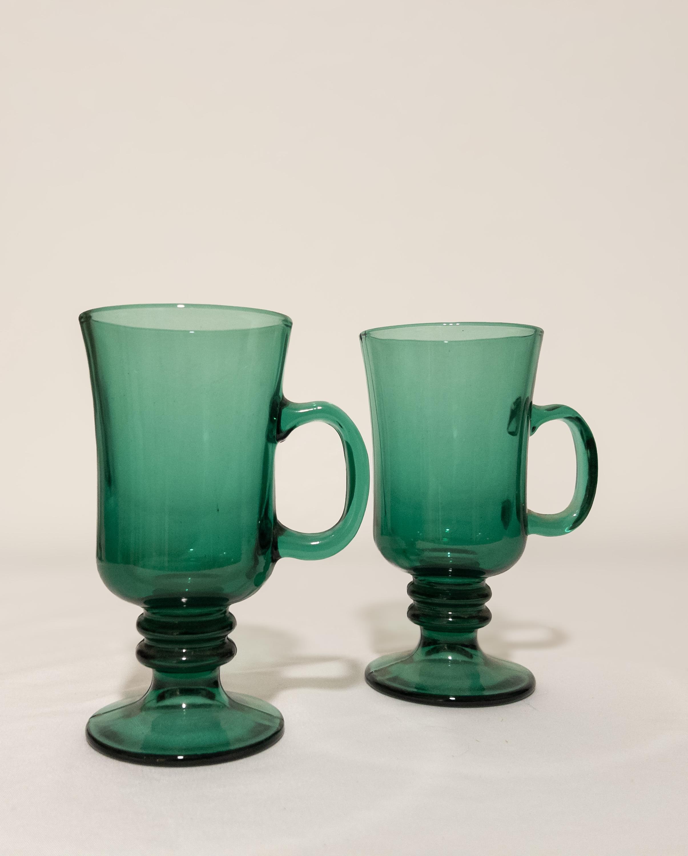 Perfect for serving Irish coffee, cappuccinos, hot cocoa, or even a festive dessert drink, these translucent green beauties feel both classic and unique — a stunning addition to any vintage glassware collection.