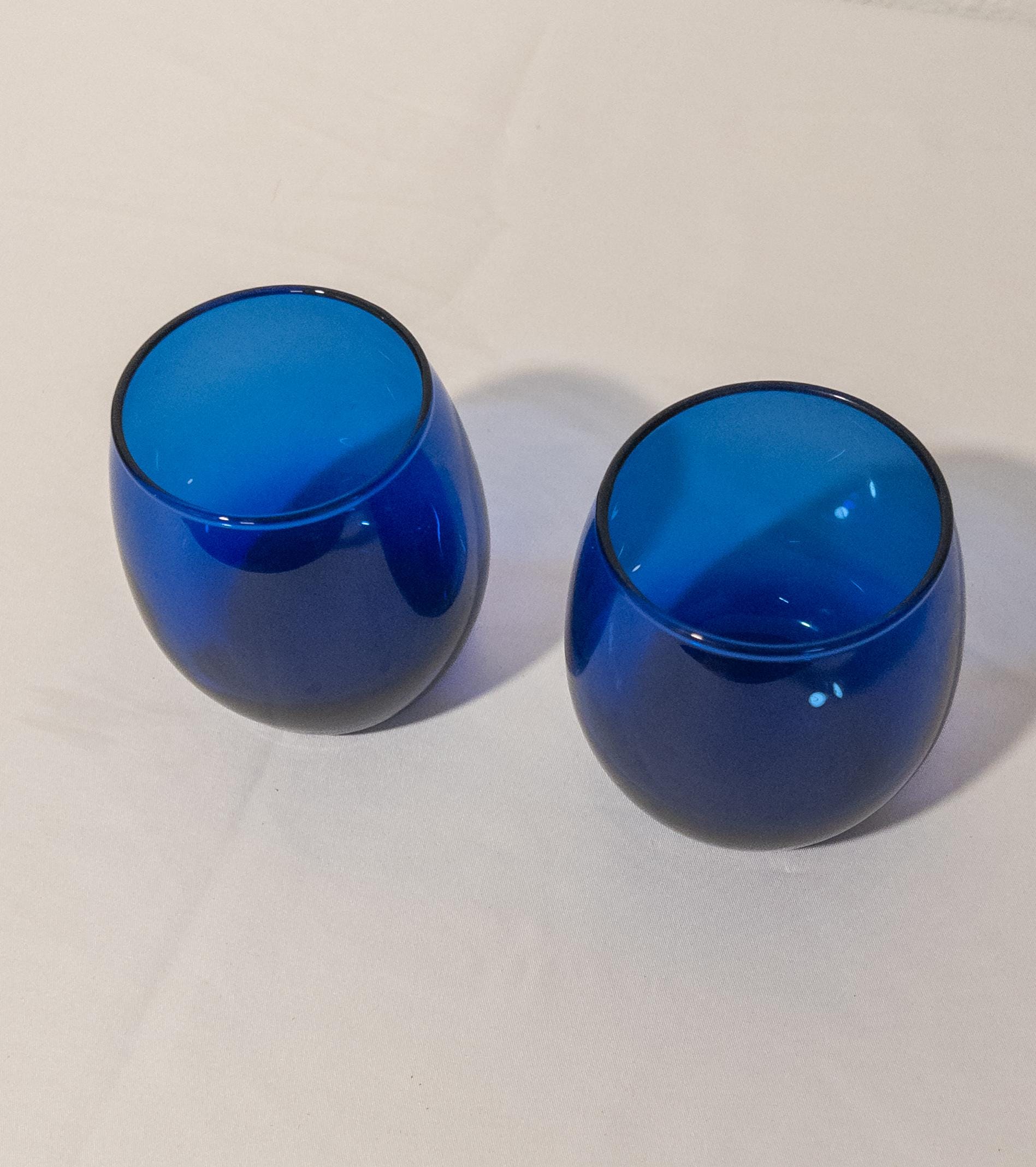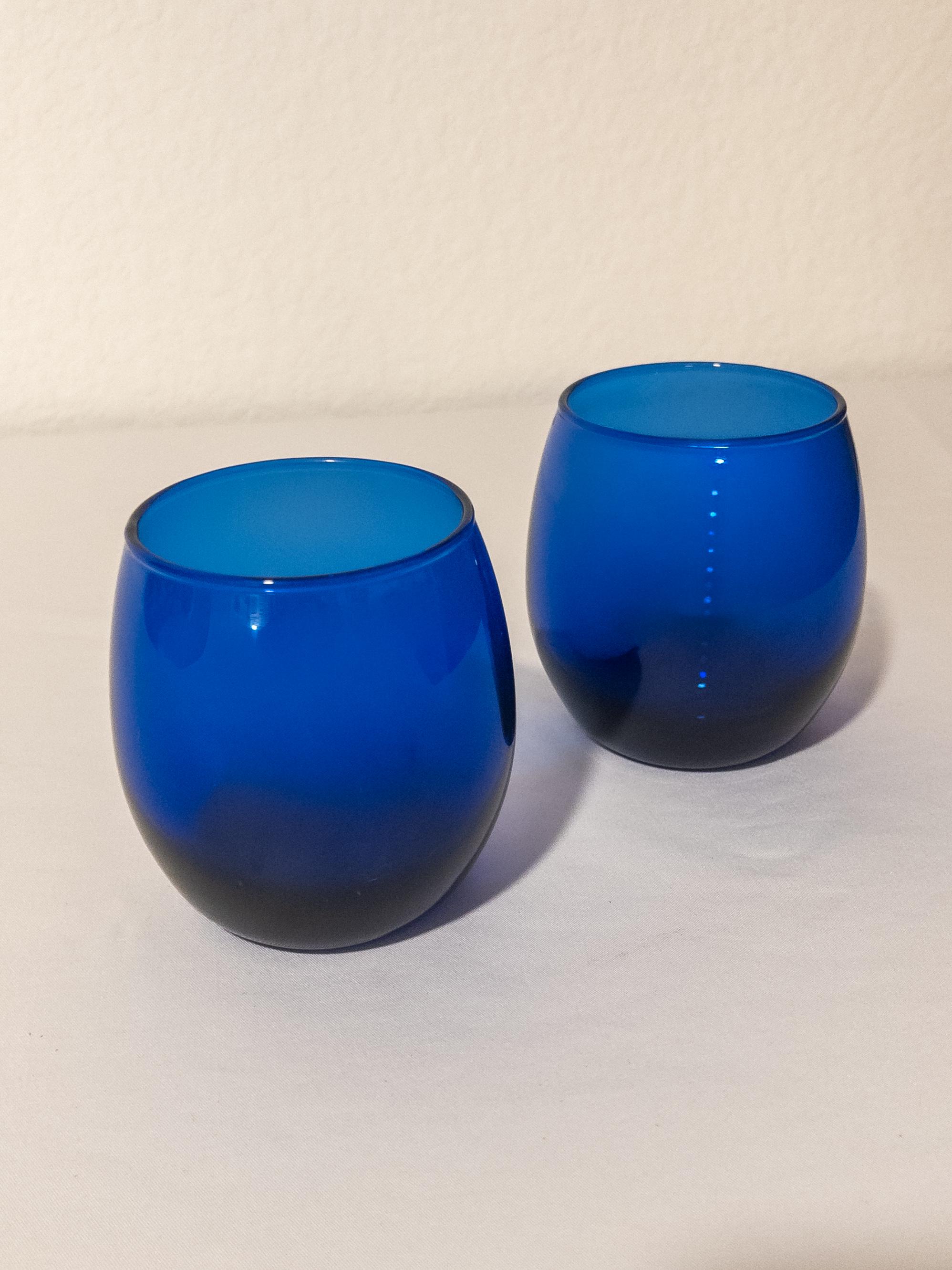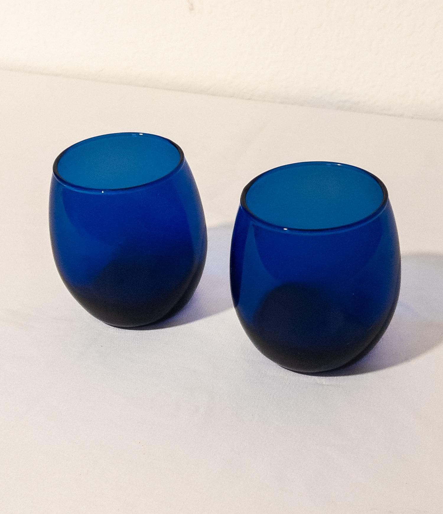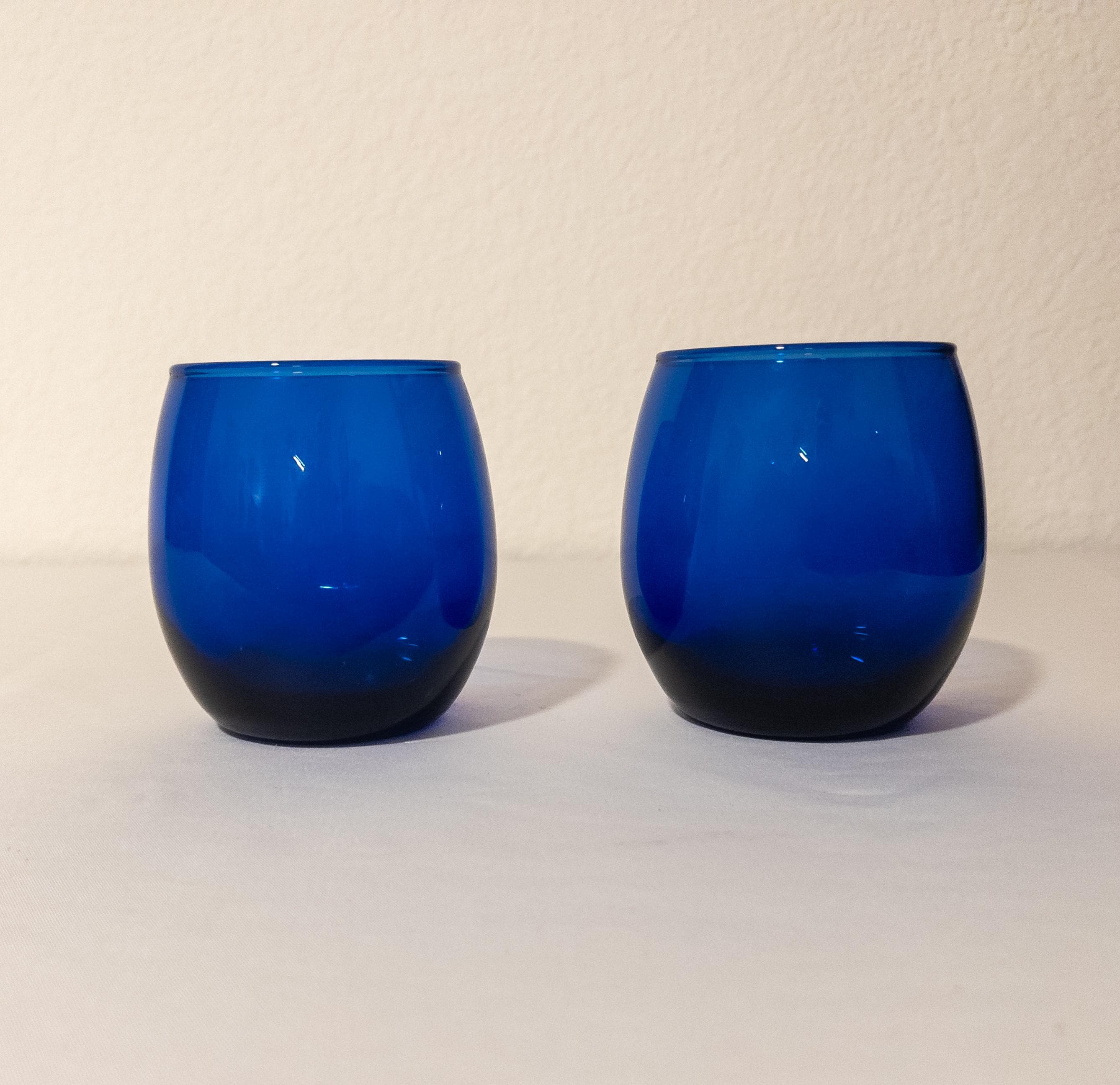 Rich, moody, and effortlessly chic — these vintage cobalt blue stemless wine glasses are little jewels for your table.