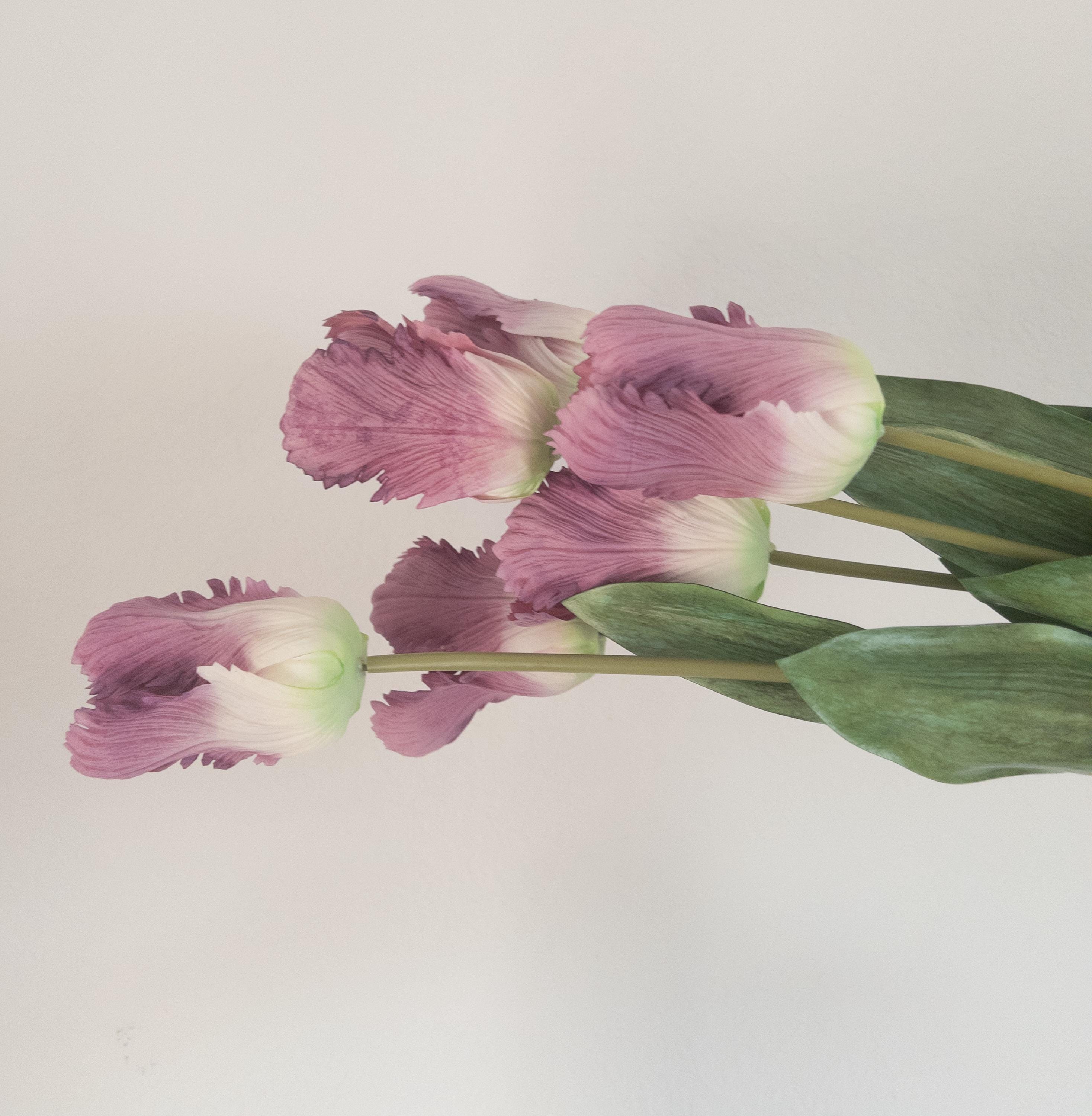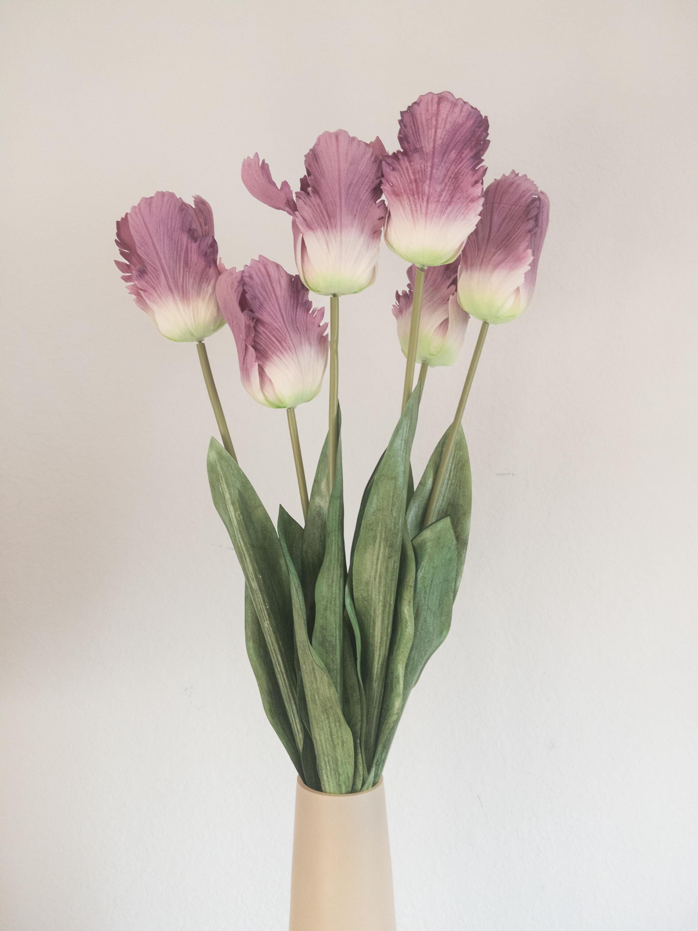 Moody, romantic, and beautifully dramatic — these lavender real touch parrot tulips are designed to look freshly gathered from a European garden.