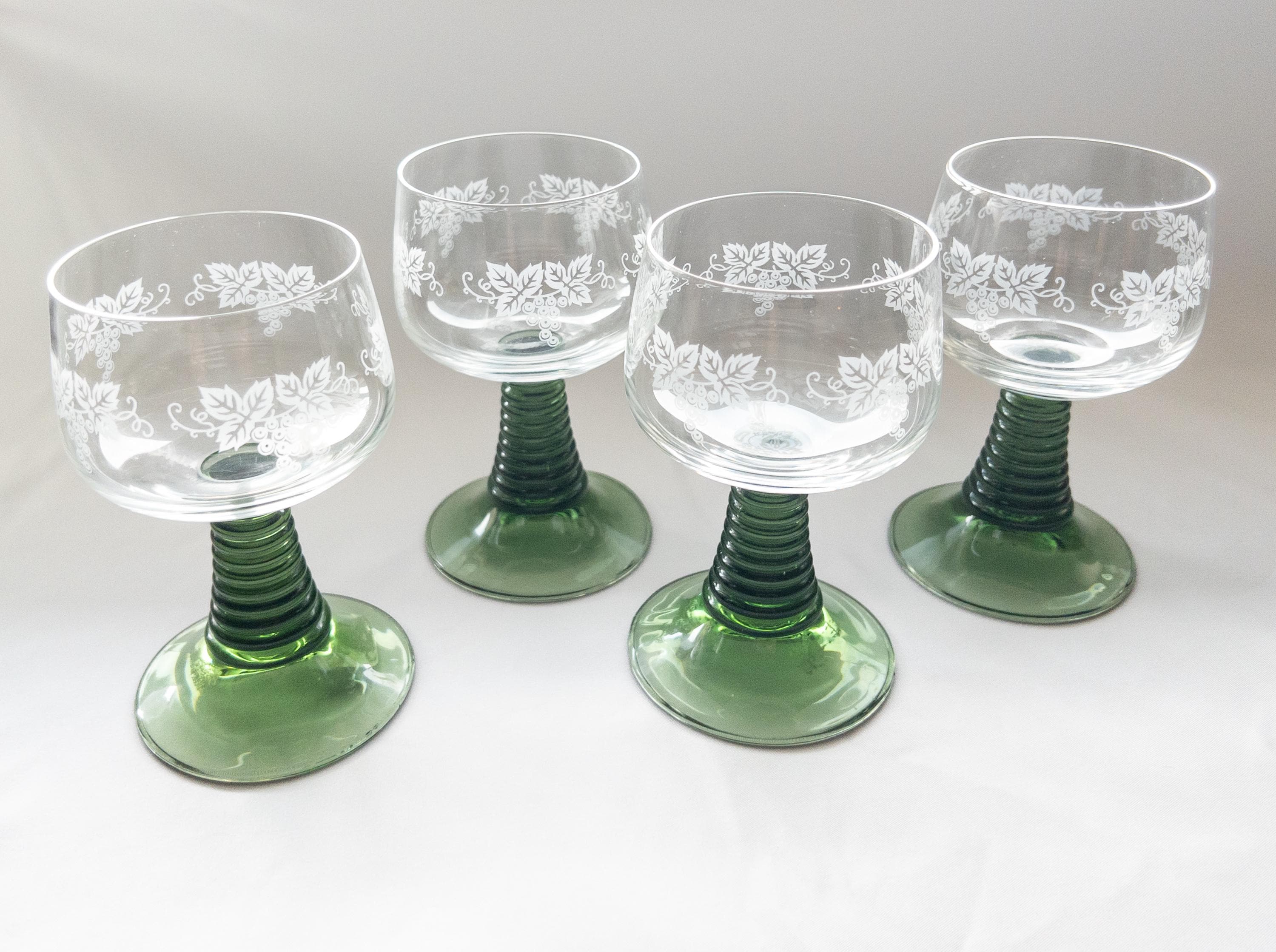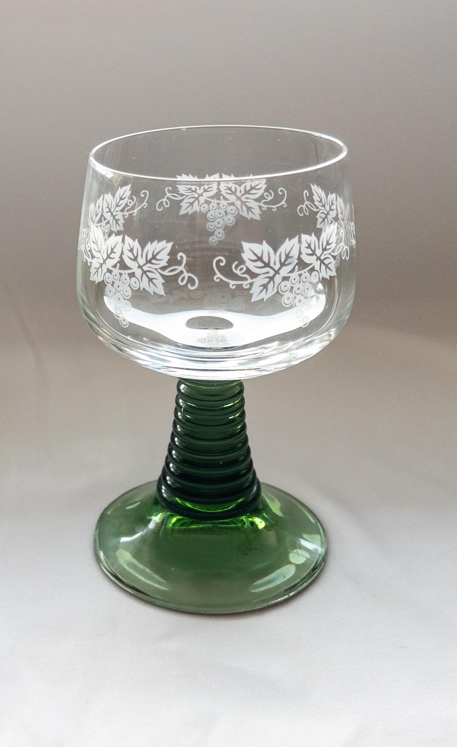 This vintage Luminarc Roemer wine glass collection features: