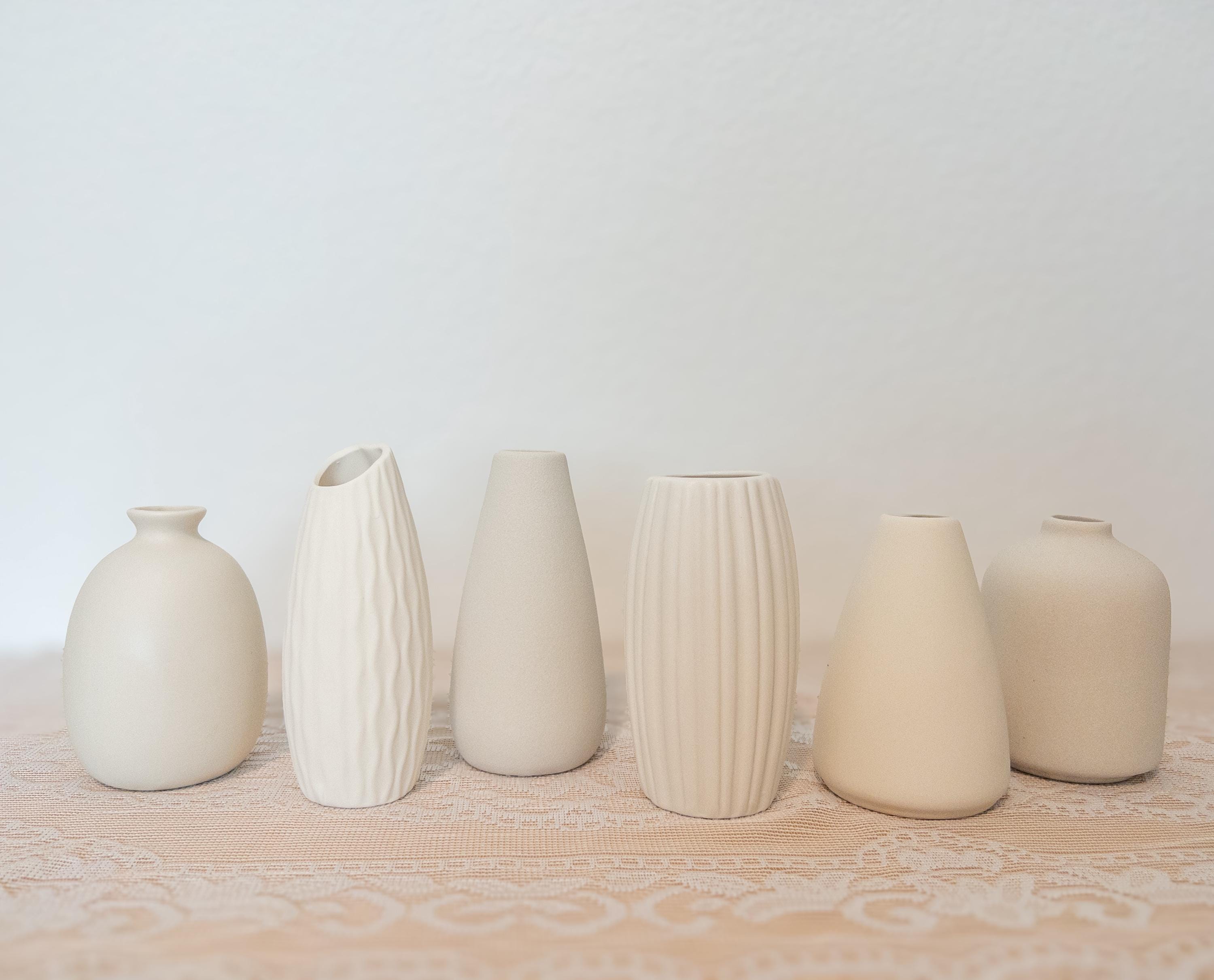 A curated collection of petite white ceramic bud vases designed for effortless styling.