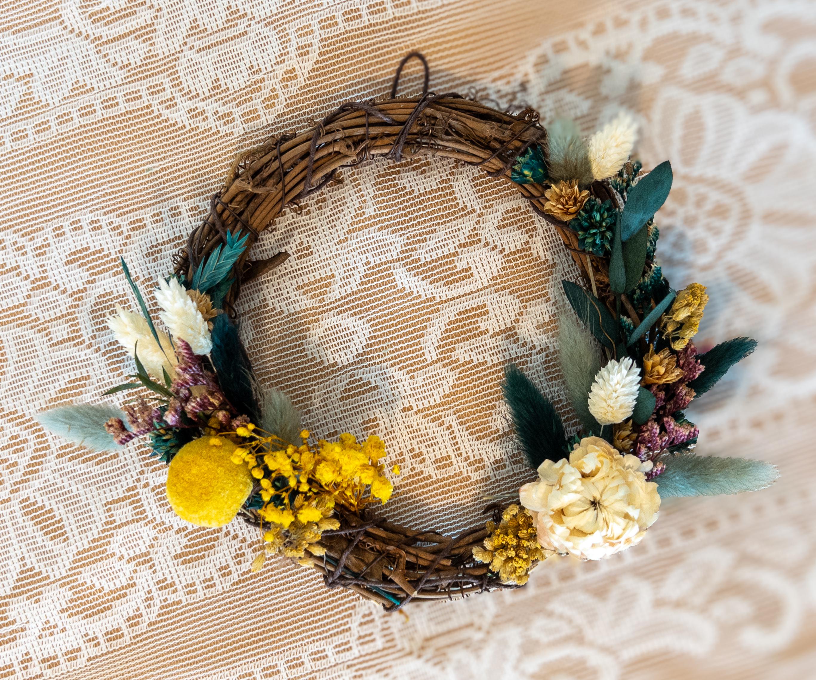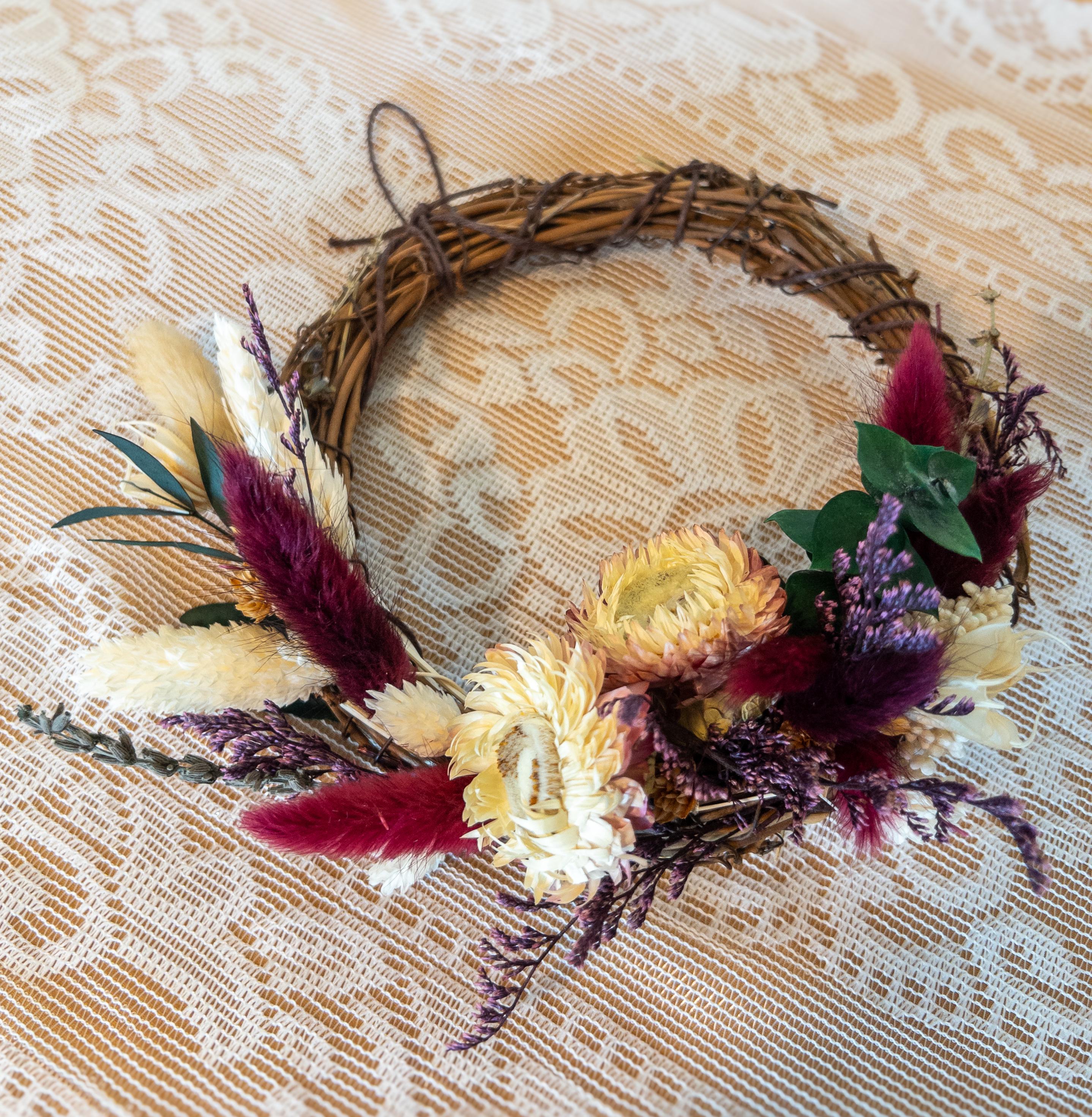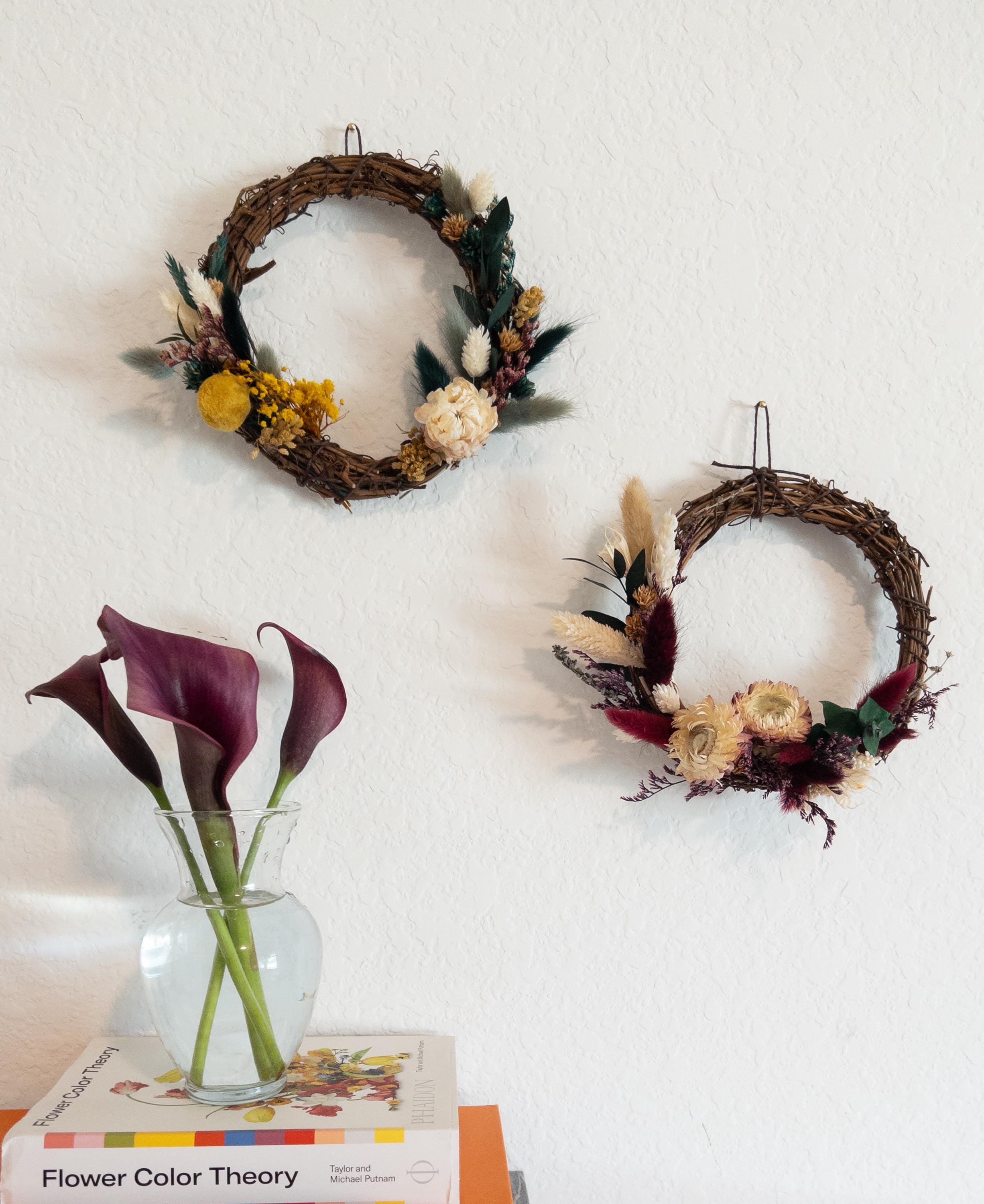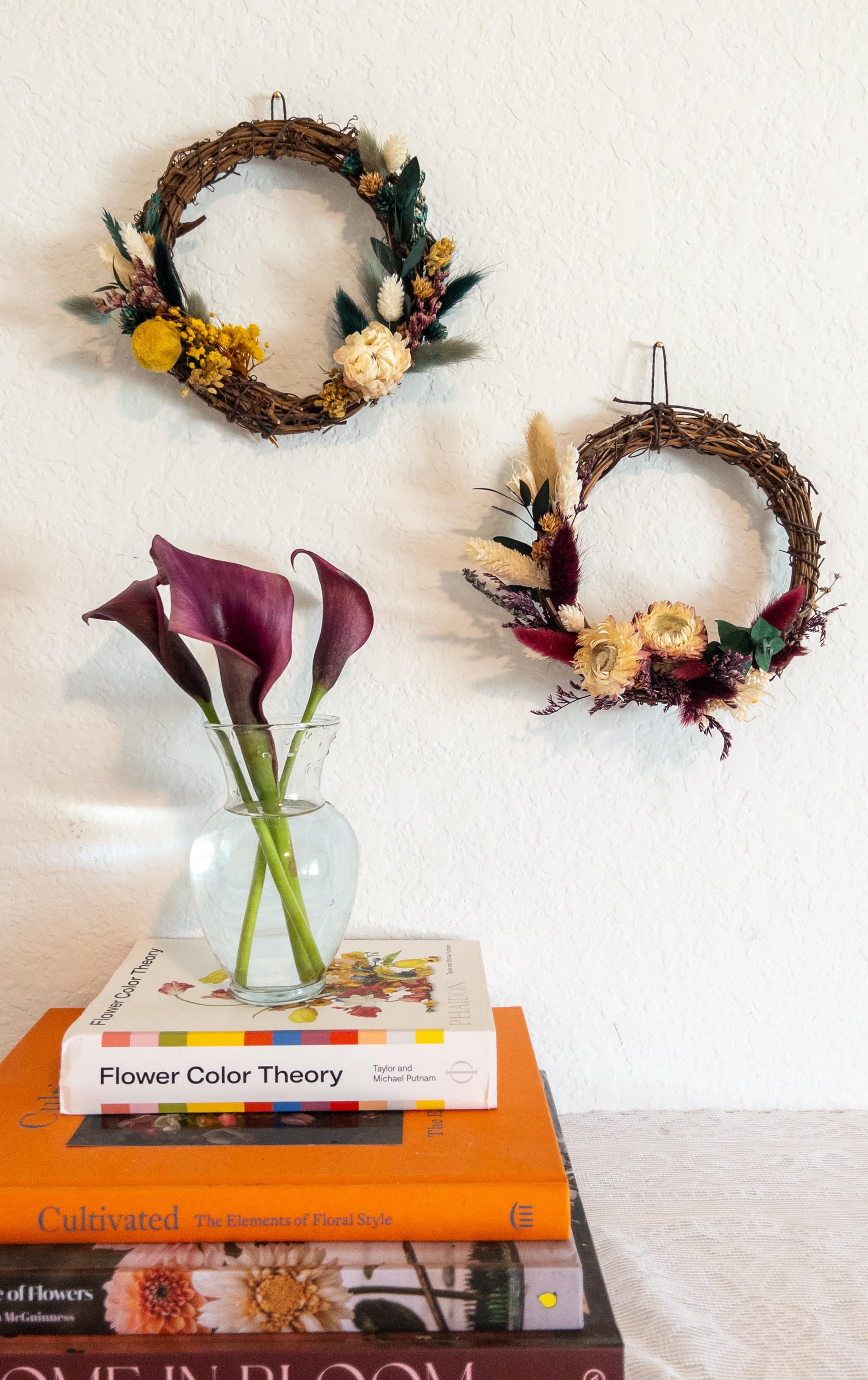 These small wreaths make a lovely accent for gallery walls, shelves, entryways, or seasonal decorating. Their delicate dried florals and natural textures add warmth and charm to any space.