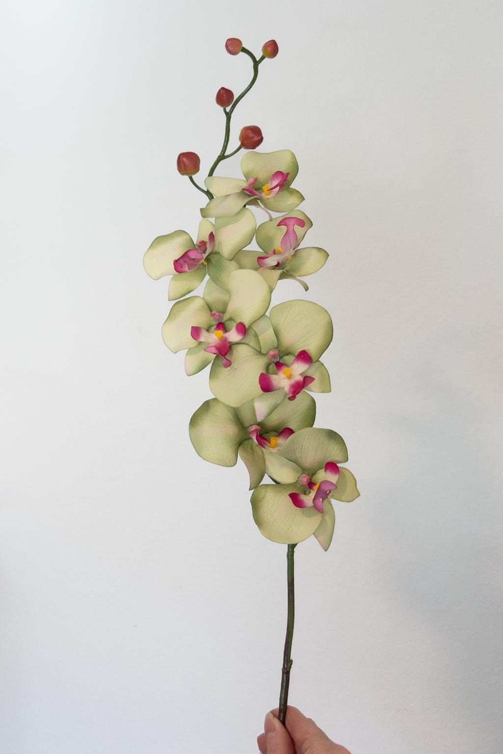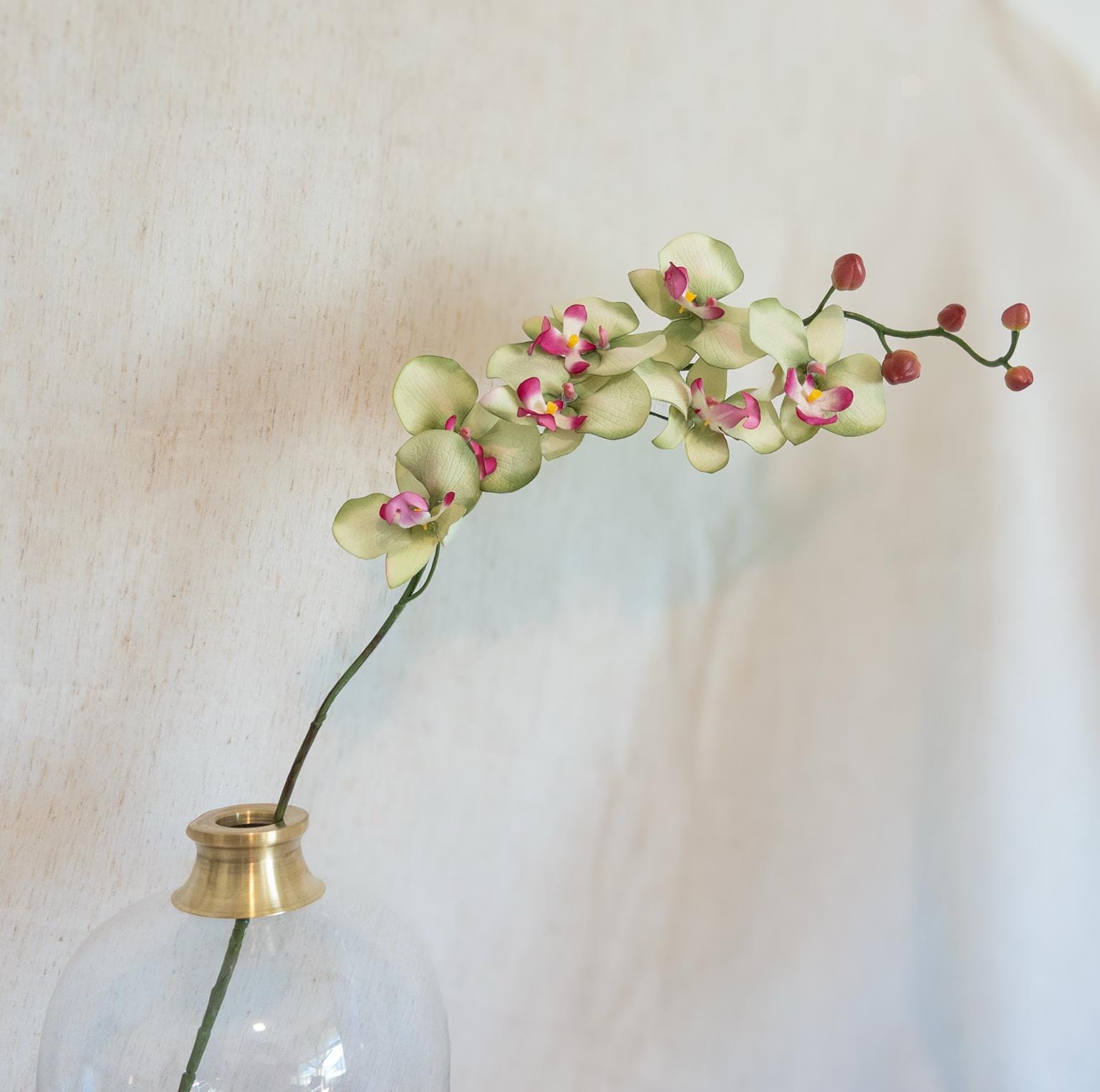 This orchid stem makes a striking statement styled alone in a narrow vase or combined with other florals for a lush, layered arrangement.