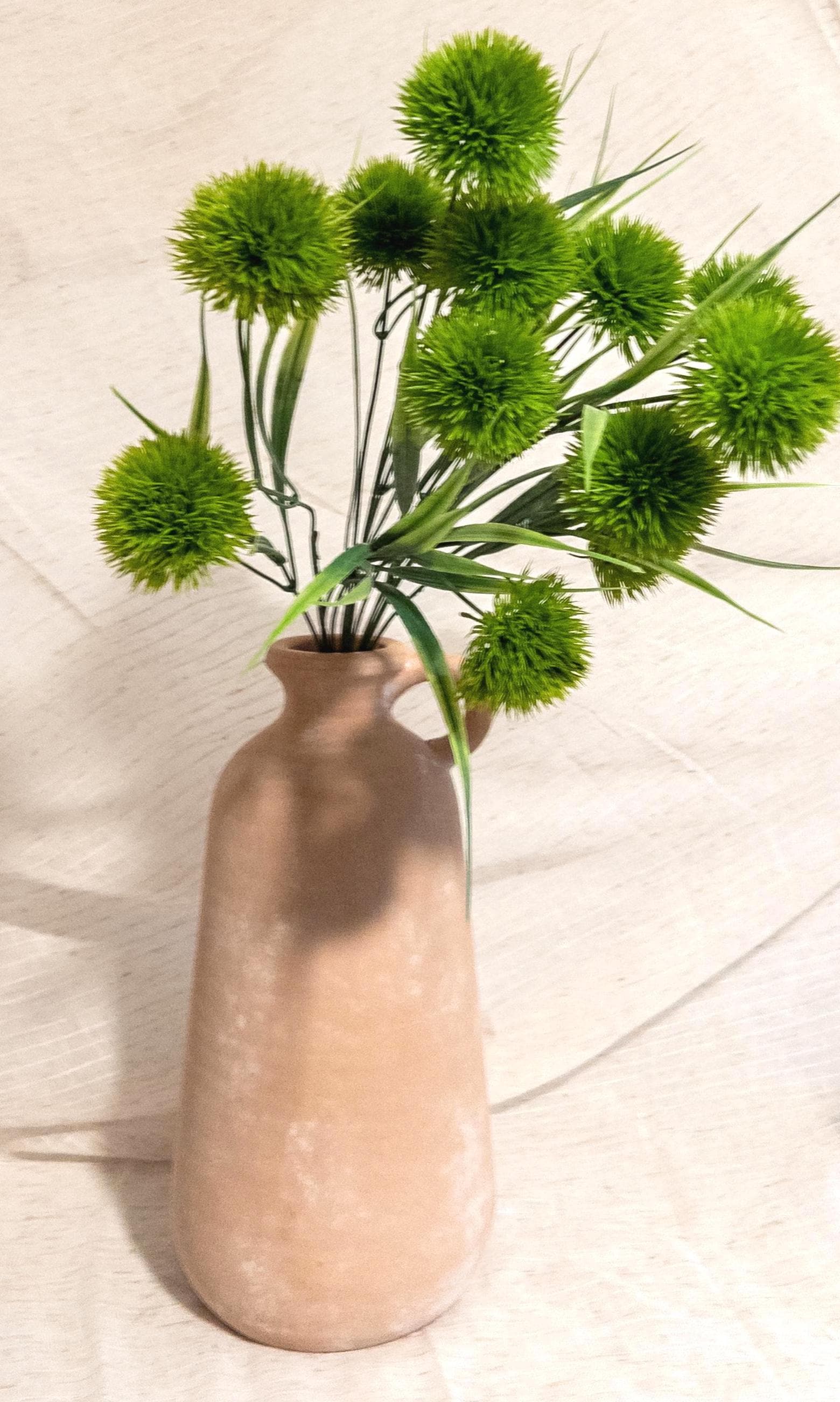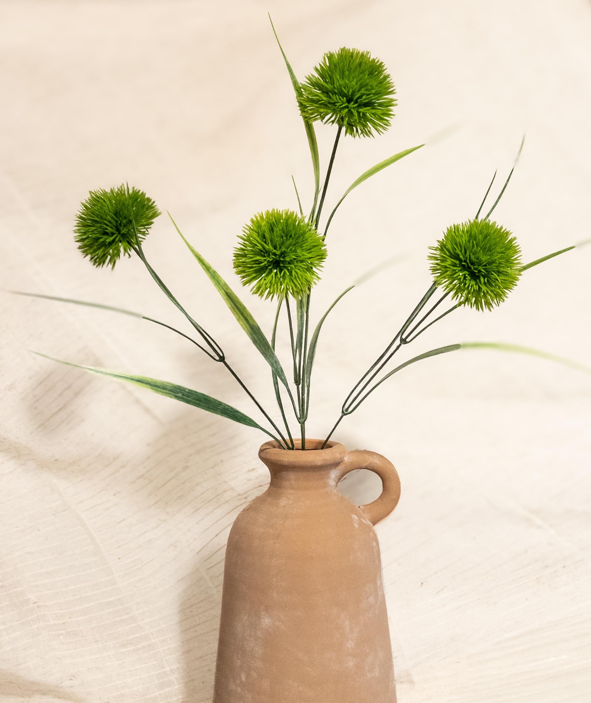 Add playful texture to your floral arrangements with this vibrant green pom pom allium stem. Featuring four fluffy spherical blooms and slender greenery, this stem adds a fresh botanical touch to bouquets, bud vases, and modern floral displays.