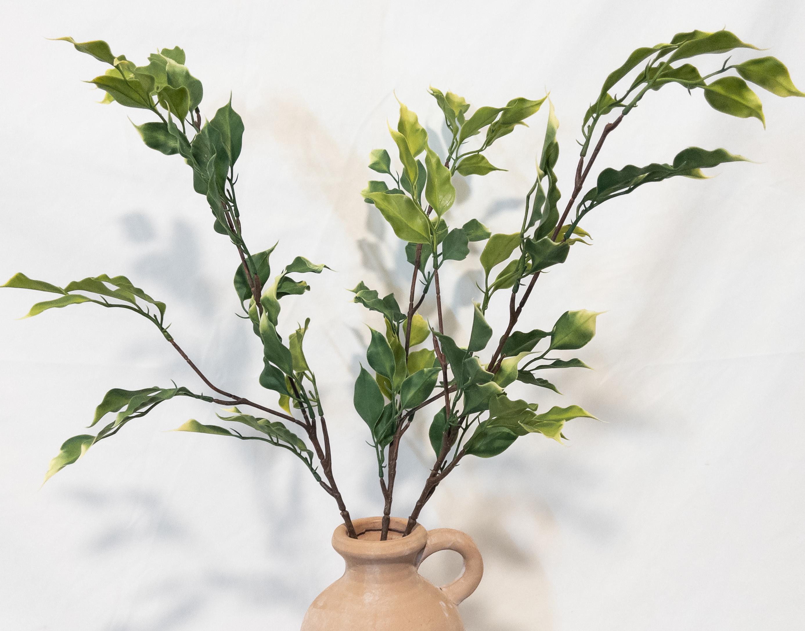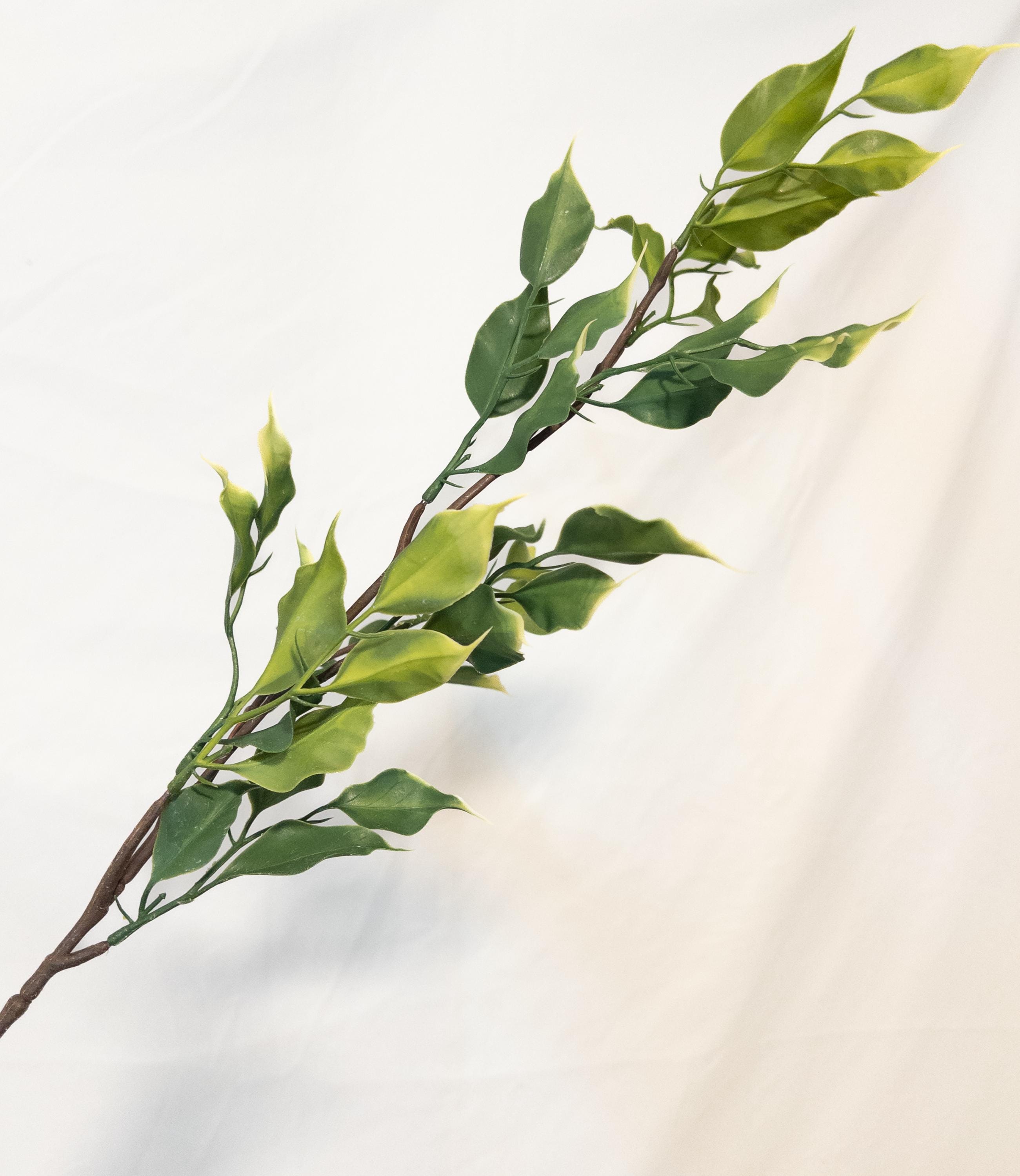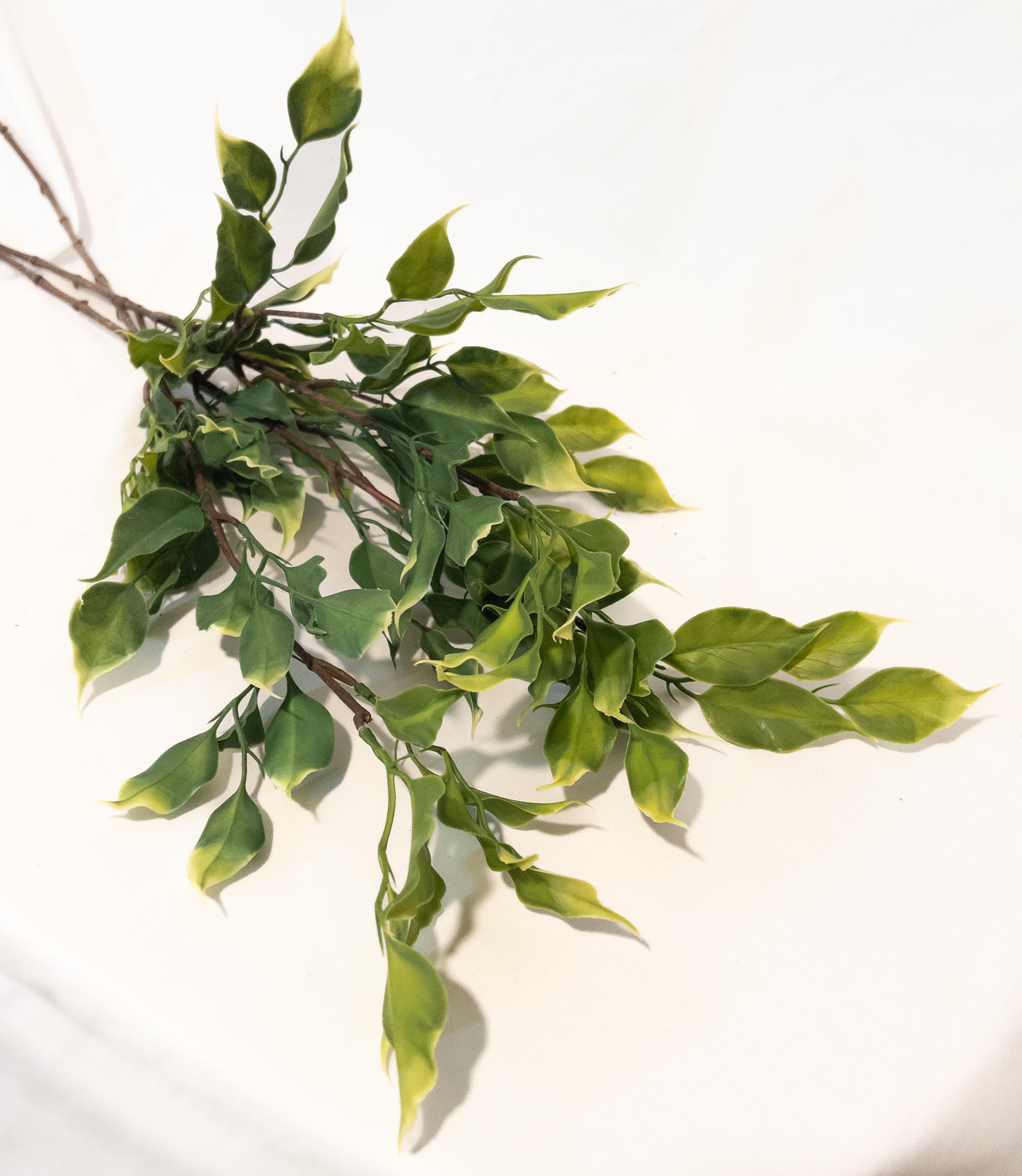 Bring a fresh, sun-washed feel to your space with this variegated ficus stem, featuring soft olive green leaves kissed with chartreuse tips for a natural, airy look.