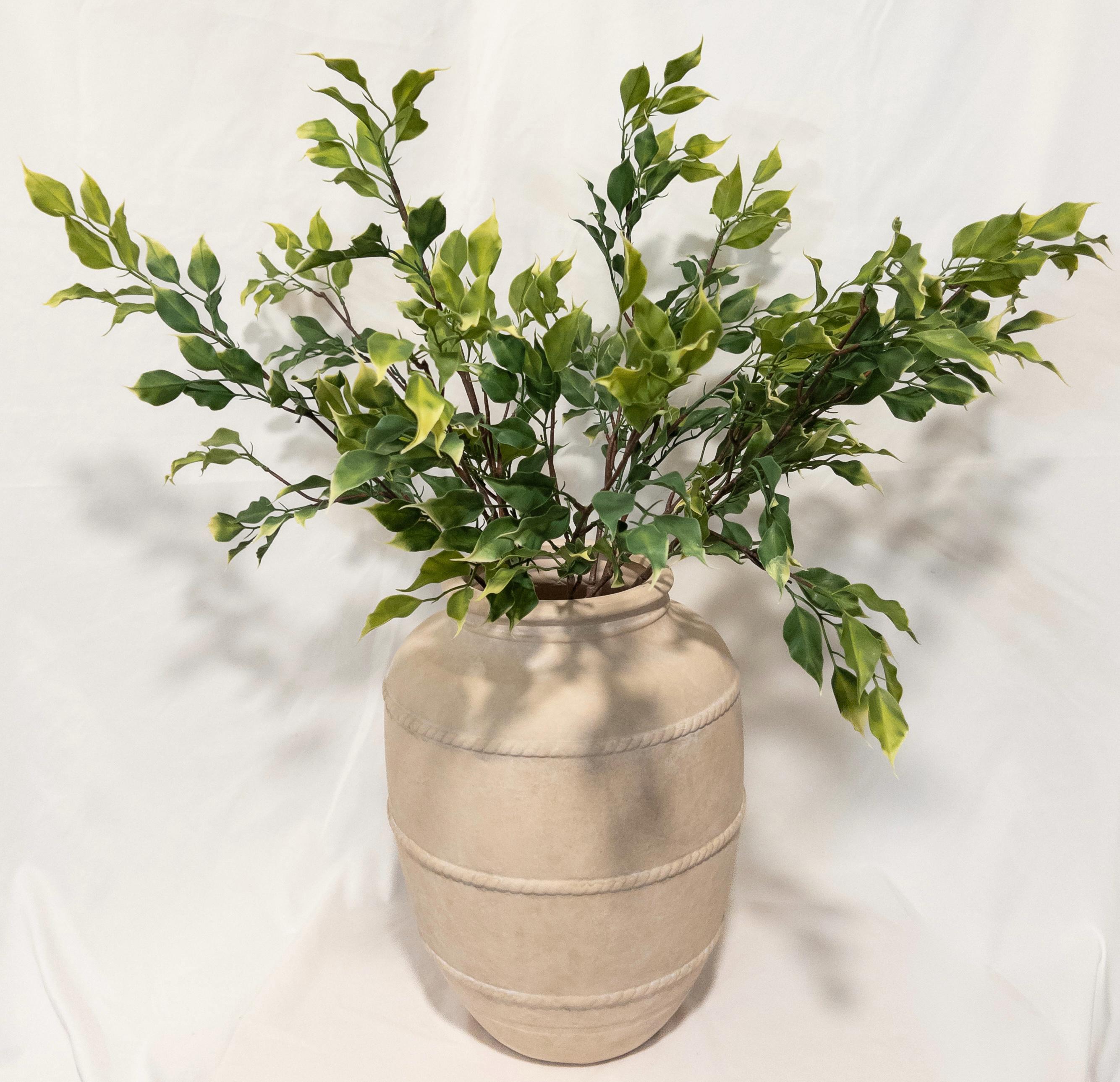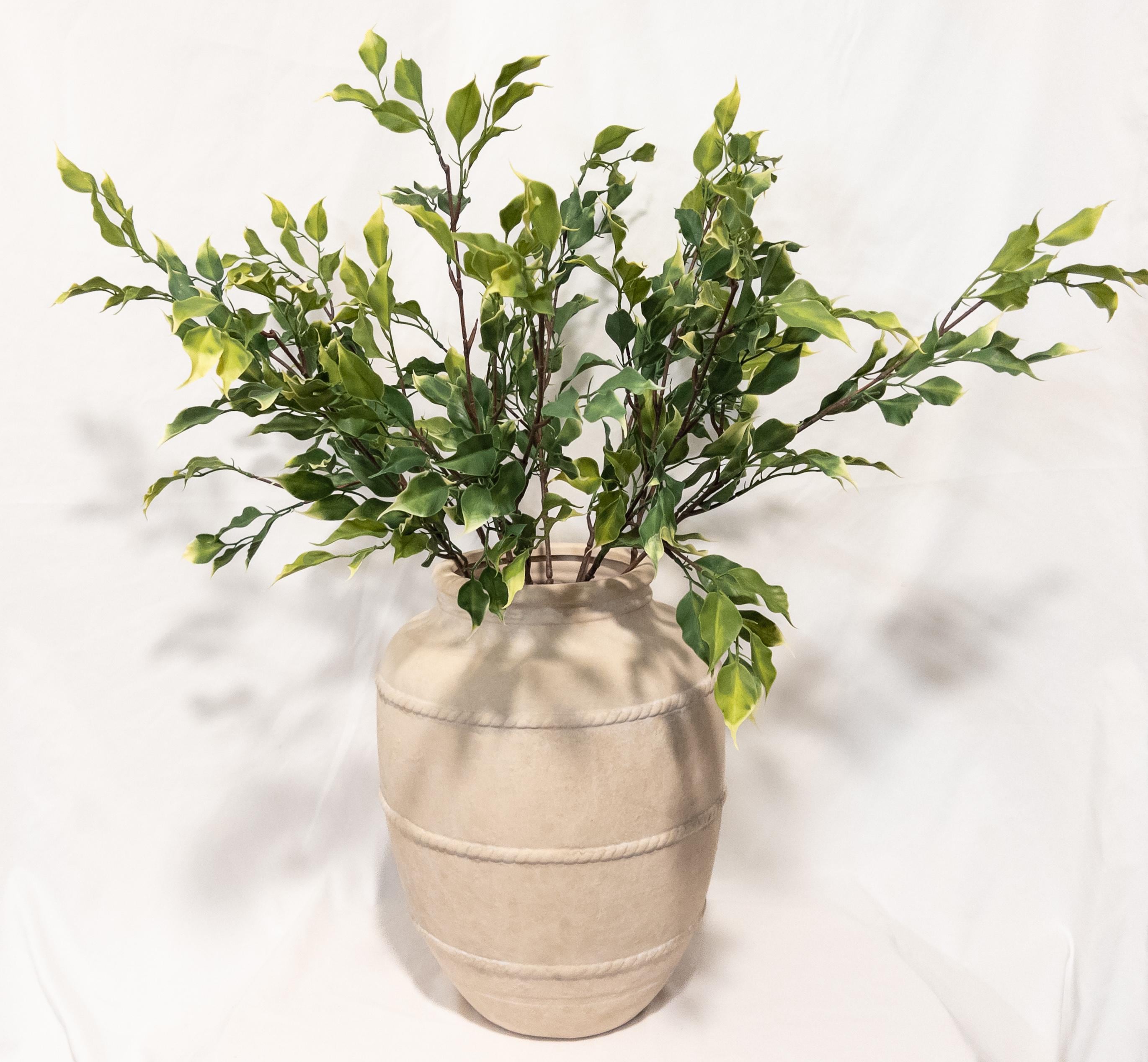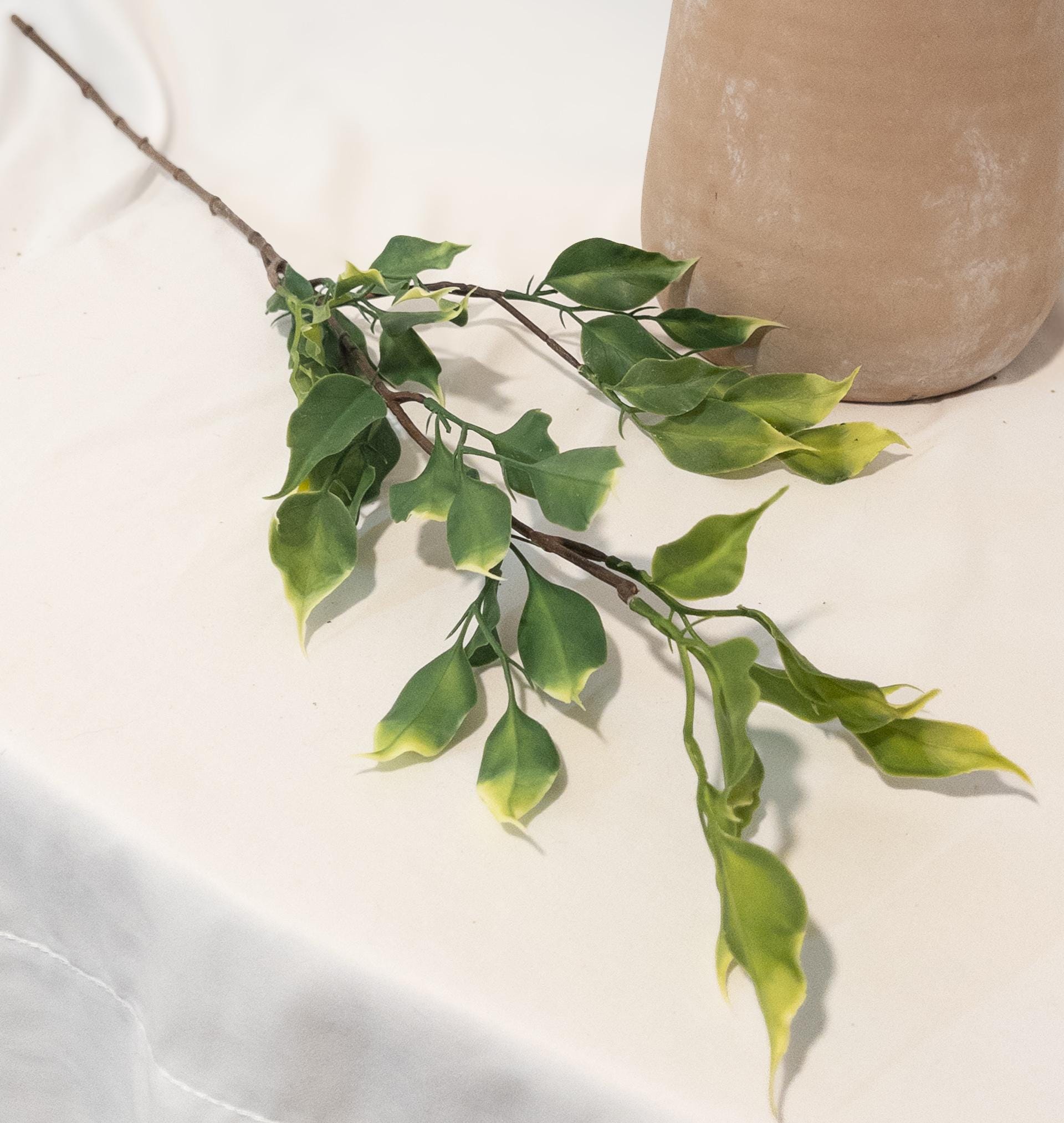 Bring a fresh, sun-washed feel to your space with this variegated ficus stem, featuring soft olive green leaves kissed with chartreuse tips for a natural, airy look.
