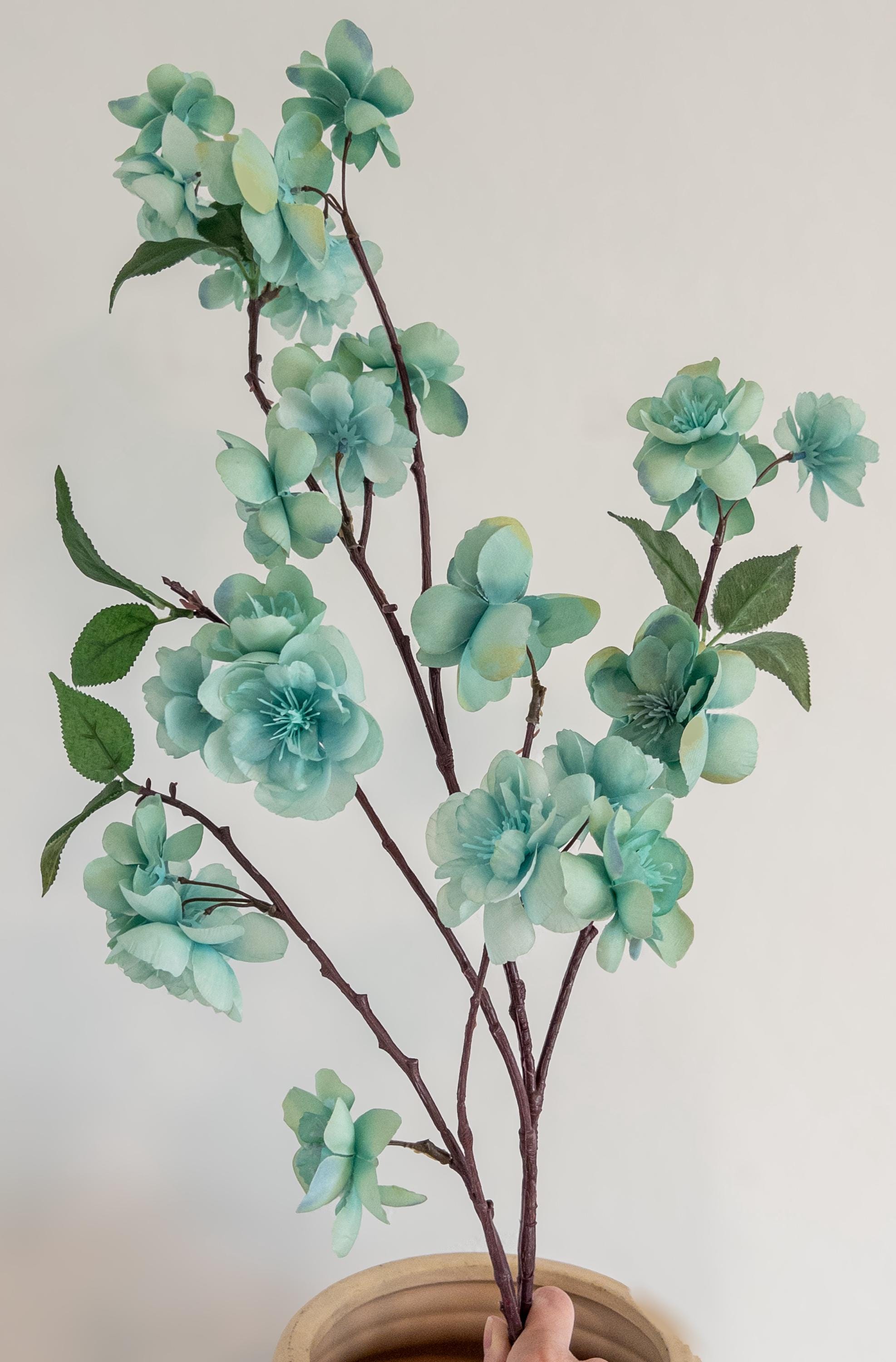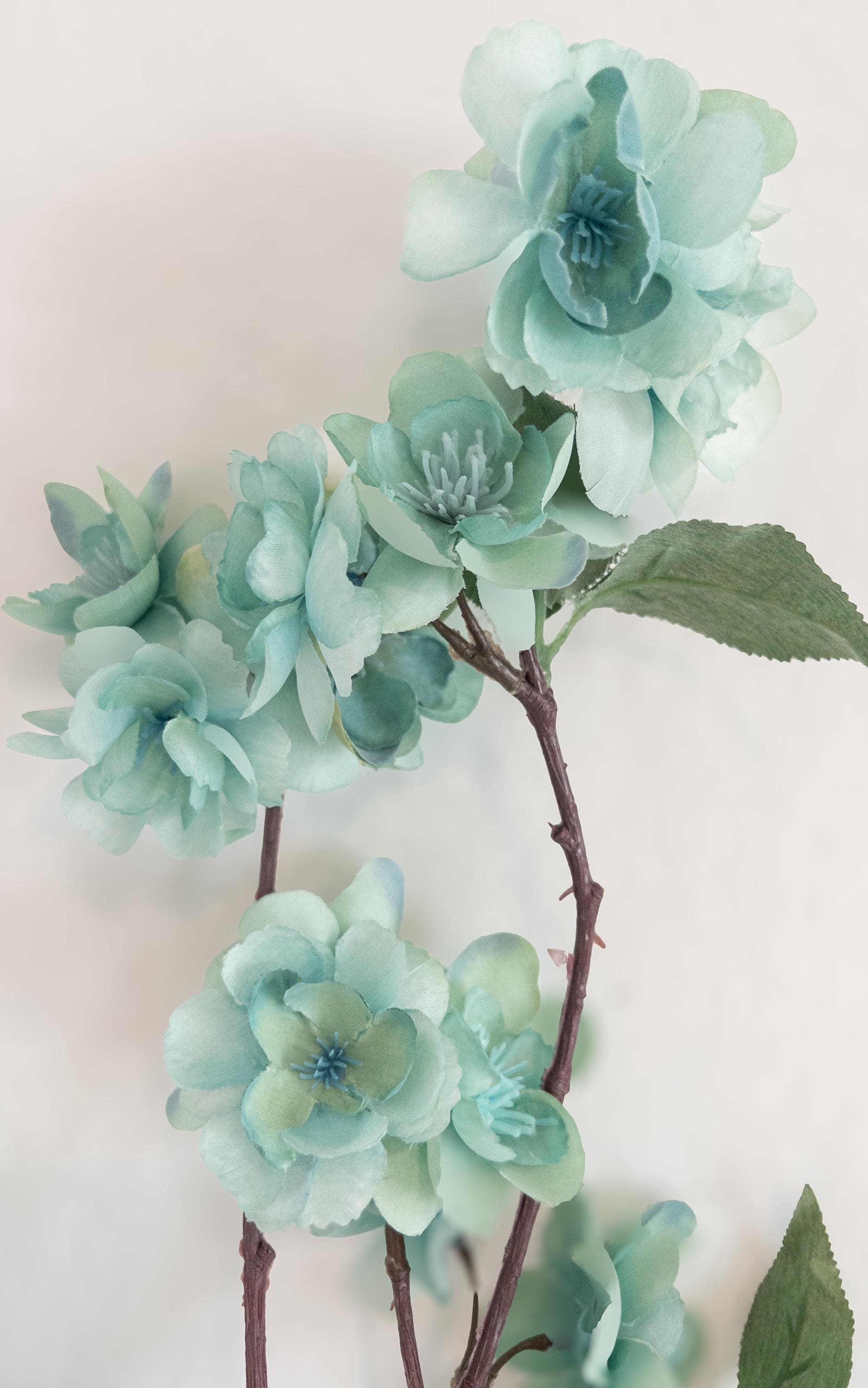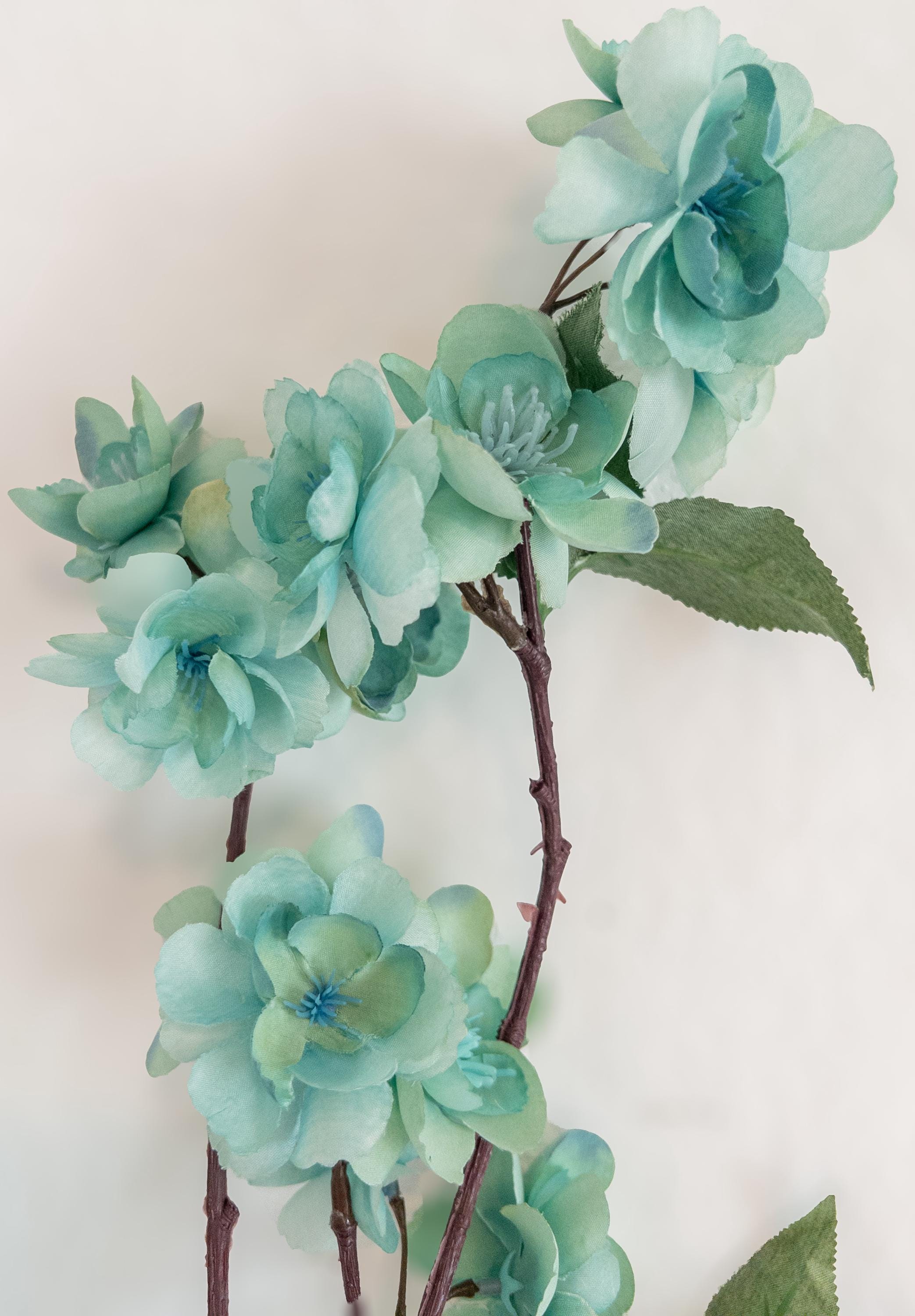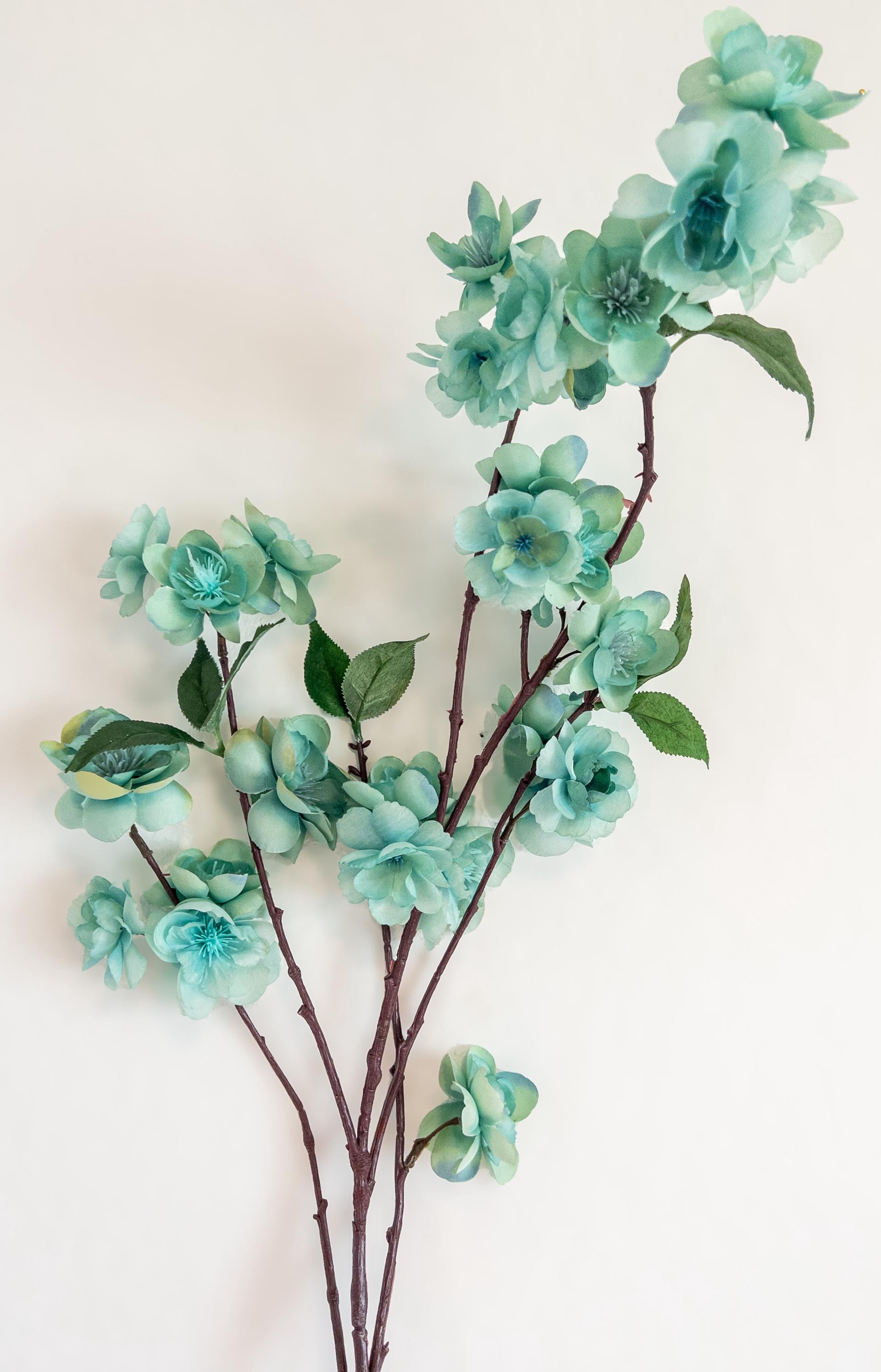 Bring a breath of soft color into your space with this pale turquoise blossom branch stem, featuring delicate aqua-toned blooms with subtle seafoam undertones.
