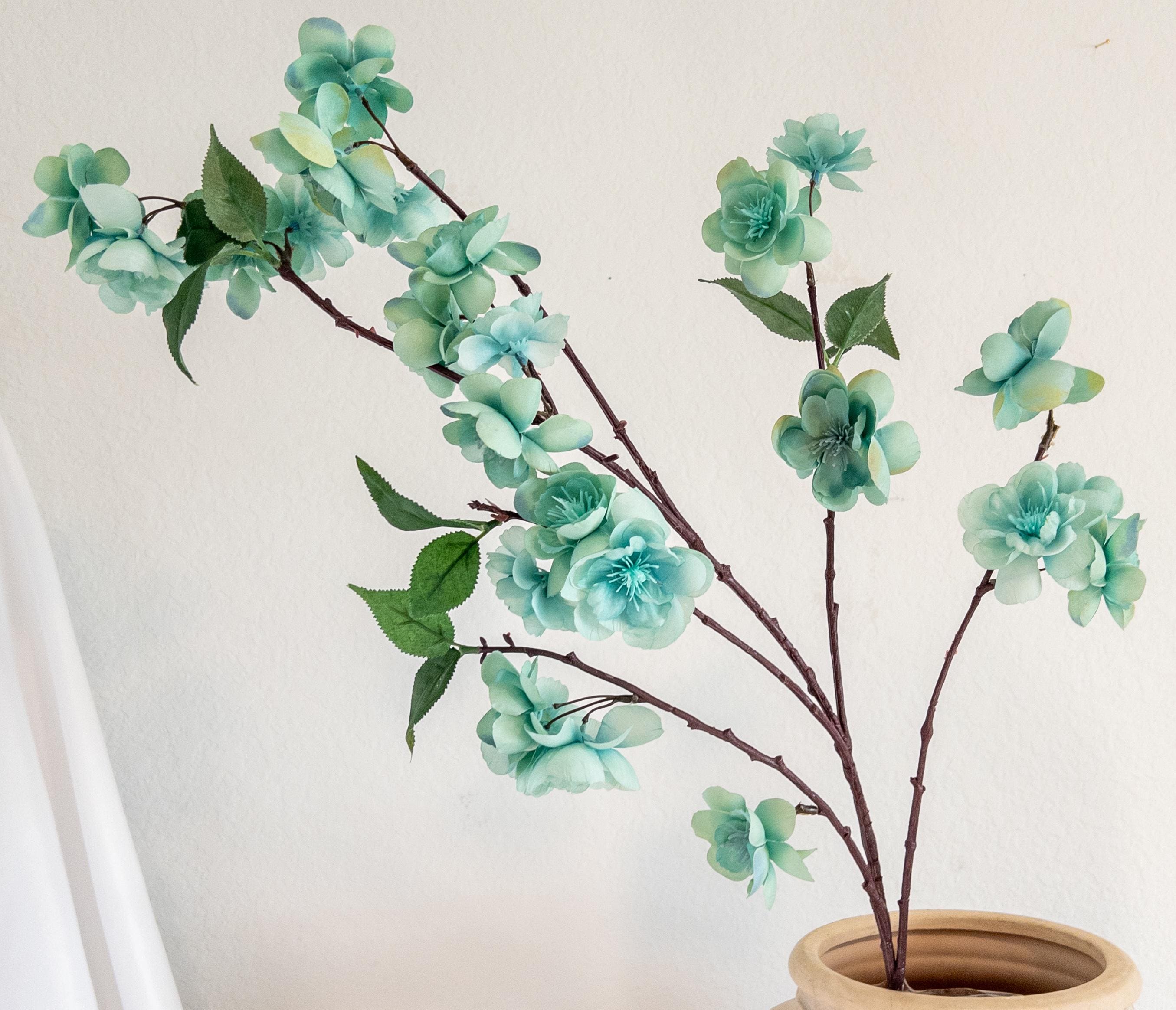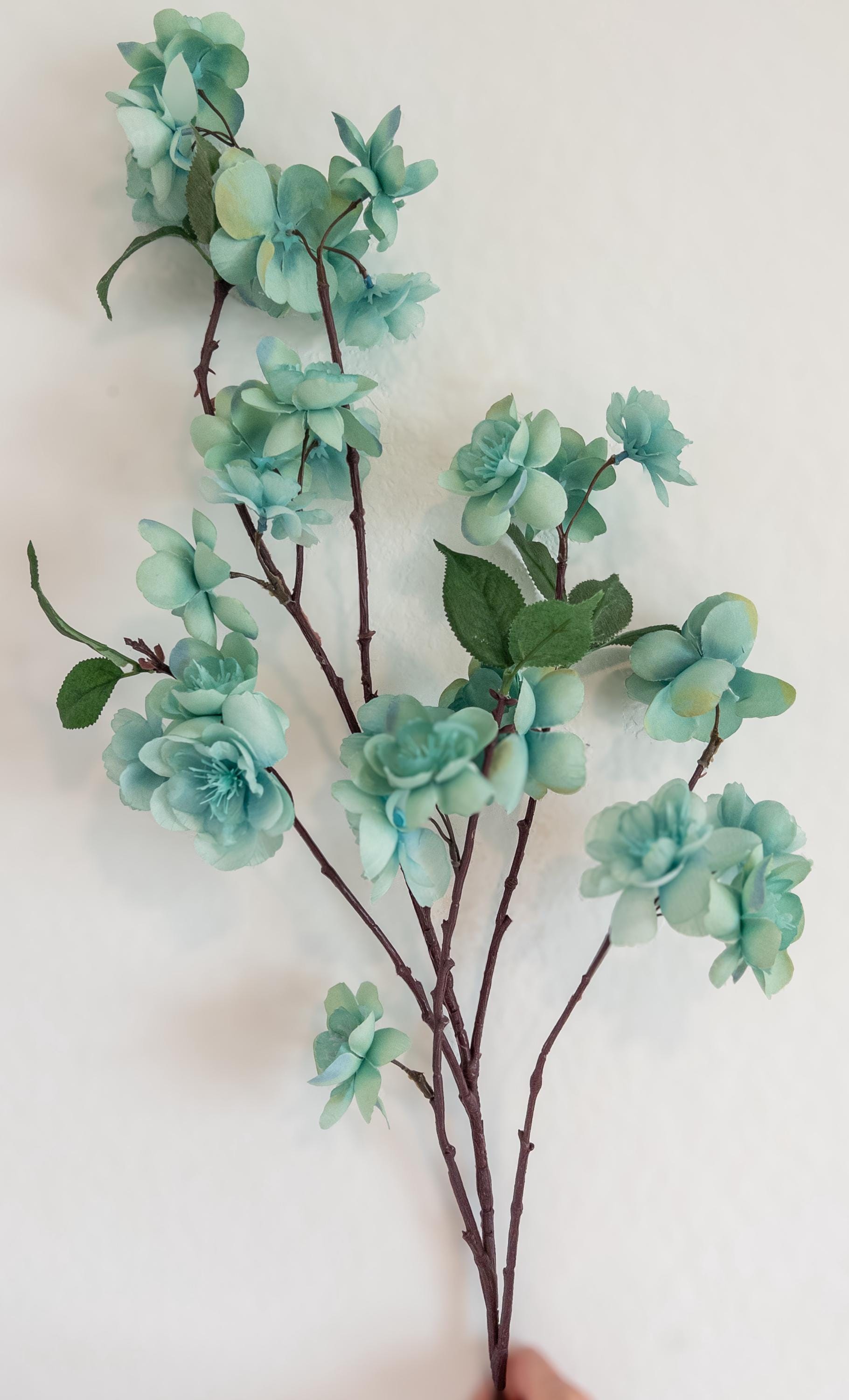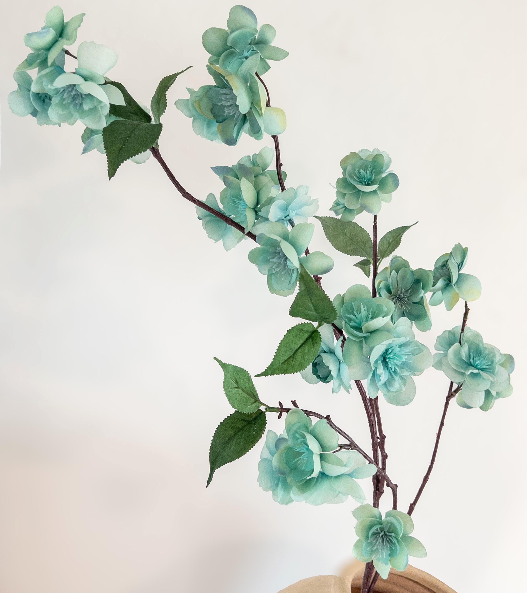 Bring a breath of soft color into your space with this pale turquoise blossom branch stem, featuring delicate aqua-toned blooms with subtle seafoam undertones.