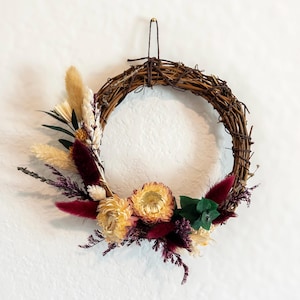 Each wreath is thoughtfully arranged for a natural, slightly wild look—no two are exactly alike, adding to its charm.