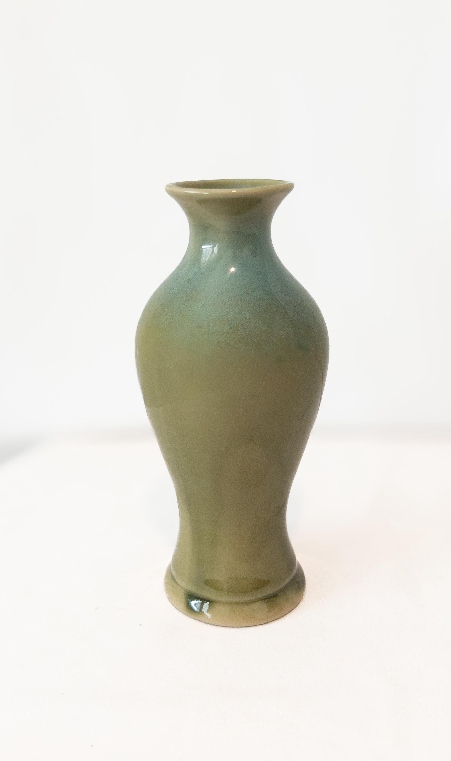 7. Sculptural Sage + Olive Vase – 6” H x 3” W x 1” opening