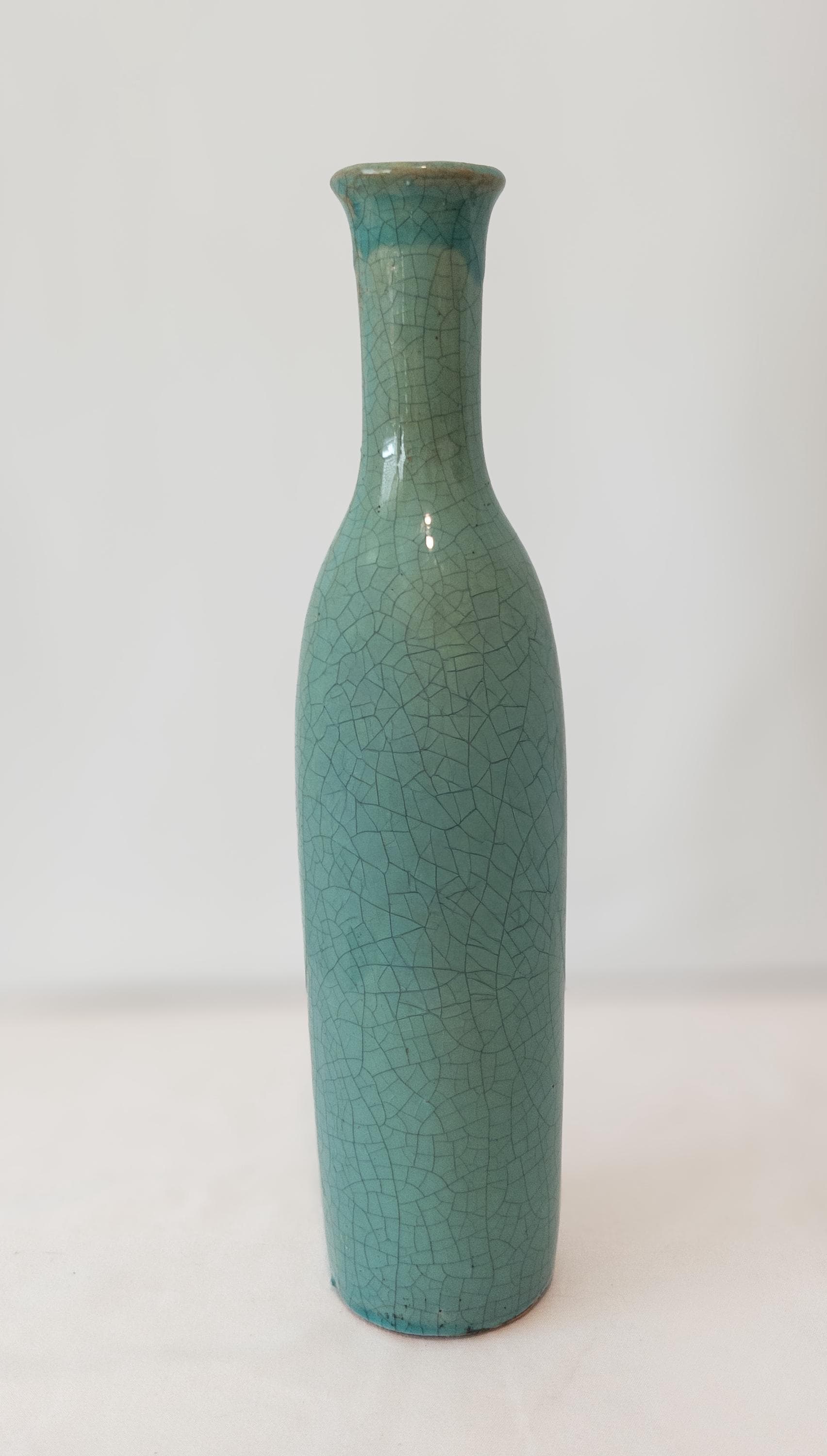 3. Tall Crackled Turquoise Vase – 10.5” H x 2.5” W x 1.5” opening