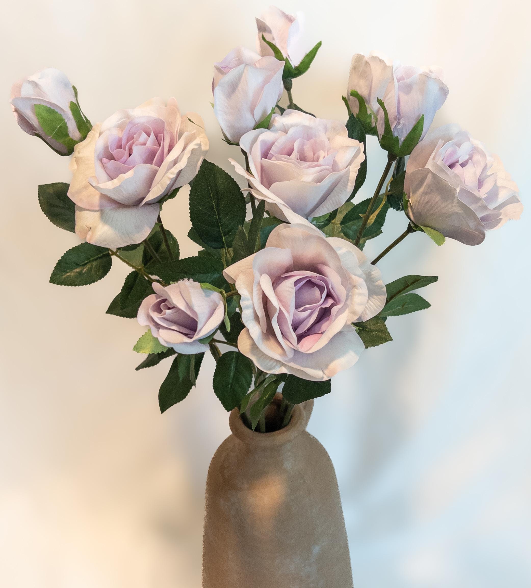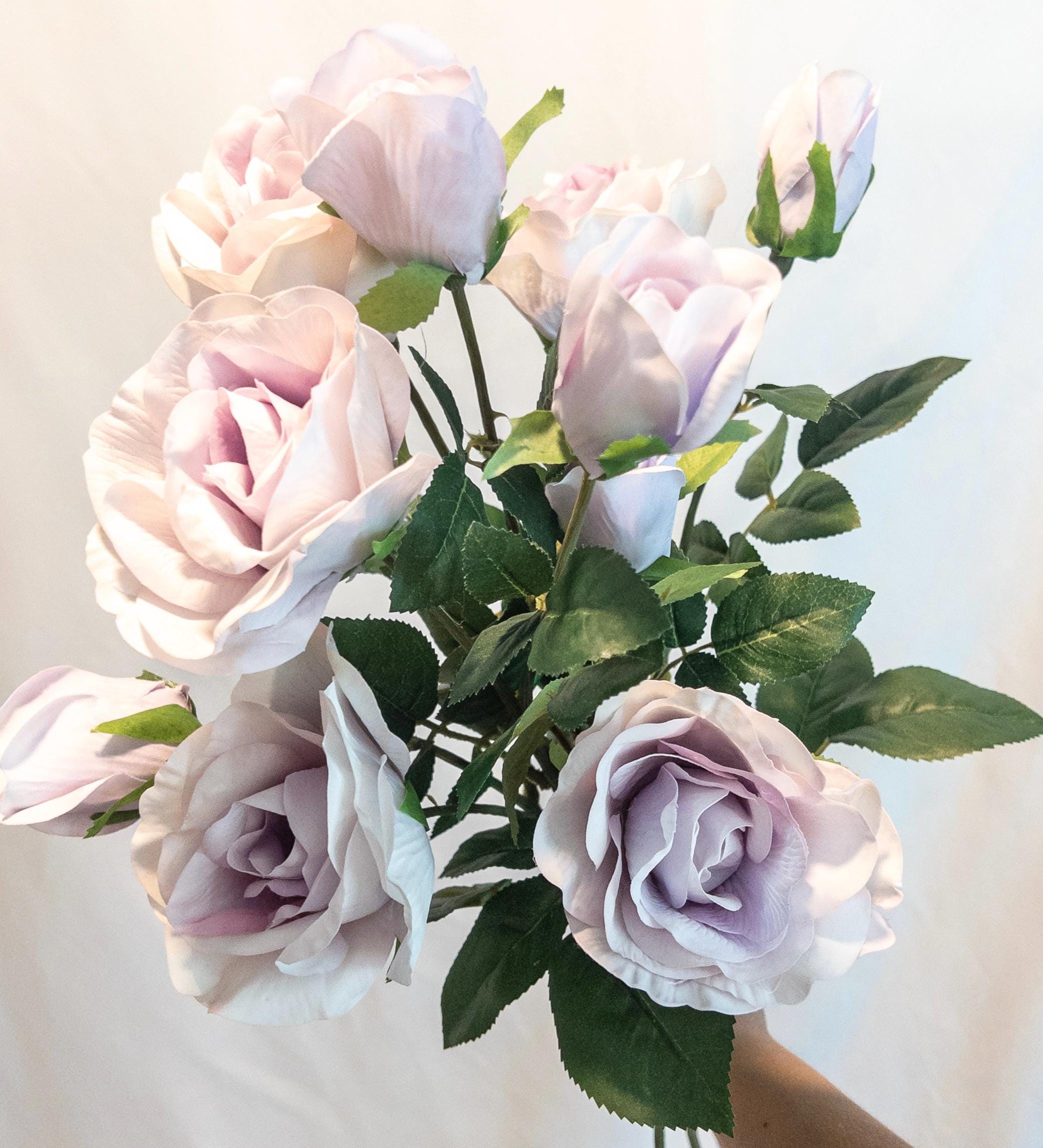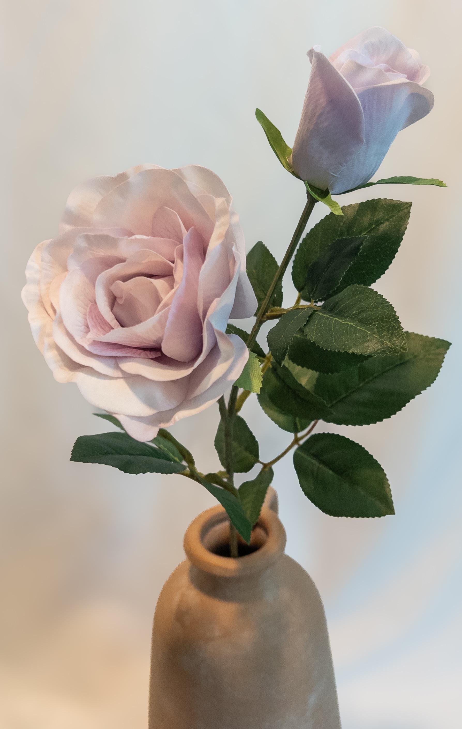 This real touch rose stem features a dreamy lavender blush tone with gently layered petals for a natural, garden-style look.
