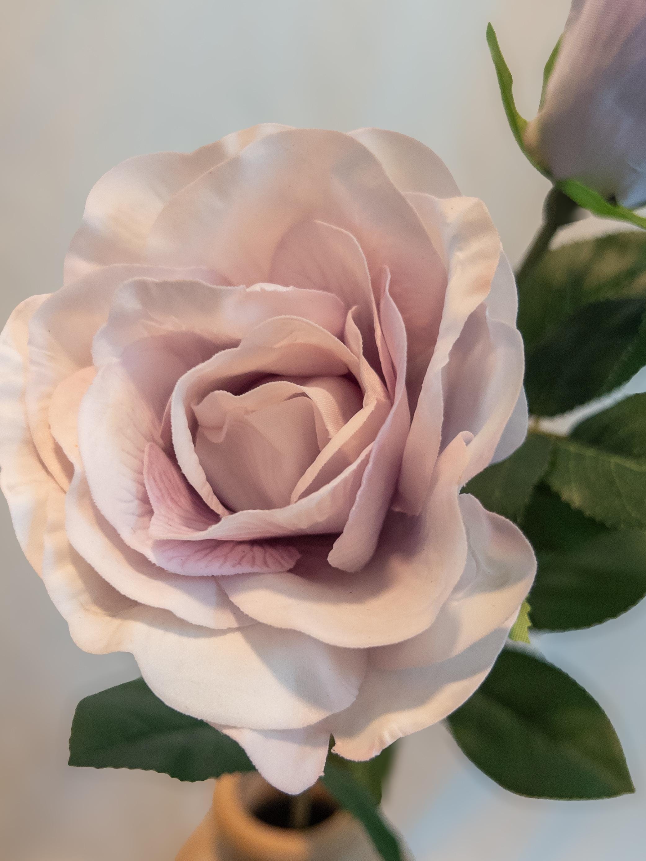 Real Touch Lavender Blush Rose Stem: Dusty Mauve Faux Rose - 26” Long, Soft Romantic Floral