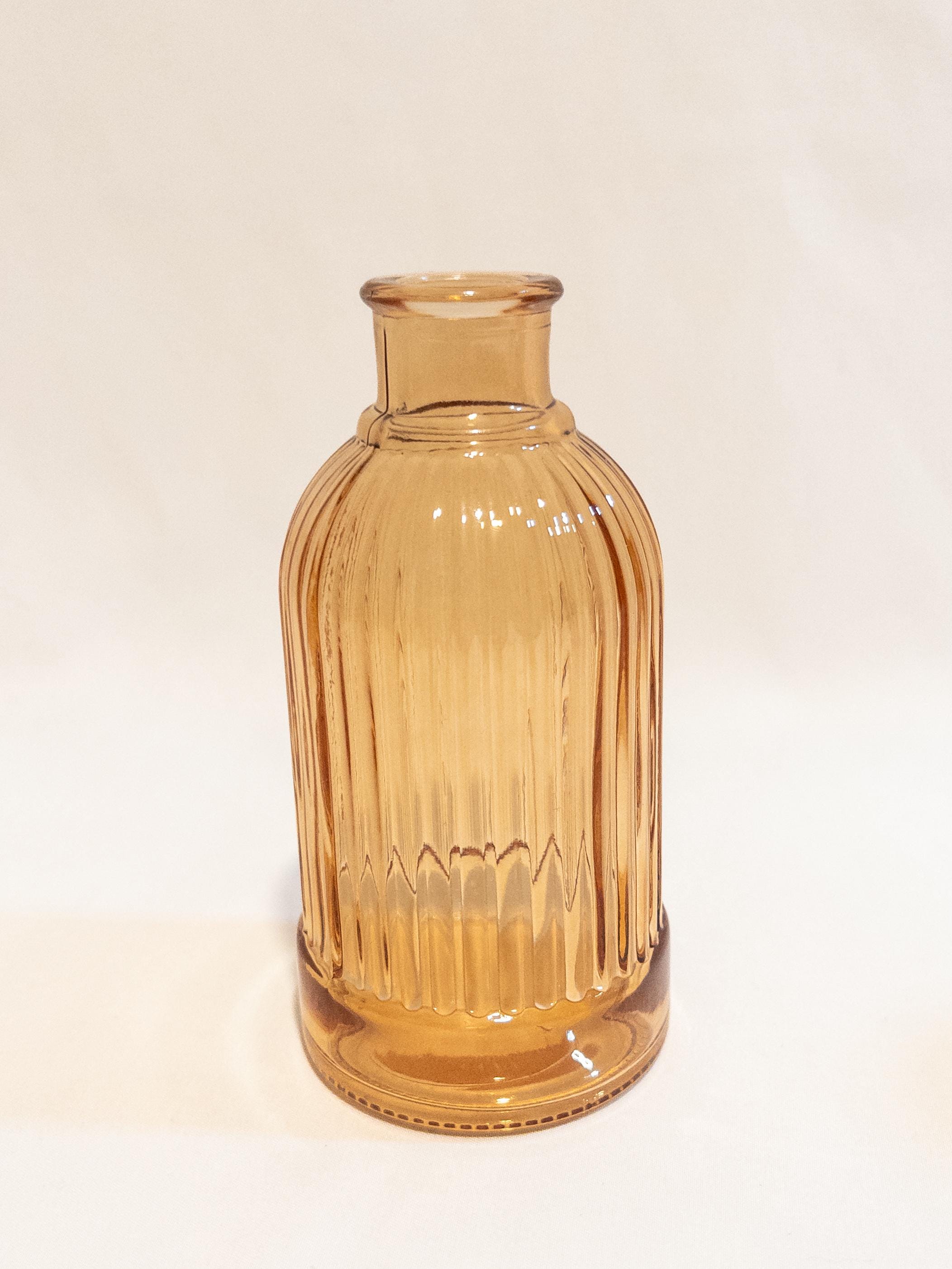 A softly curated collection of vintage-inspired amber glass bud vases, each with its own quiet character. From ribbed silhouettes to pressed geometric textures, these warm honey tones catch the light beautifully. Designed to mix, match, and layer into an effortless, collected look.