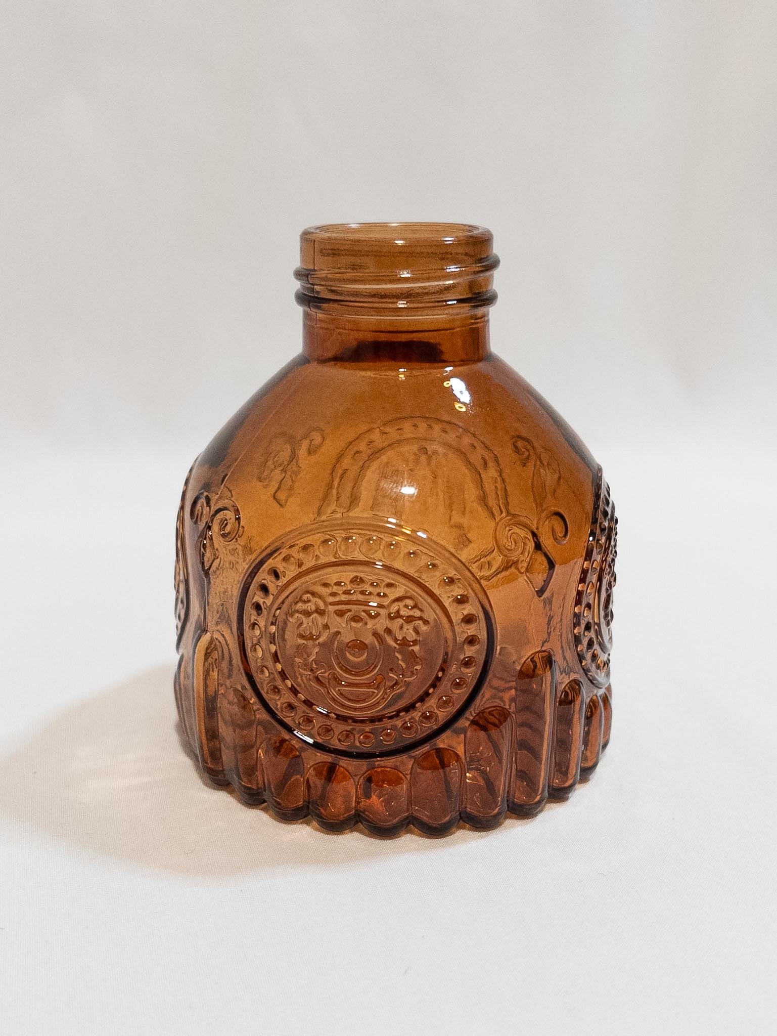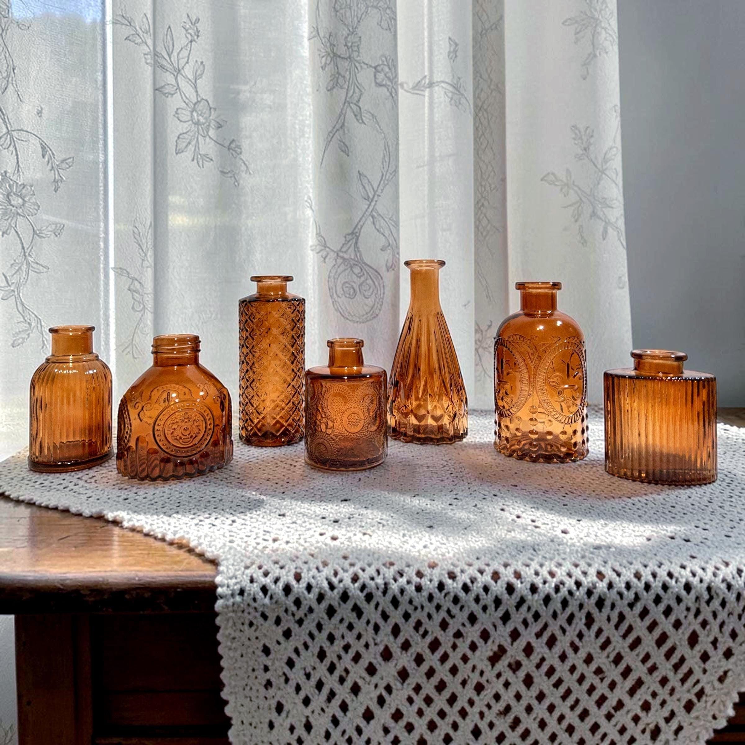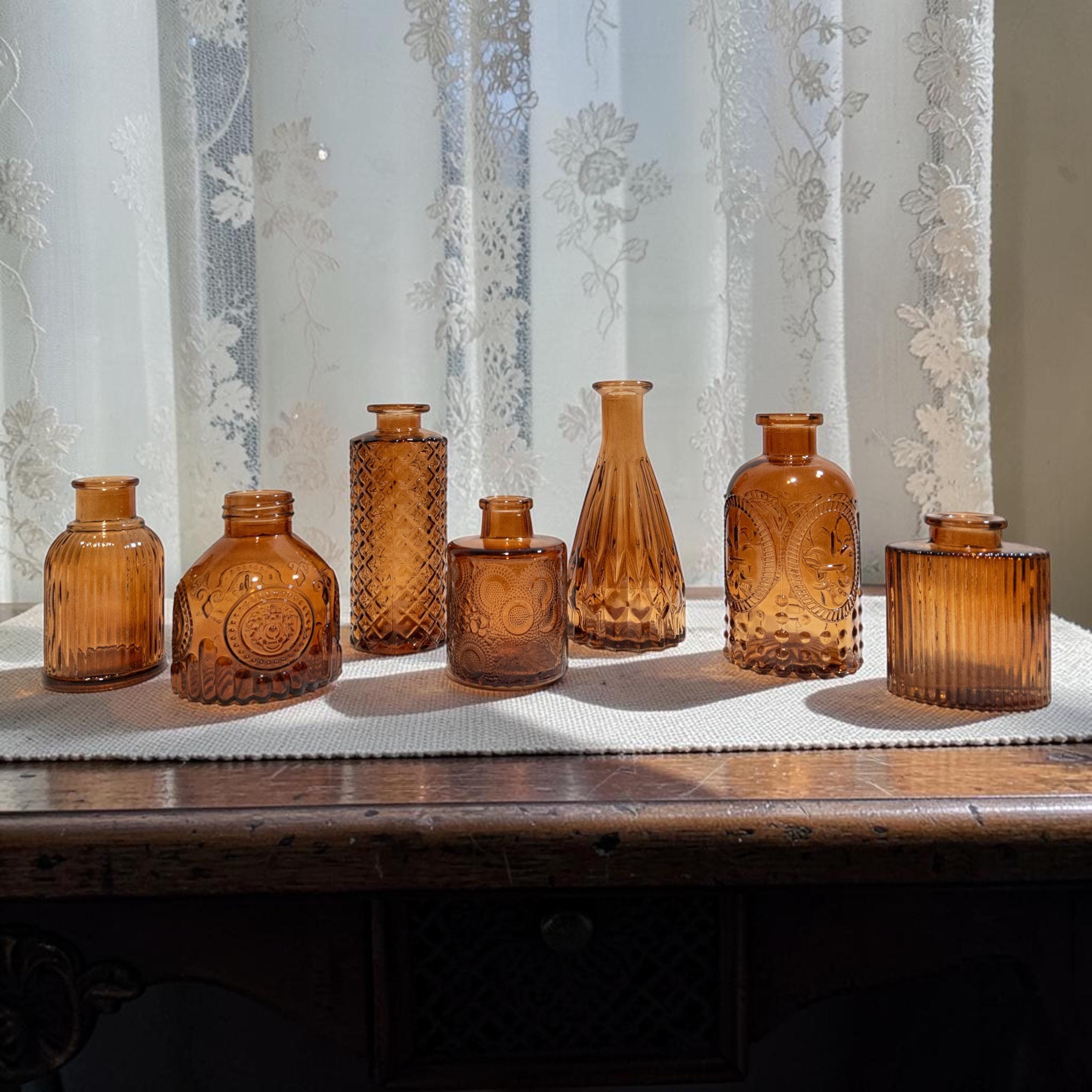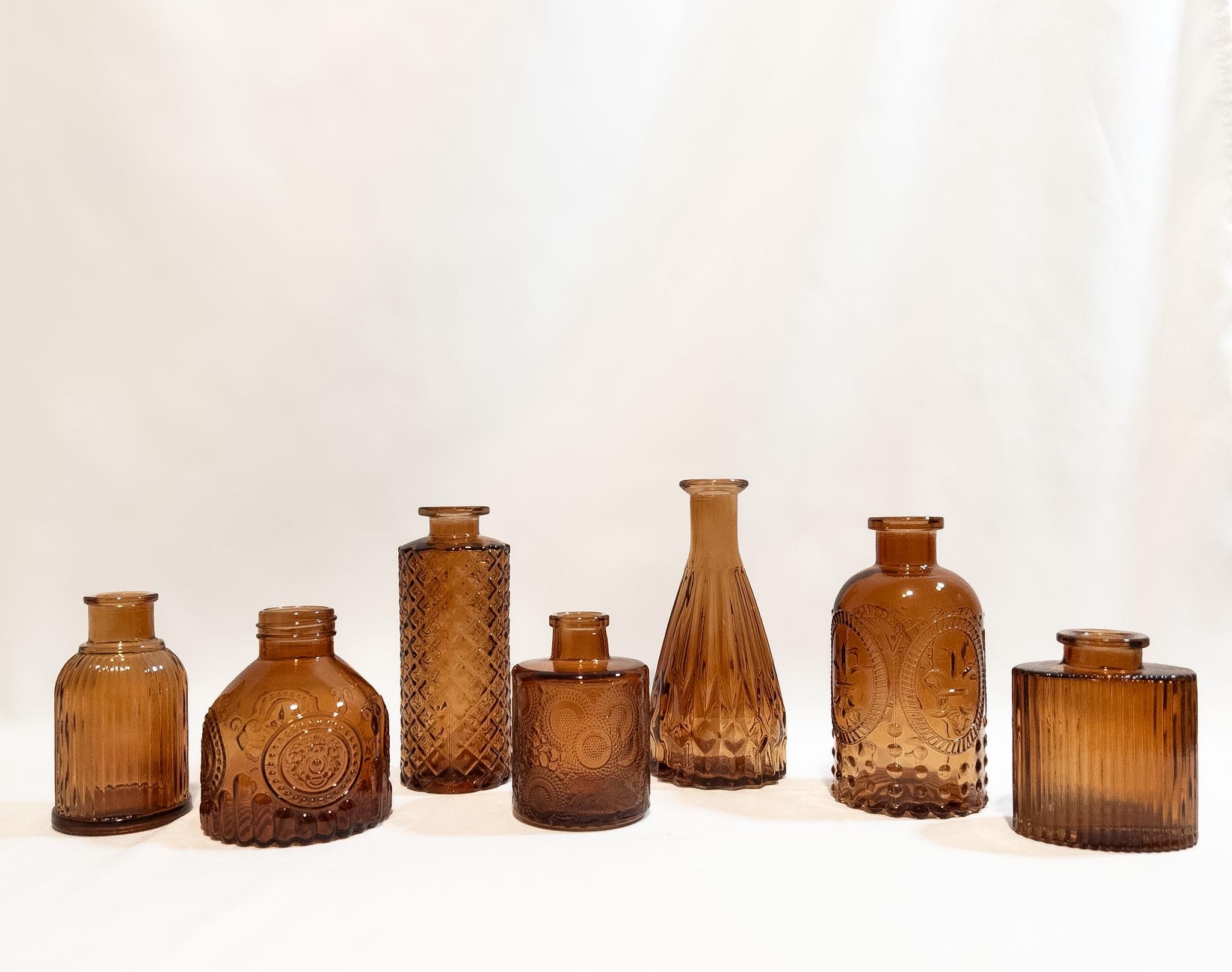 A warm, collected mix of vintage-inspired amber glass. Each vase with its own character, texture, and charm.