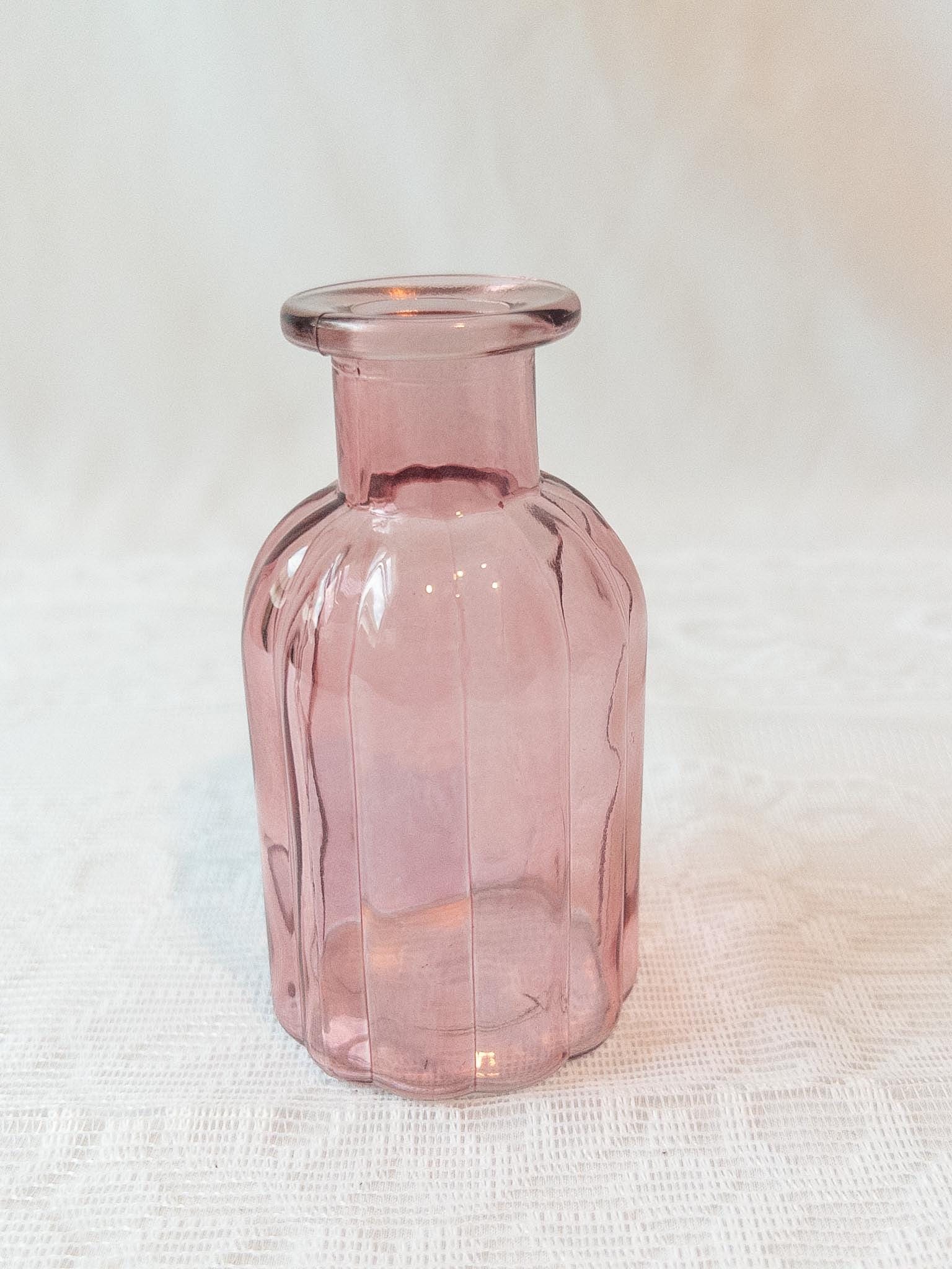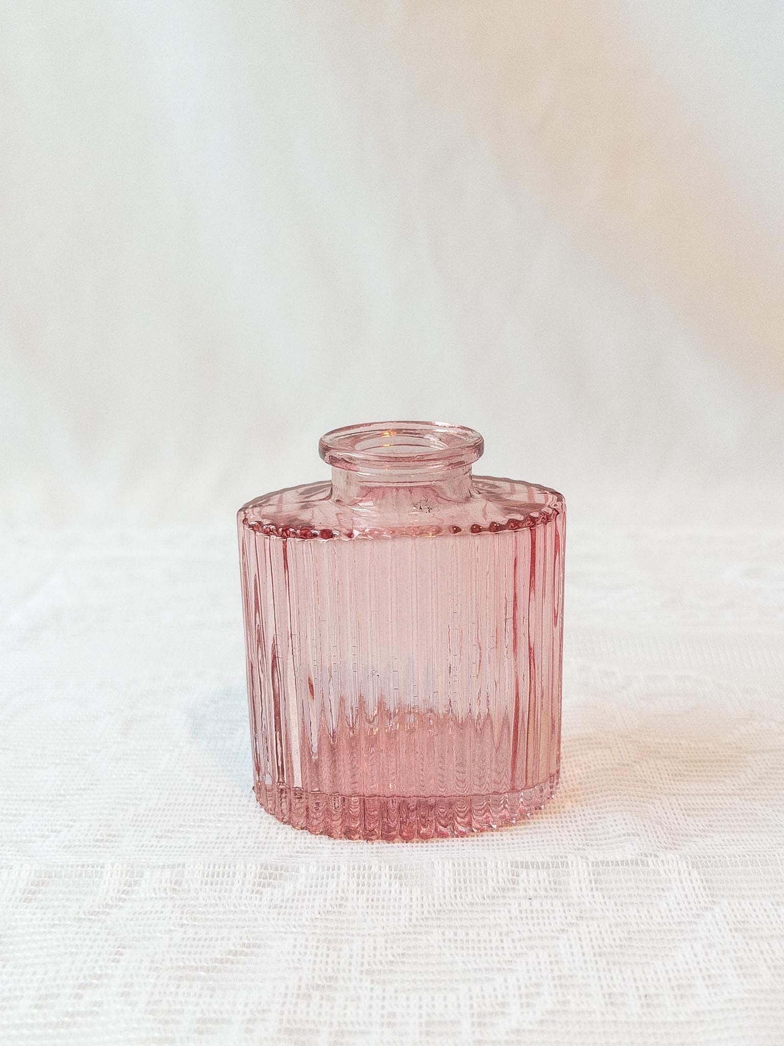 • Blush Ribbed — Tall elegant ribbed bottle in soft pale pink | 5"H x 2"W