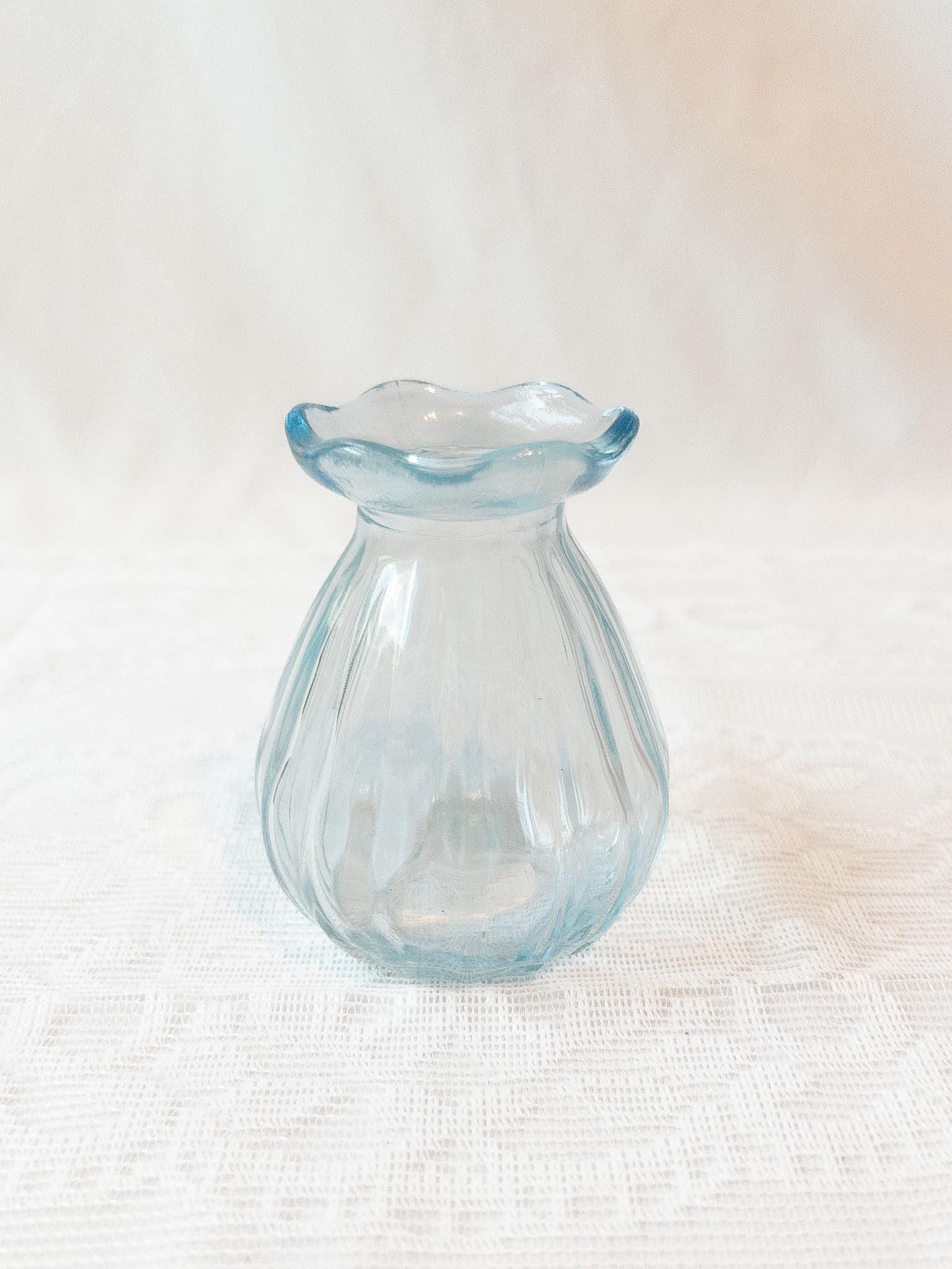 • Icy Blue — Petite round vase with a sweet scalloped ruffled rim | 3.25"H x 2.75"W